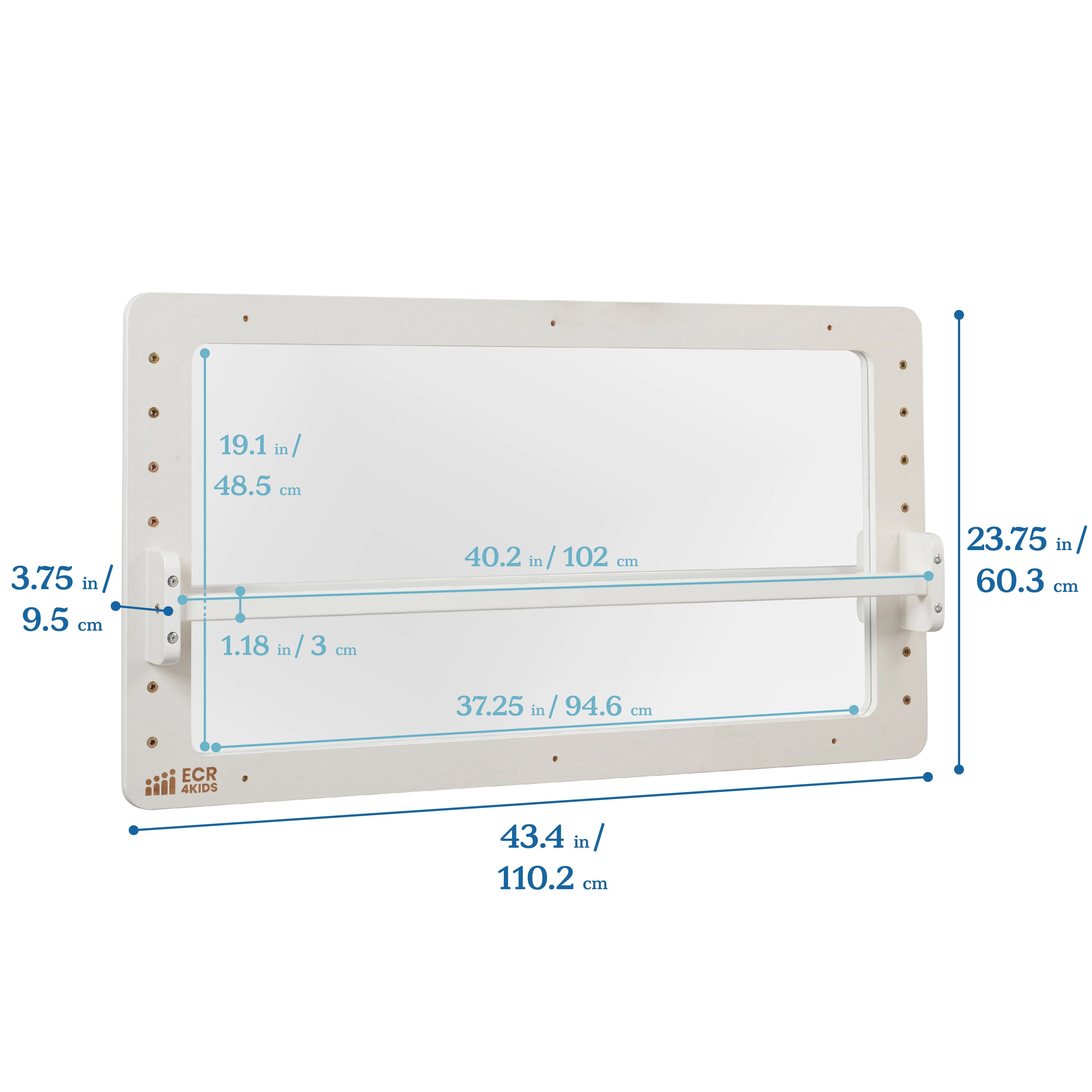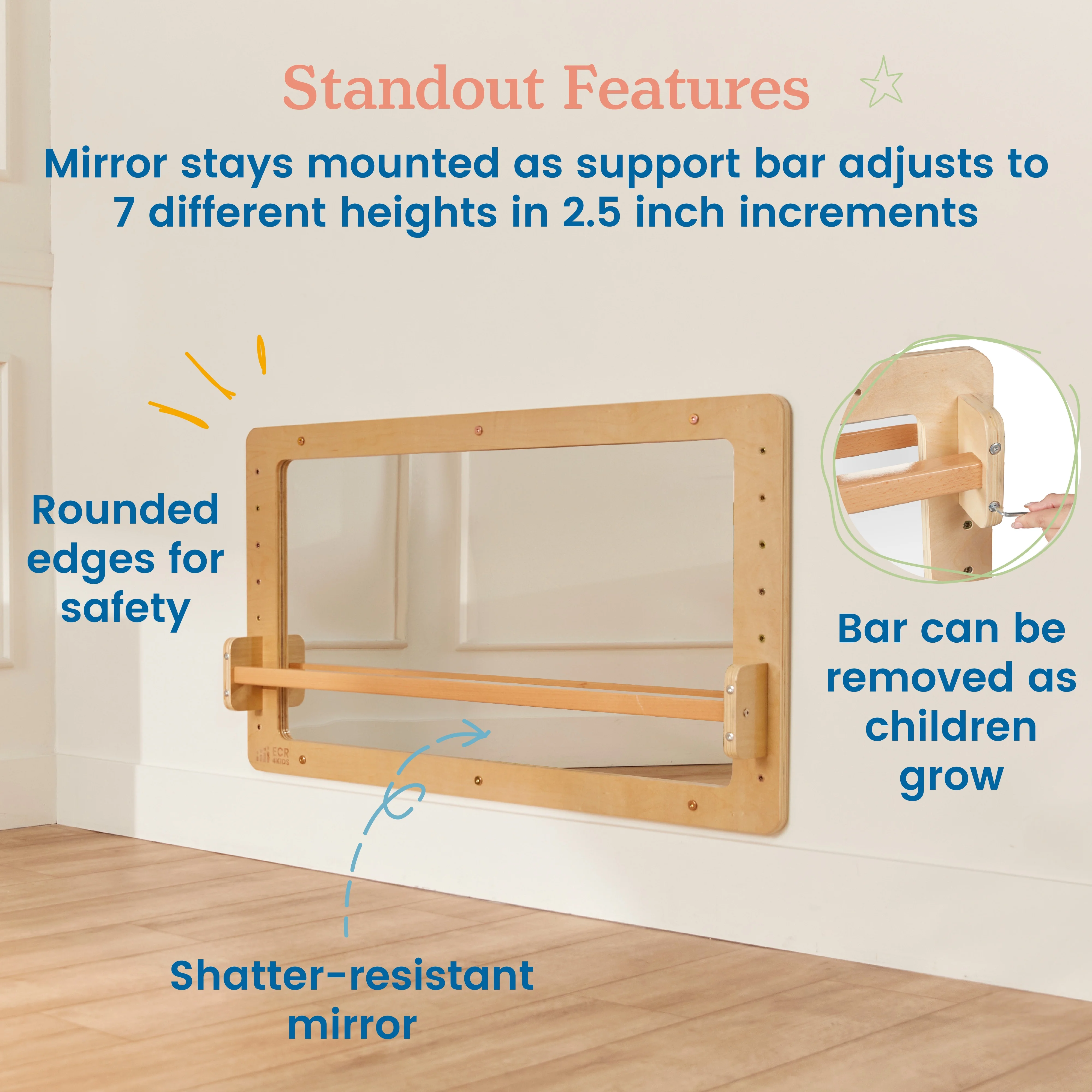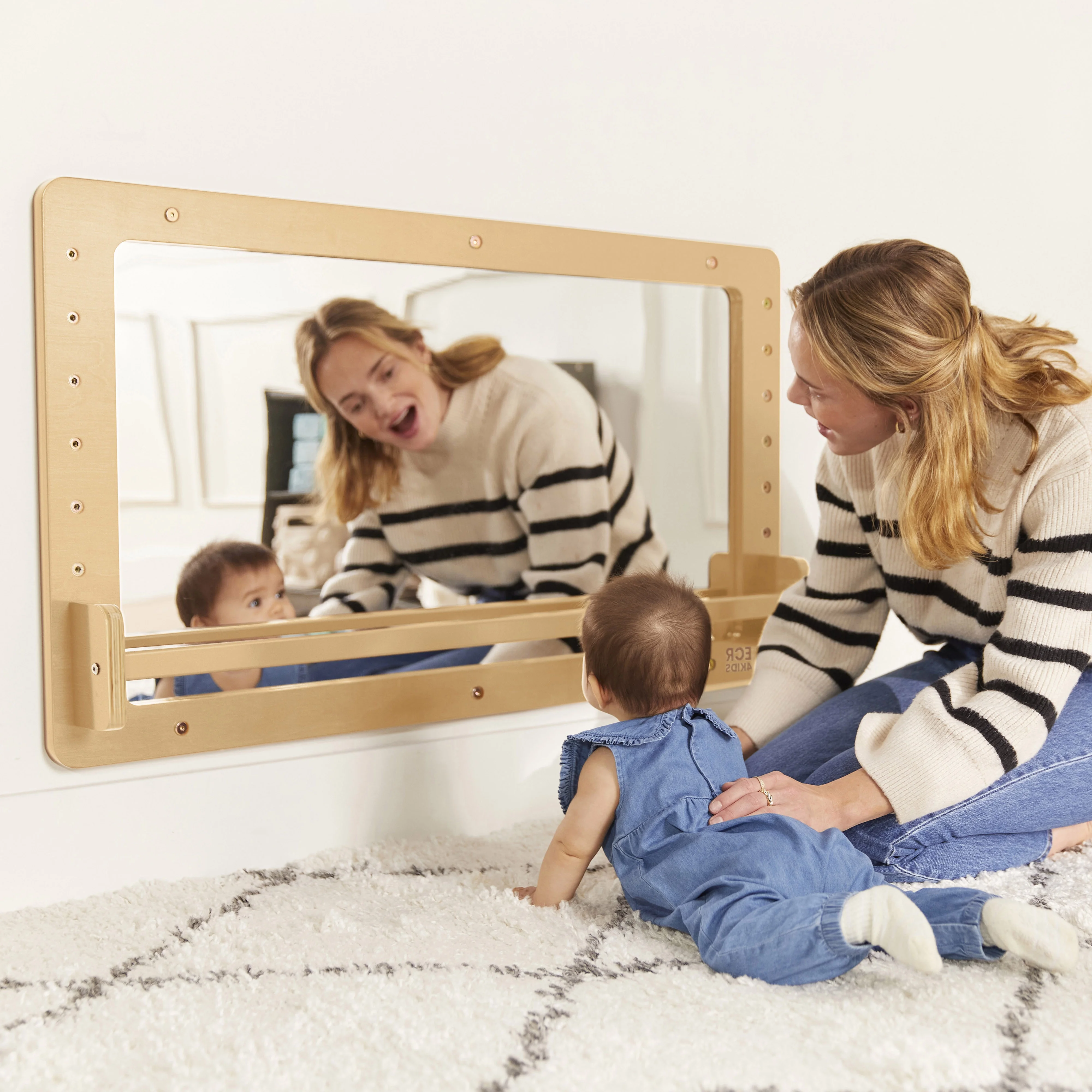 - provide a safe way for children to explore their physical abilities; rotate vertically for use during dress-up as a wall mirror