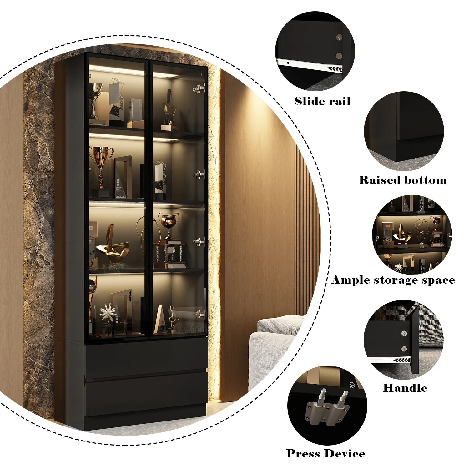 - 5-Tier Bookcases with LED Litinging