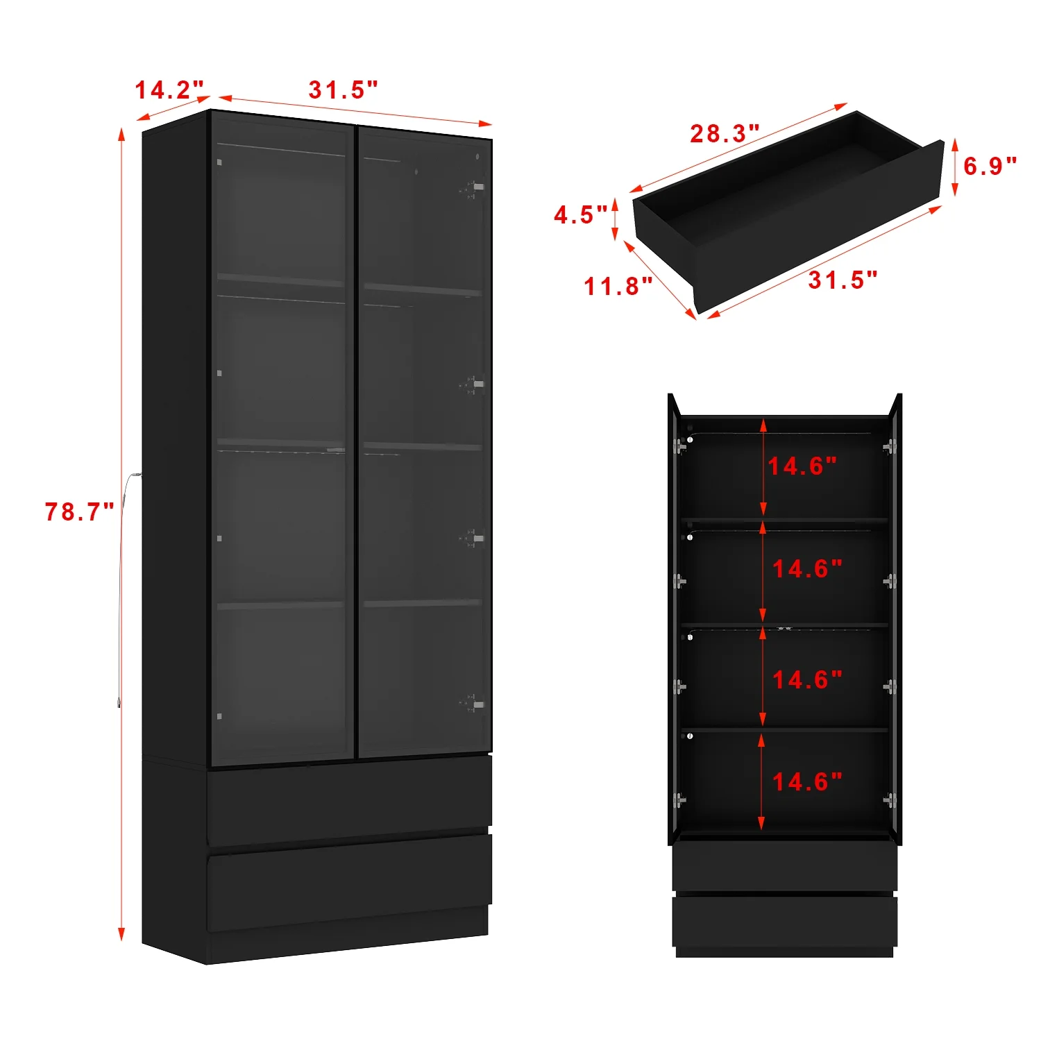 - Size: 31.5"L x 14.2"W x 78.7"H
