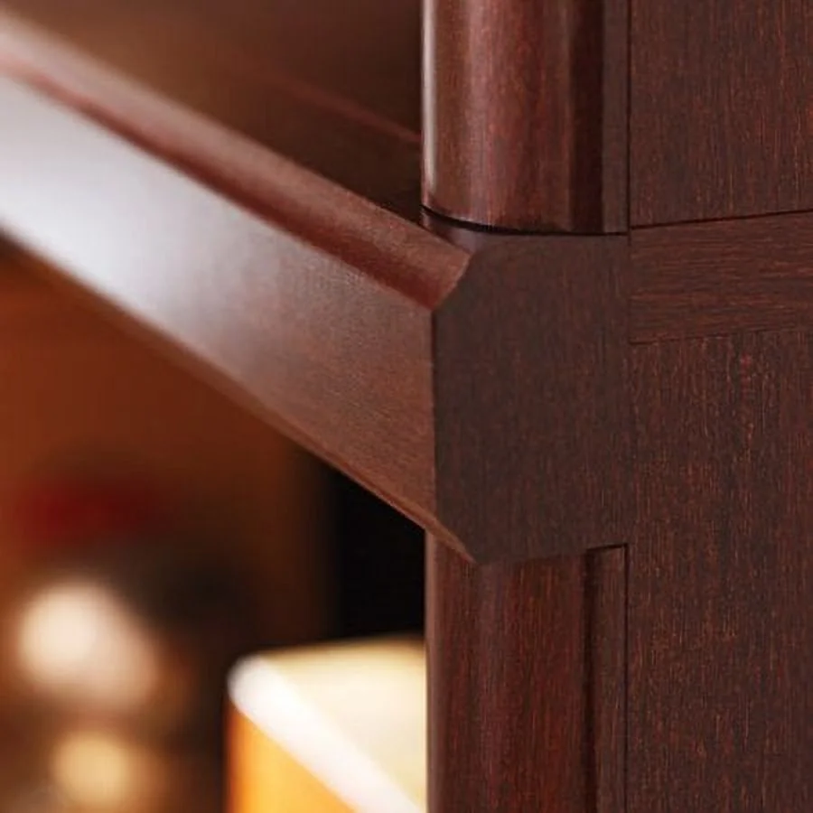 - Decorative moldings slide on for easy assembly