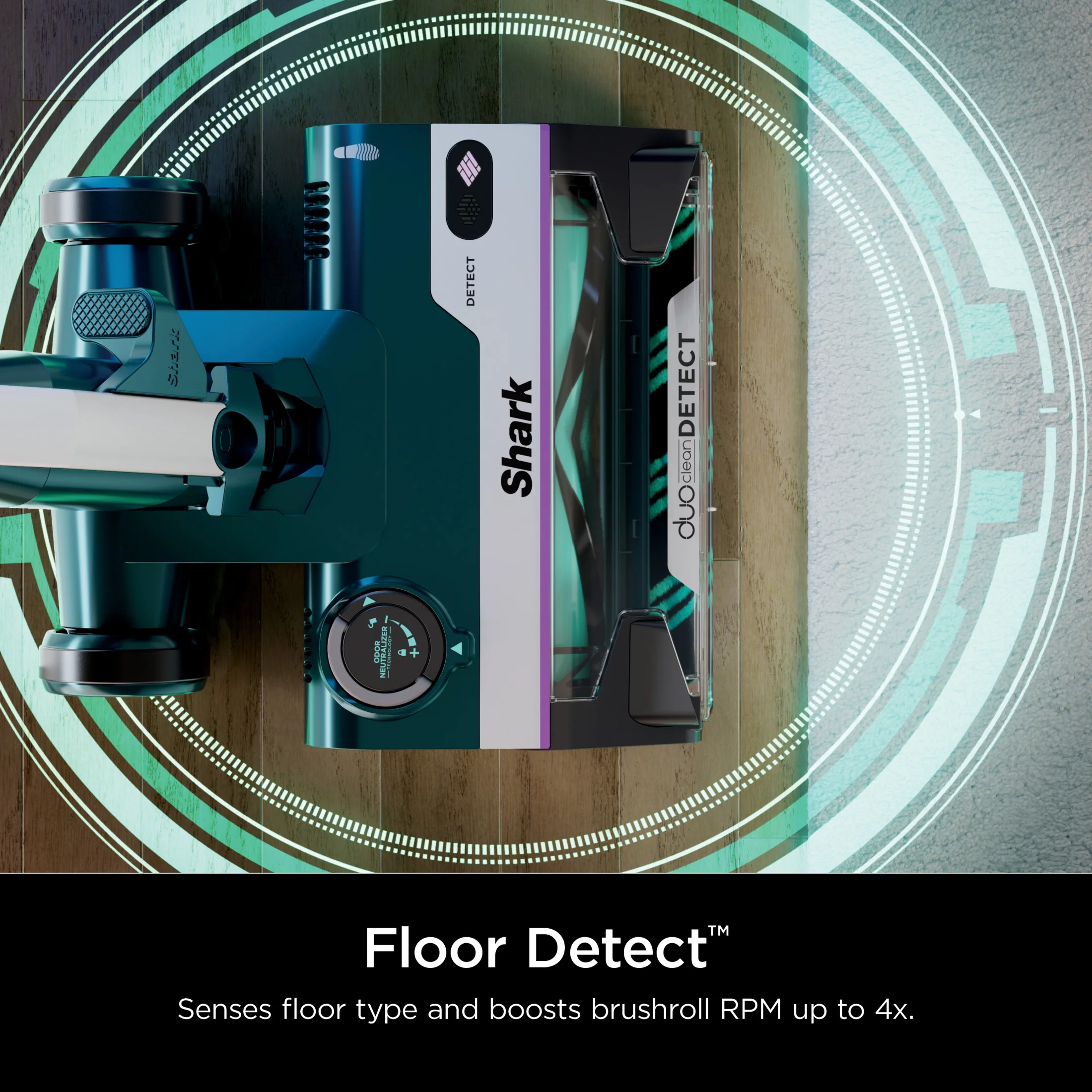 - FLOOR DETECT: The Intelli-Sense ultrasonic sensor detects the type of floor you're cleaning, and Shark POWERDETECT automatically adapts brushroll speed for optimal performance on all surfaces