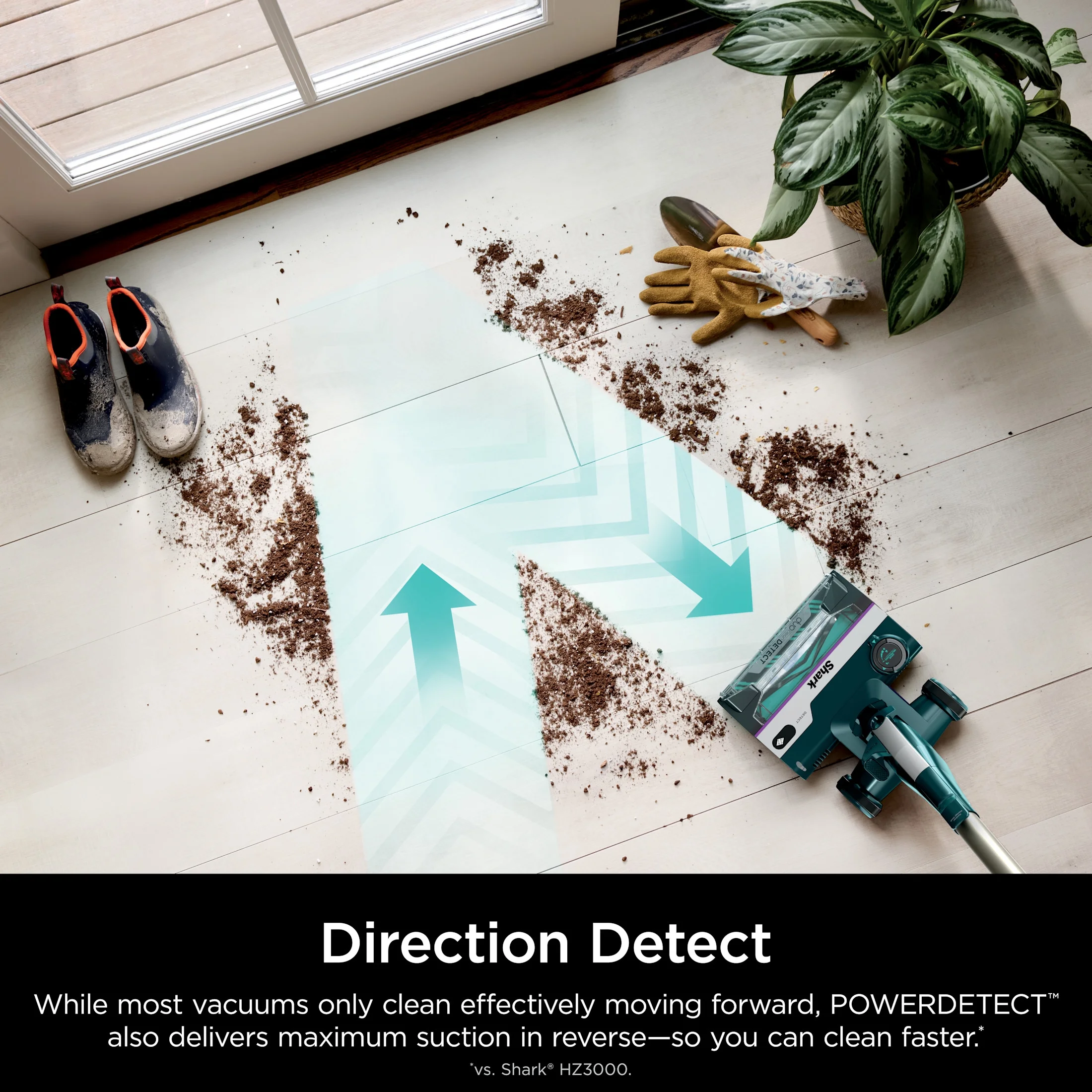 - DIRECTION DETECT: The Intelli-Sense directional sensor automatically recognizes the direction you are vacuuming and POWERDETECT directs its powerful suction forward or reverse for maximum cleaning in both directions