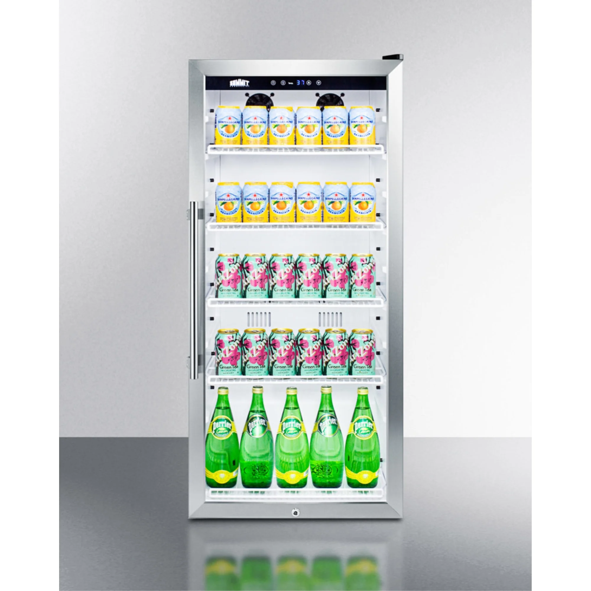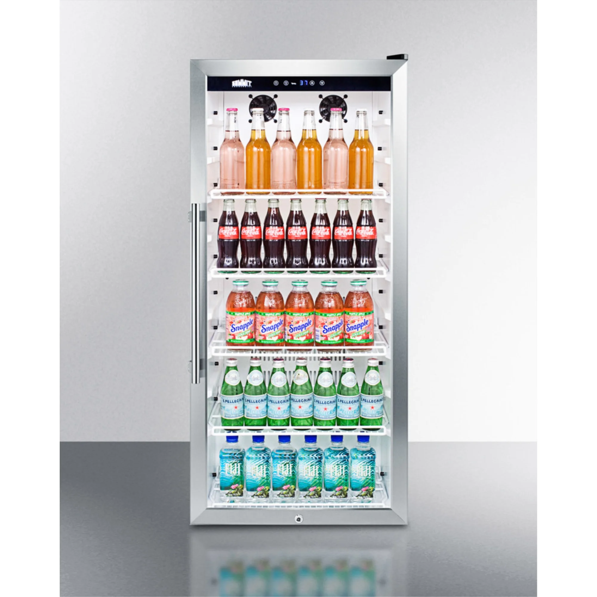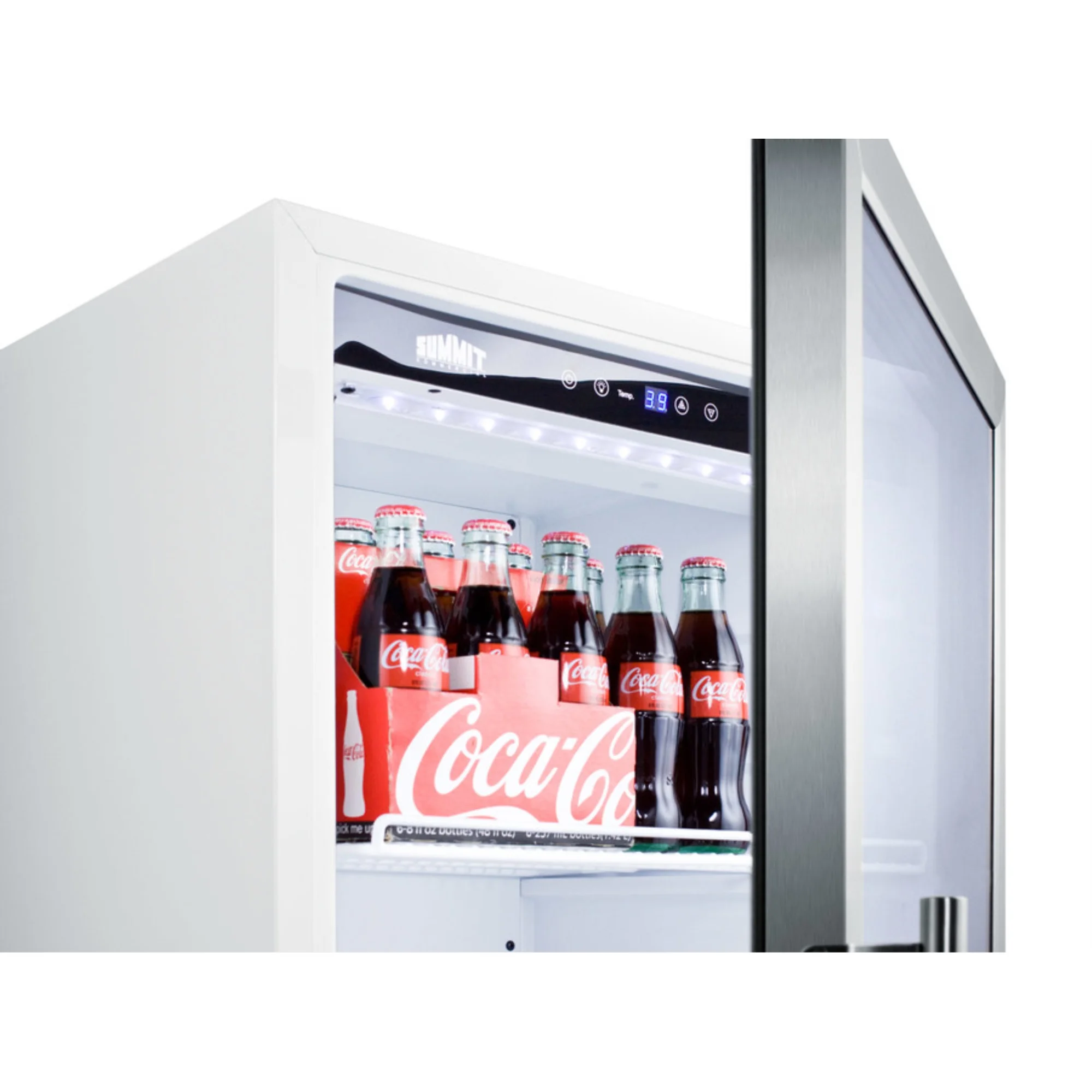• Stainless steel trimmed glass door