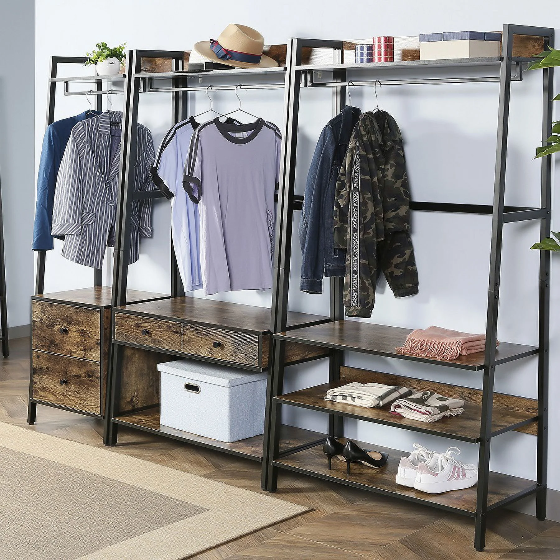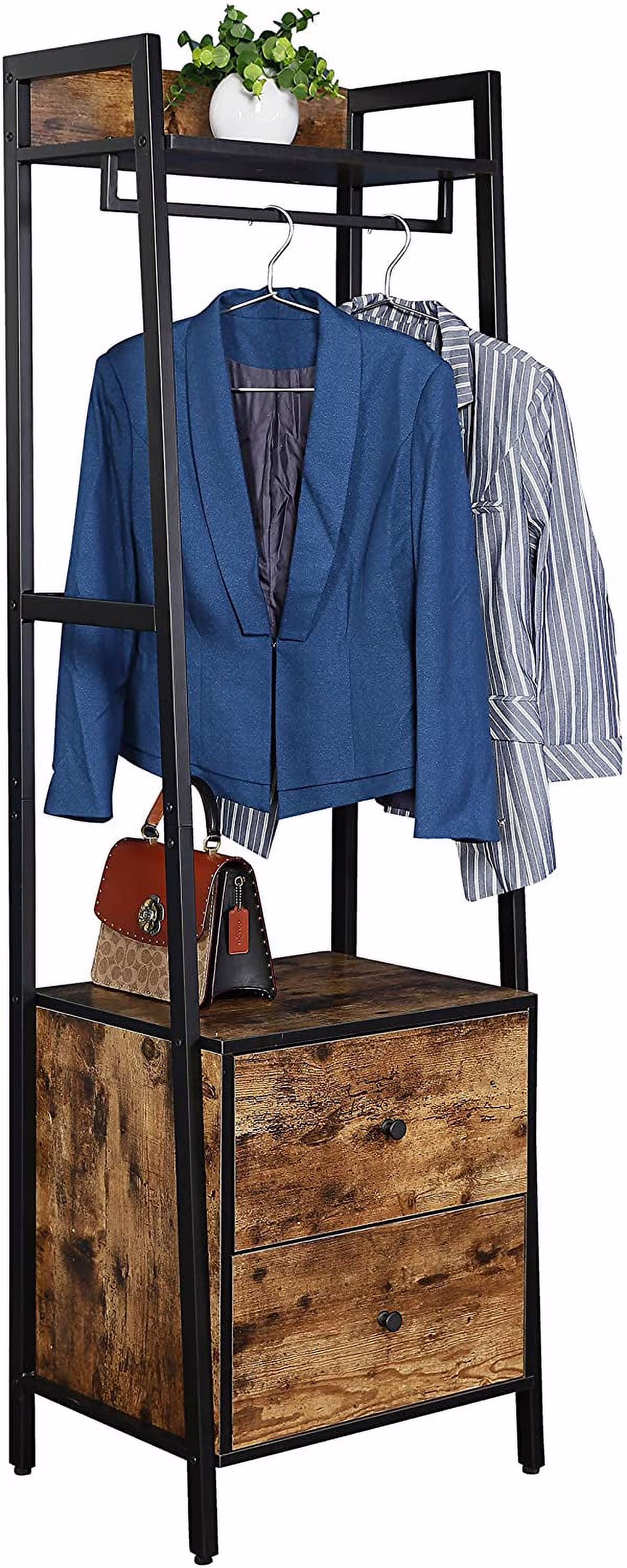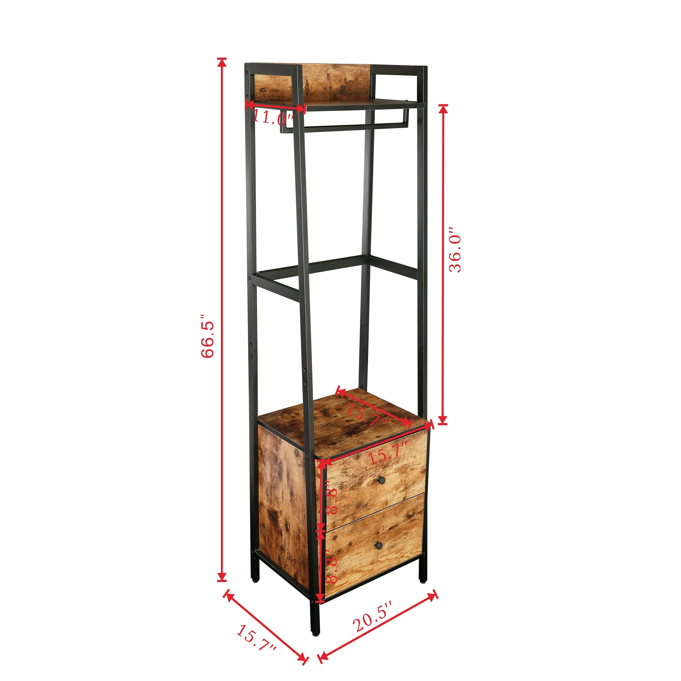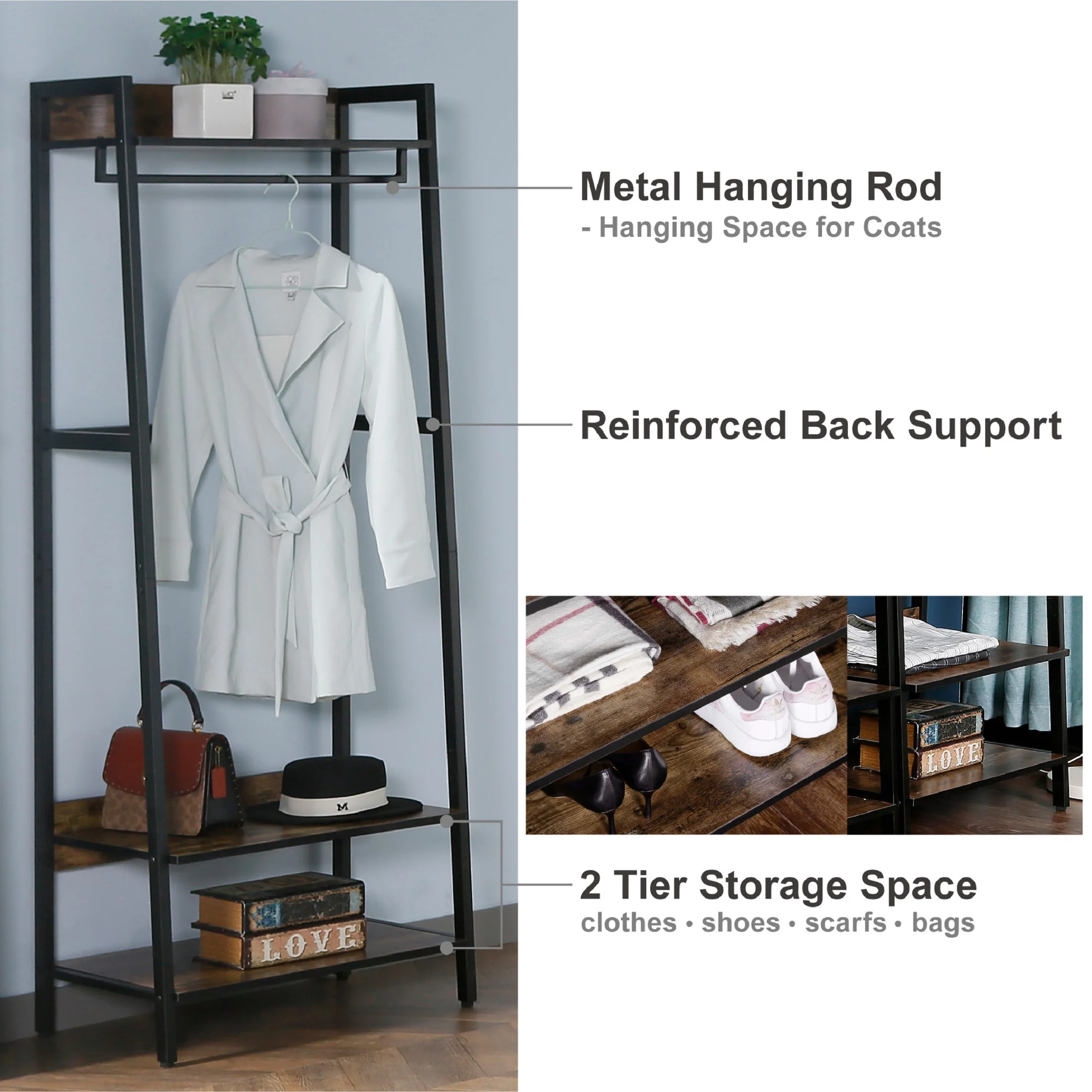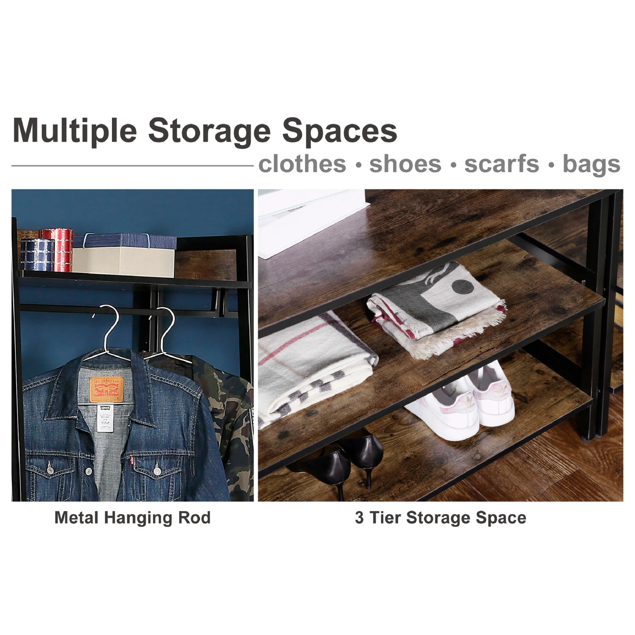 ��Vintage Style��The streamlined design and natural color scheme blends harmoniously into any home decor. With the tasteful style for the retro sensation, this shelf offers a straightforward yet sophisticated feeling. ��Simple Design��Stripped of unnecessary embellishments, this hall tree focuses on pure functionality with its clutter-free organization.The simple yet thoughtful construction combines hanging space with storage solutions to keep your entryway tidy and welcoming. ��Solid and Durable��Constructed from engineered wood and reinforced with an extra-thick steel frame, this coat rack combines rustic appeal with modern resilience. The sturdy build safely supports multiple coats and bags while maintaining exceptional stability. ��Easy Assembly�� All necessary hardware and clear instructions are included for hassle-free setup. With our step-by-step guide and available phone support, you'll have this functional hall tree ready for use in about 15 minutes - no tools or technical skills required. ��Satisfaction Guaranteed�� We want every customer to purchase without any worries. That's why we provide free replacement for defected or damaged parts within 1 year and risk-free return and money back for any problems within 30 days. Just contact us by message or phone!hanging rod, storage shelf, shoe bench, storage drawers