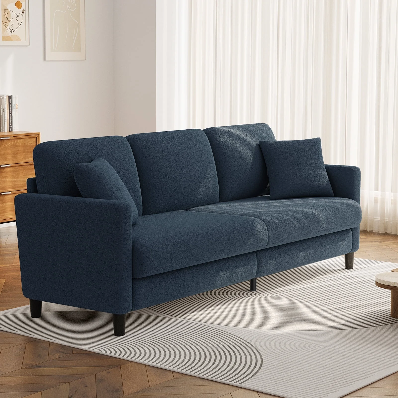 - - Sink into luxury with our 83" sofa couch - the ultimate blend of comfort and style! The 6.3" spring seat cushion and 7.1" backrest provide unbeatable support for your body, while the 22" seat depth ensures maximum relaxation.