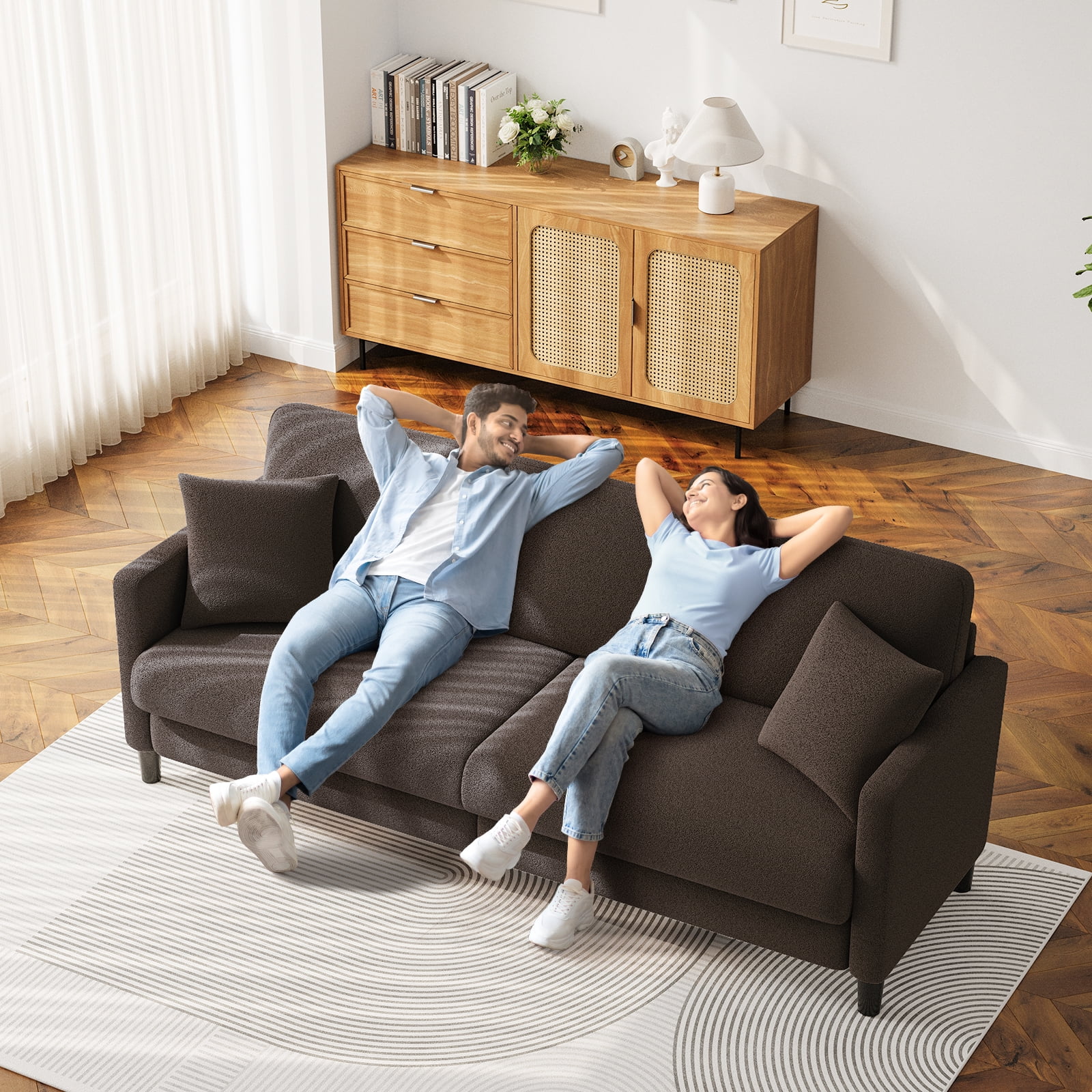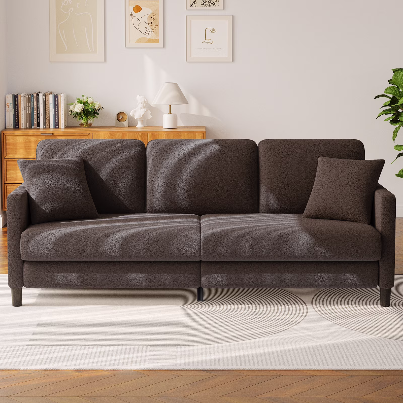 ???????????83 inches Sofa Couch, 3 Seater Teddy Fleece Couches with 2 Pillows,Super Soft Upholstered Loveseat Sofa, Simplicity design a perfect pick for a living room, Whether you're watching TV, reading, or sleeping, Fulfill your every need.
