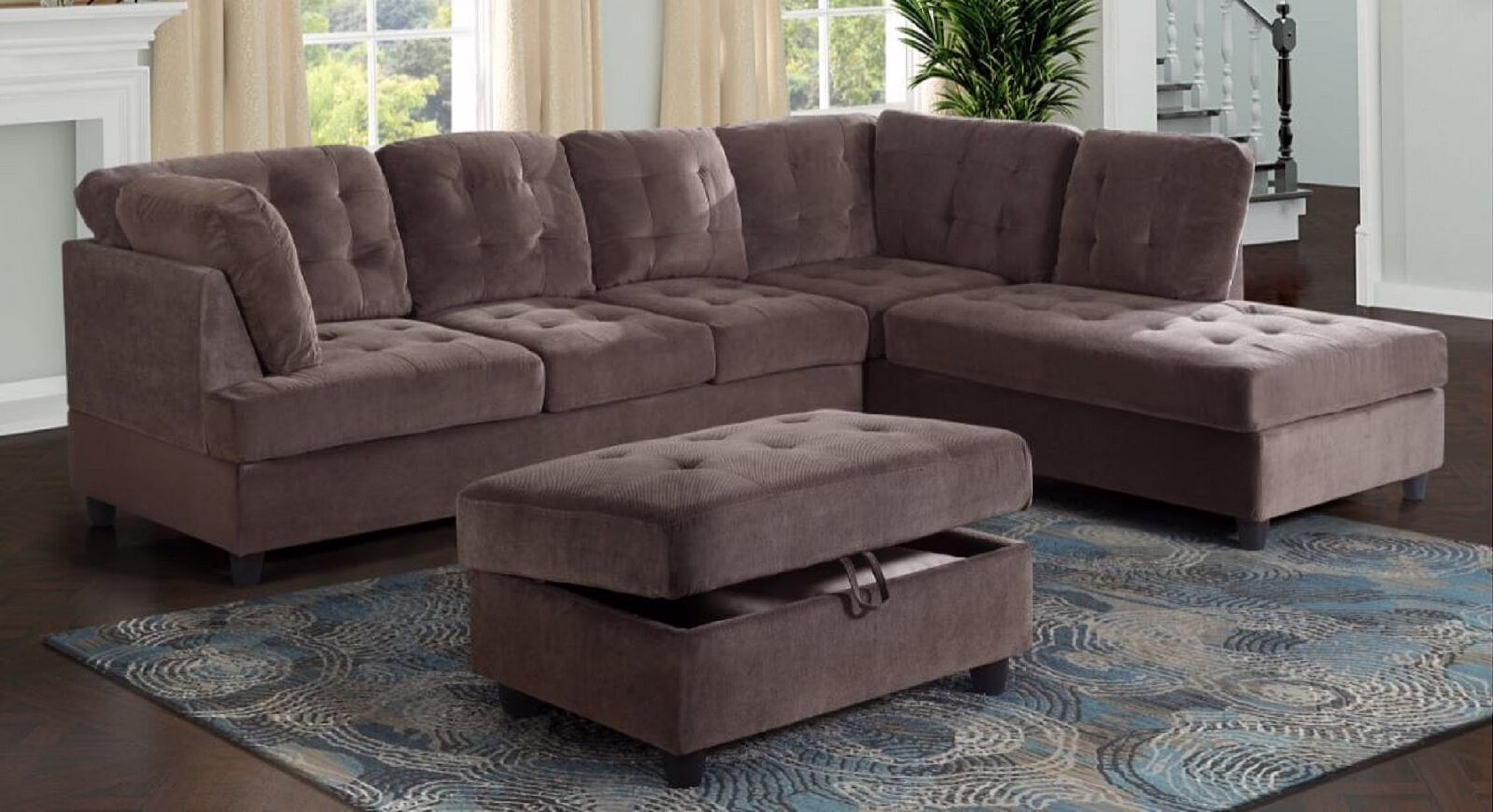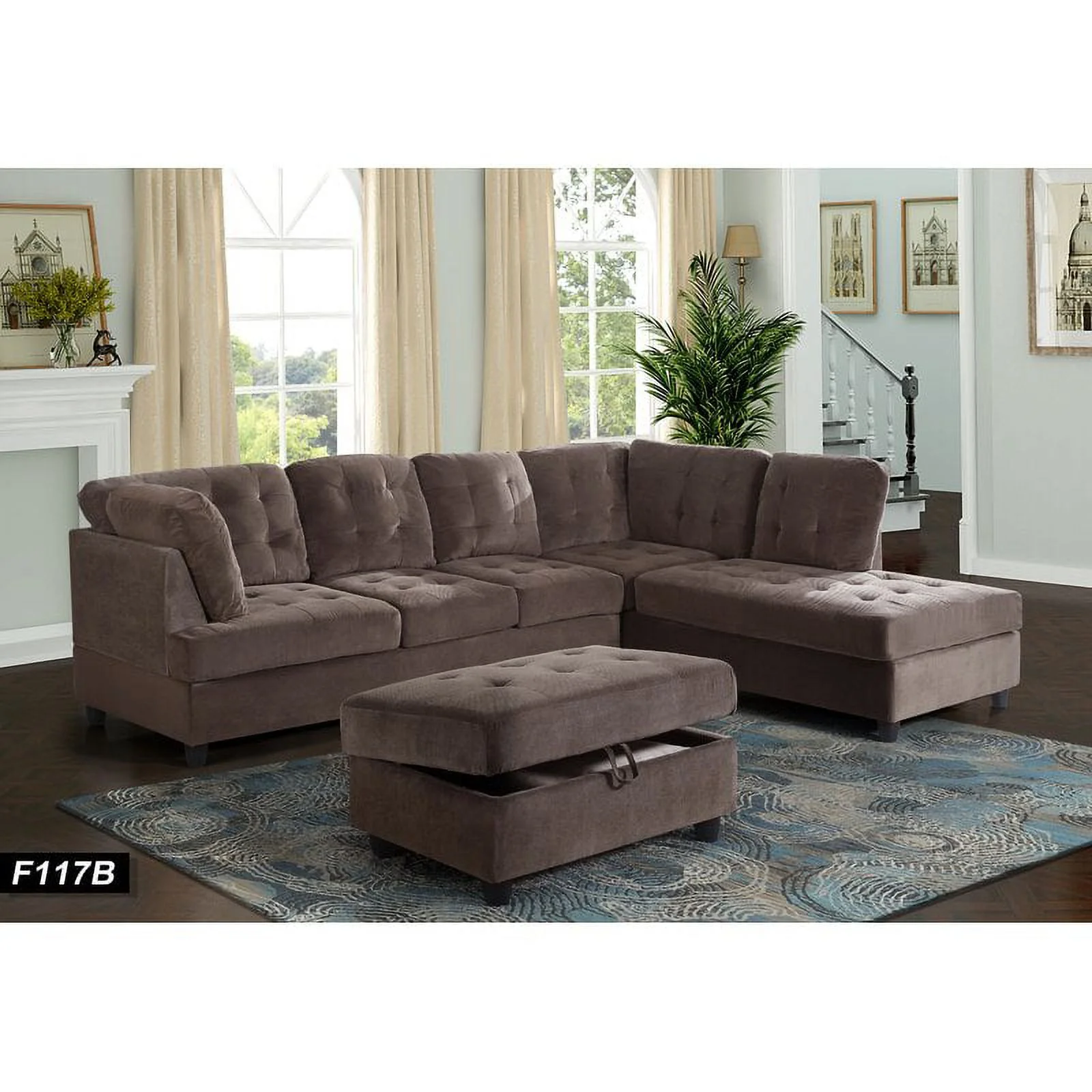 - �3 PIECE SECTIONAL SOFA�� This sofa set comes with ?a 3-seat sofa: 36'' H x 77'' W x 21'' D, ?a chaise lounge: 36'' H x 84'' W x 21'' D, ?an storage ottoman: 20'' H x 38'' W x 26'' D, ?and the 2 pillows in the package are just a gift for all of you. ?Sectional sofa overall dimension is approximately: 36'' H x 112'' W x 84'' D . The size of our sectional sofa set is perfect for most living room in America house.