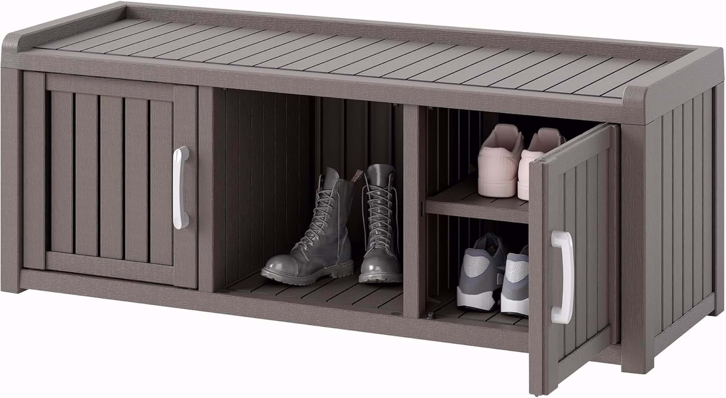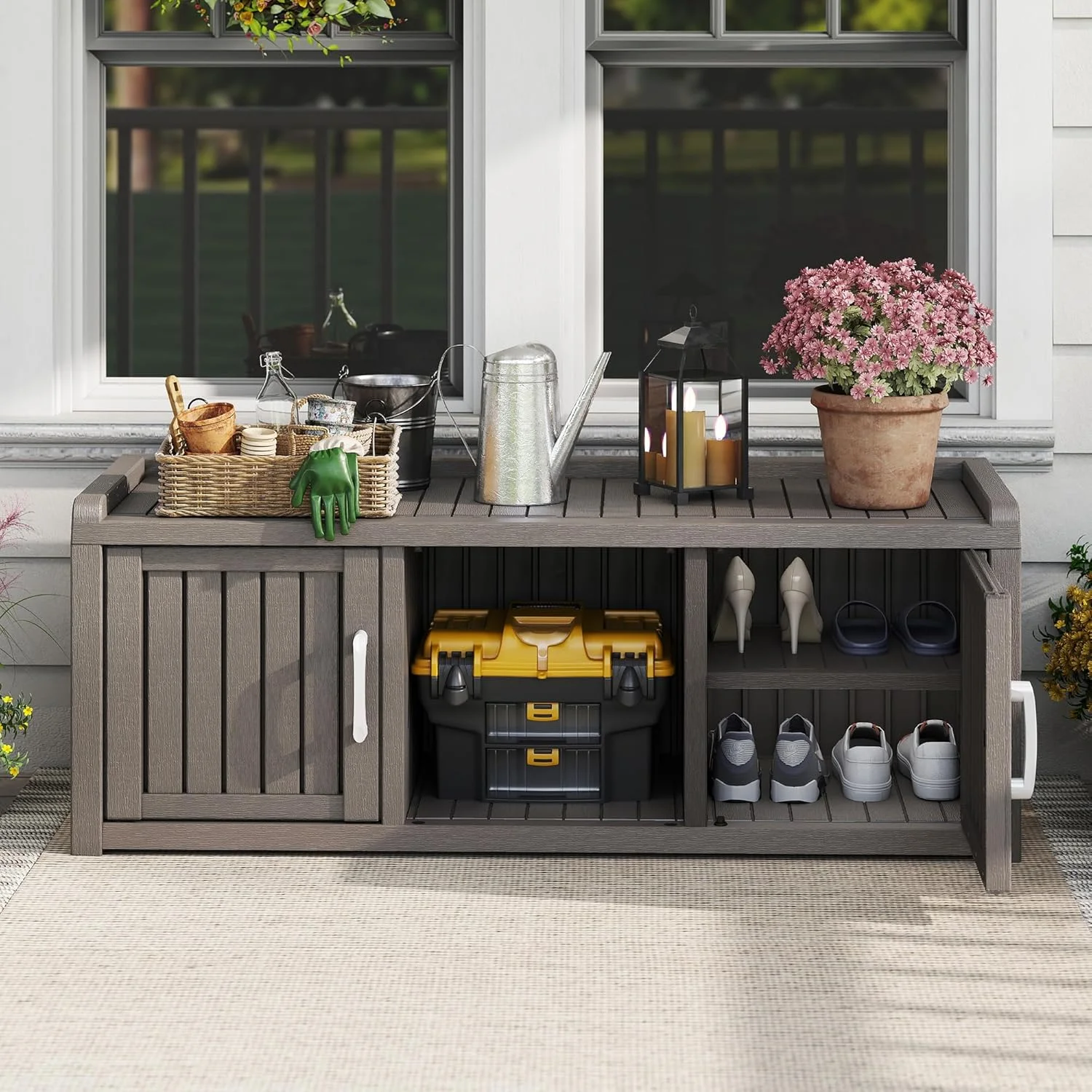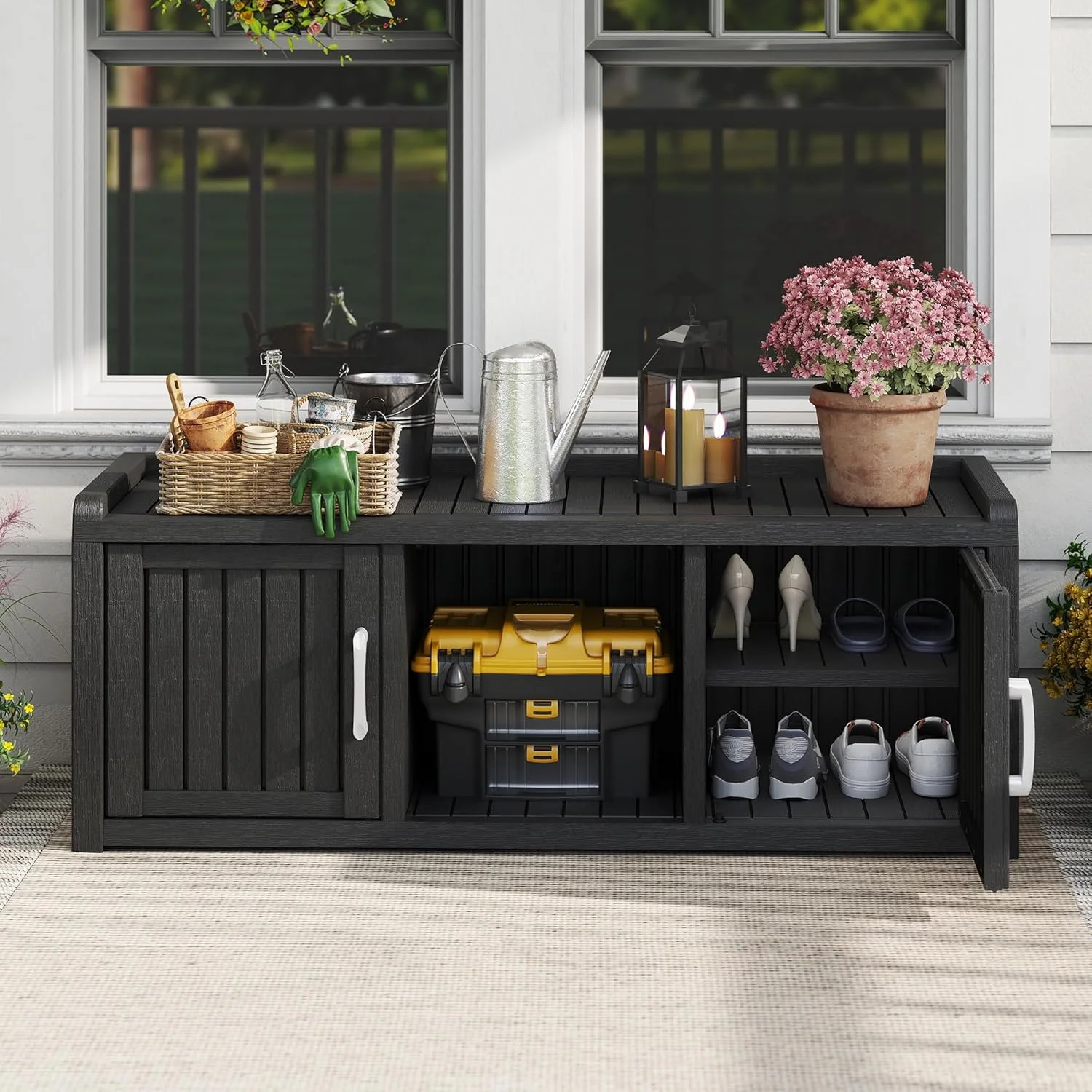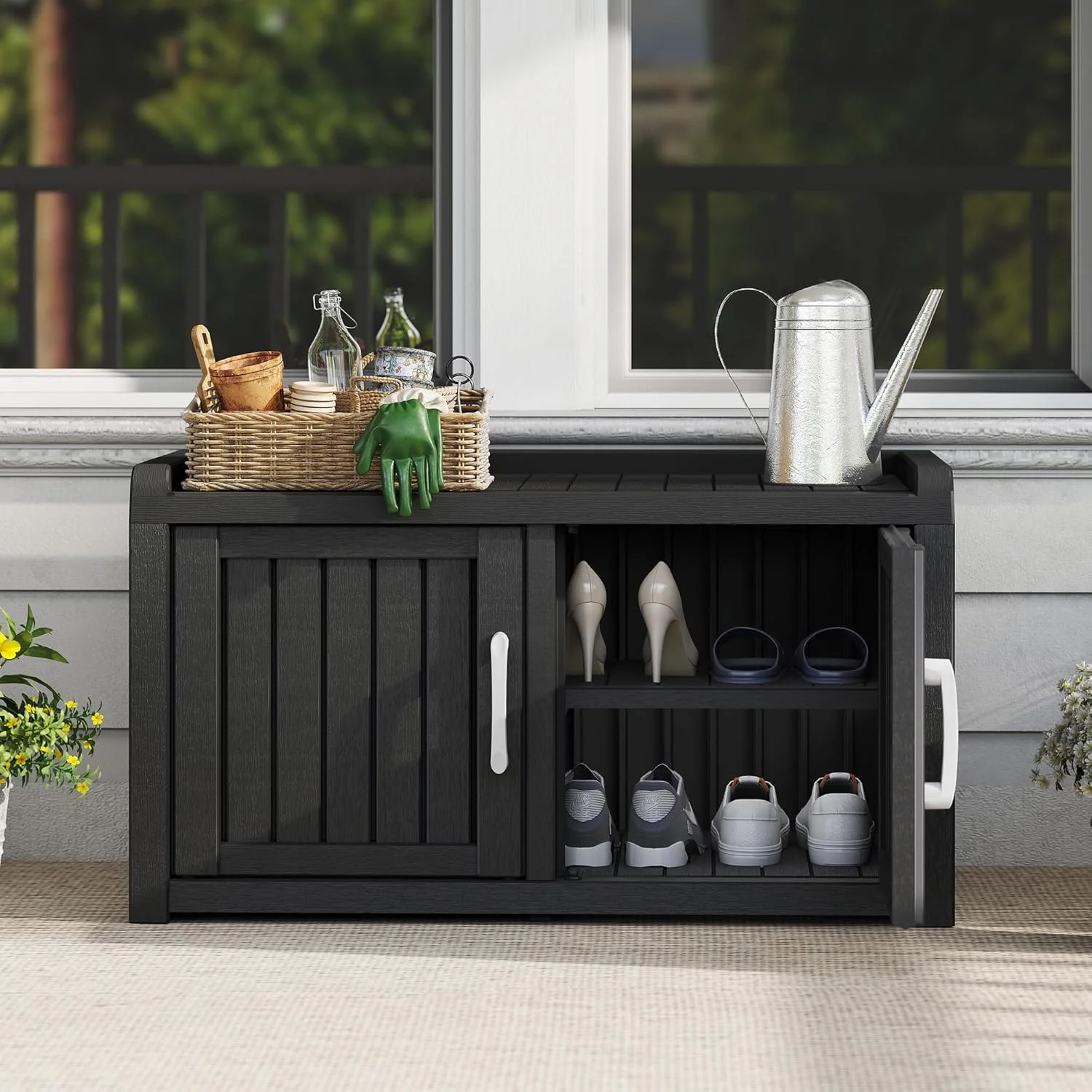- ??Weatherproof Resin Material: Crafted from durable, high-quality resin, this outdoor shoe cabinet defends against rain, moisture, and daily wear, keeping contents dry even in uncovered entryways. Built to last season after season.