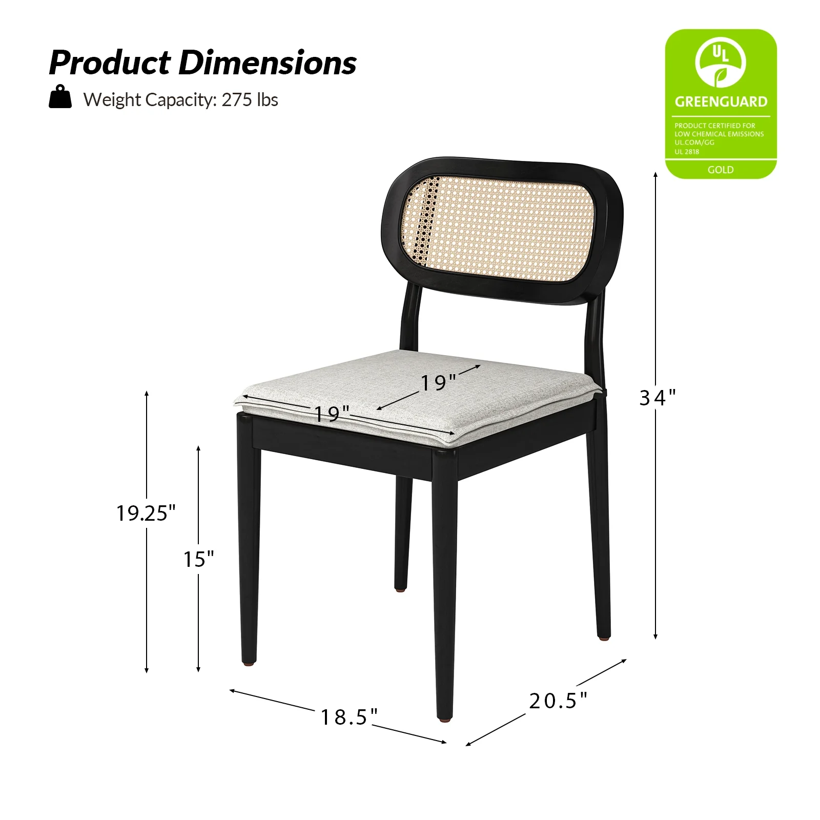 - Seat Size: 19"W x 19"D x 2"H