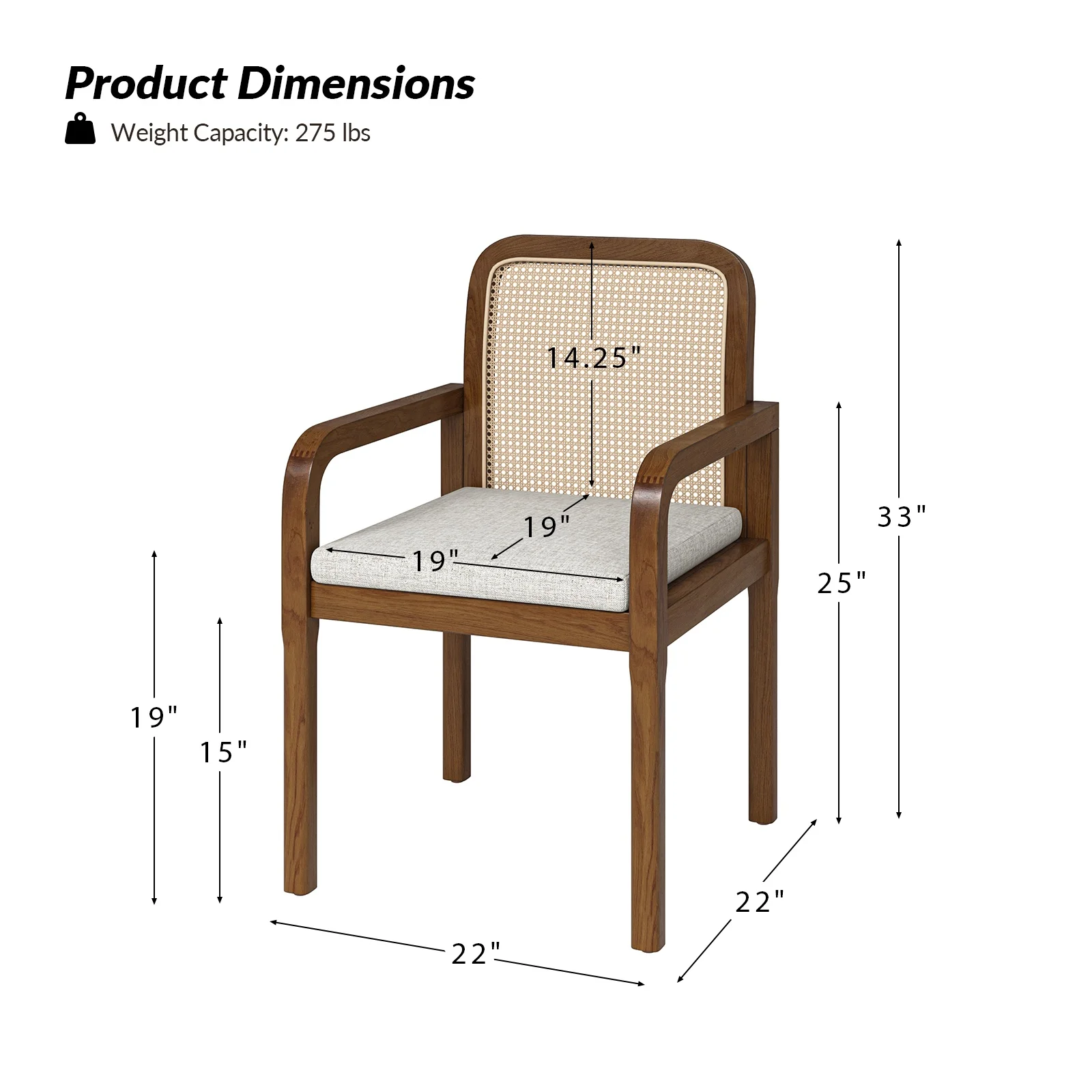 - Item Size: 22"W x 22"D x 33"H