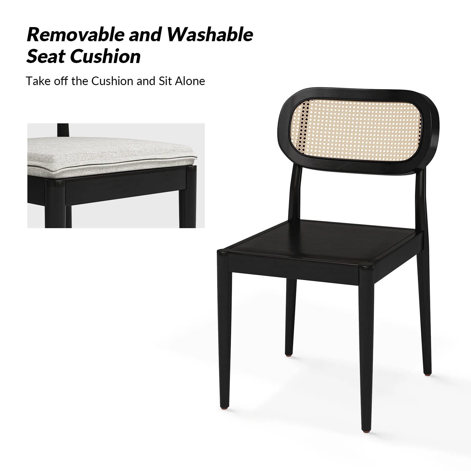 The removable and washable seat cushions are secured with sturdy horn buckles for both convenience and customization, you can take off the seat cushions and sit alone.