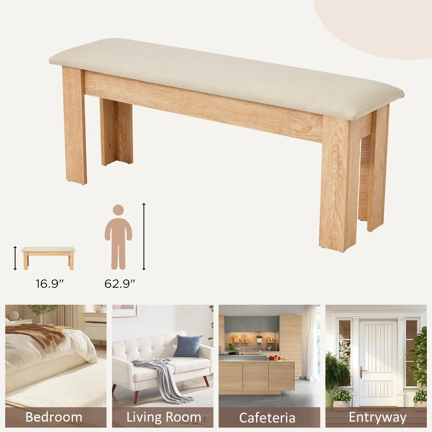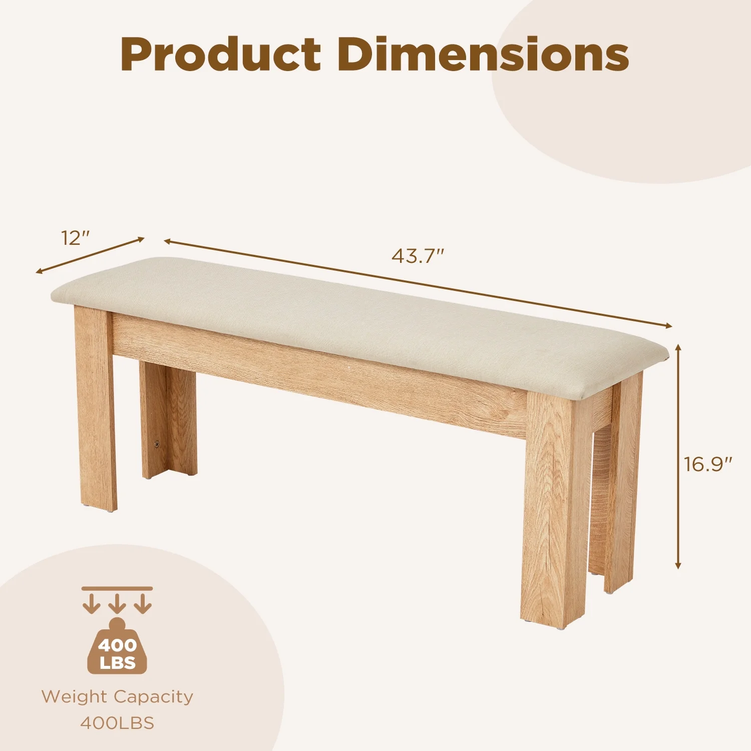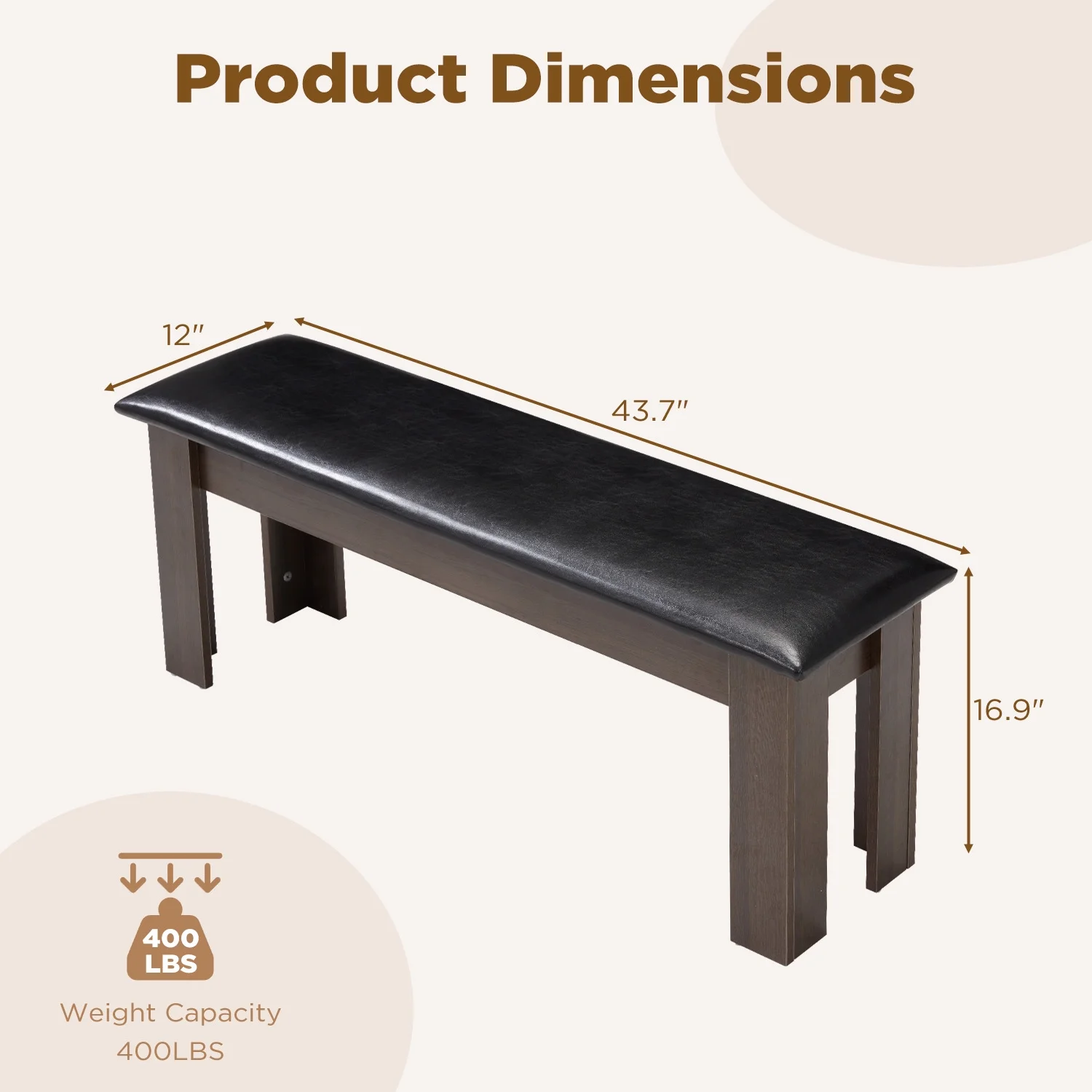 - ��Profuct Dimension��Our box has two kitchen benches, each measuring 43.7 "x 12" x 16.9 "(L x W x H). The extra wide seats can accommodate 2-3 people, making them perfect for family dining and gatherings with friends. You can also be used in conjunction with our dining table.