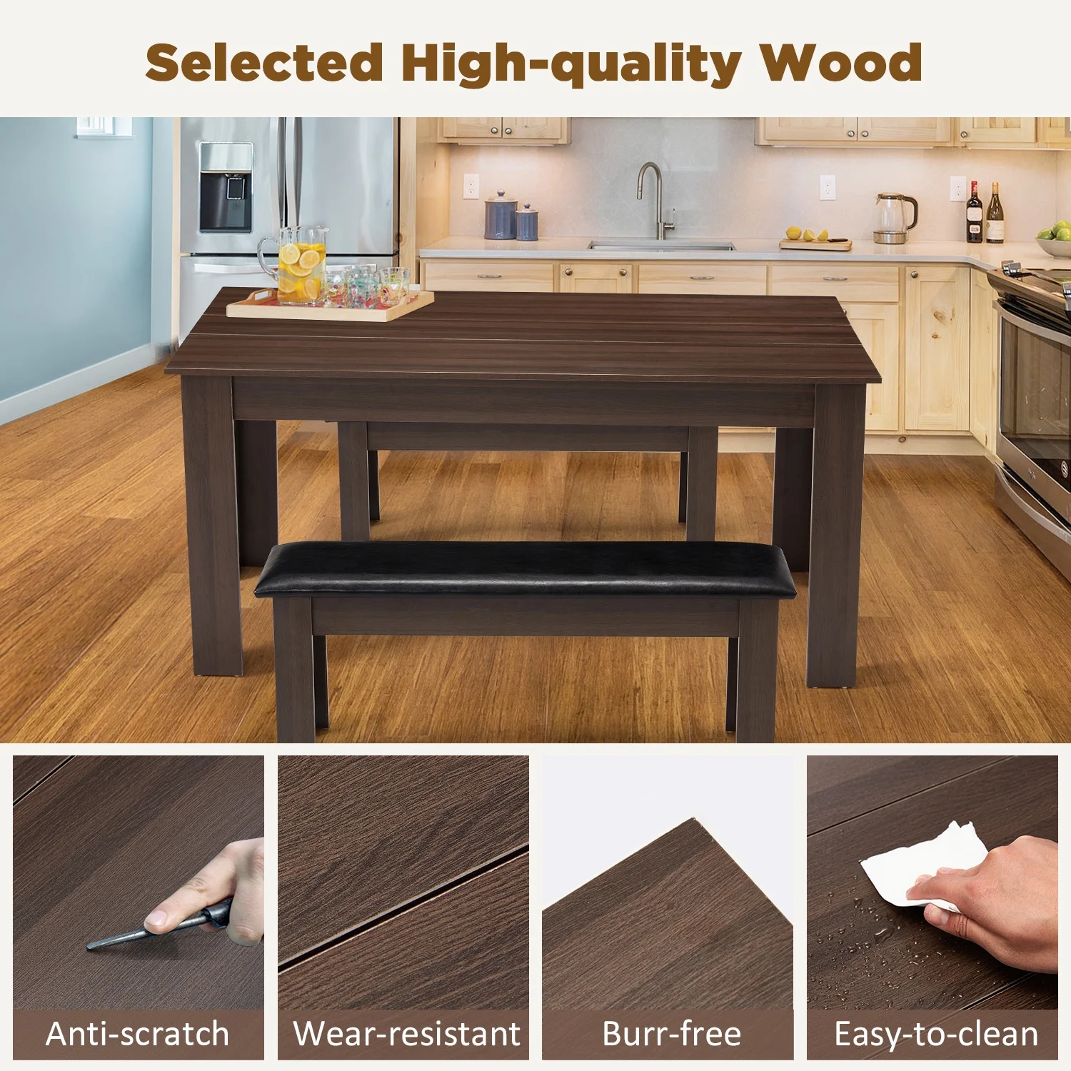 - ��Buy With Confidence��Comes with clear installation instruction, this dining bench is easy to install in short time by yourself. The surface of this bench is waterproof which can be cleaned with cloth conveniently. If you have any questions, please contact our professional customer support team. We will give you a perfect solution.