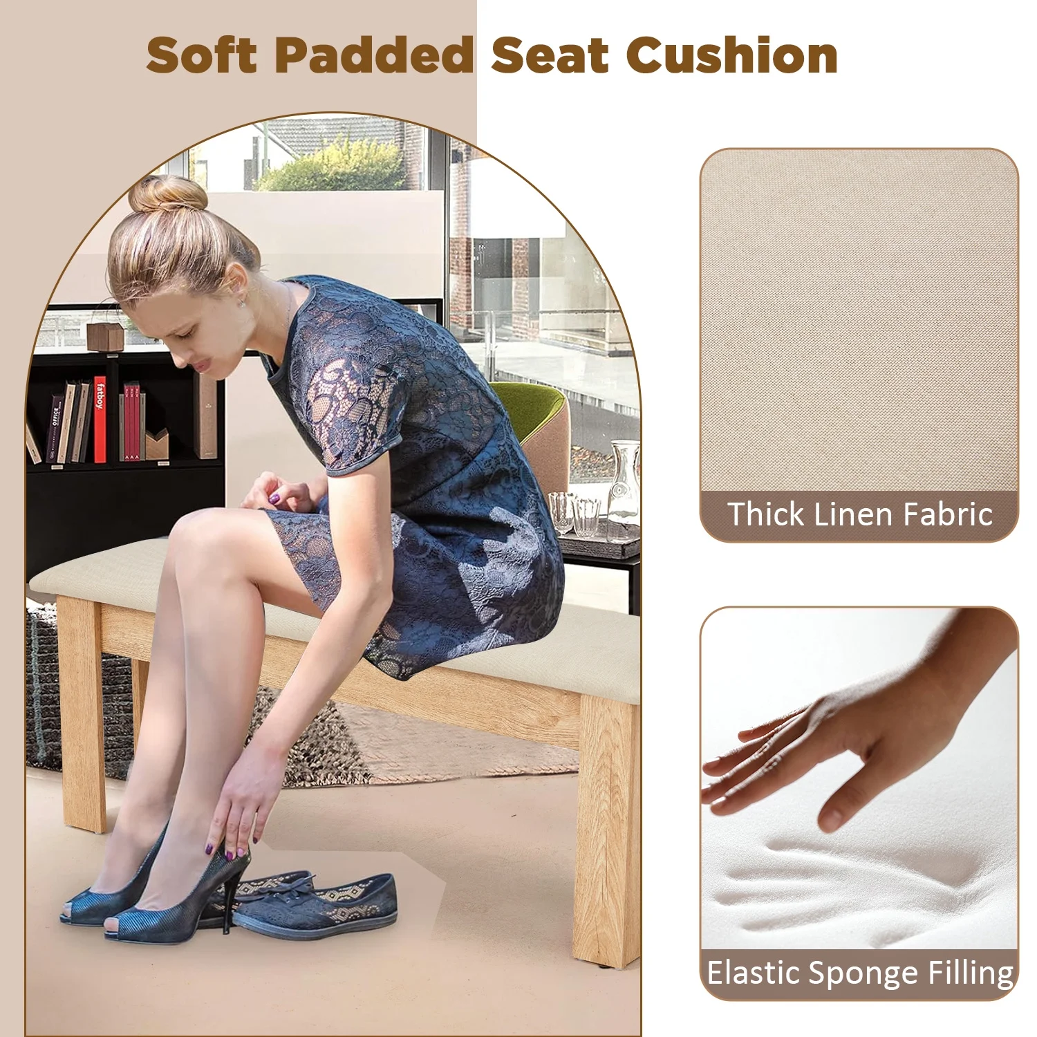 - ��Smooth & Comfortable Seat��This two-piece bench top is made of high-quality linen fabric material and filled with high elasticity pure sponge, which can comfortably sit for a long time. The cushion is thick and elastic, providing an elegant and pleasant environment for your dining time. An excellent choice for sitting for a long time without getting tired.