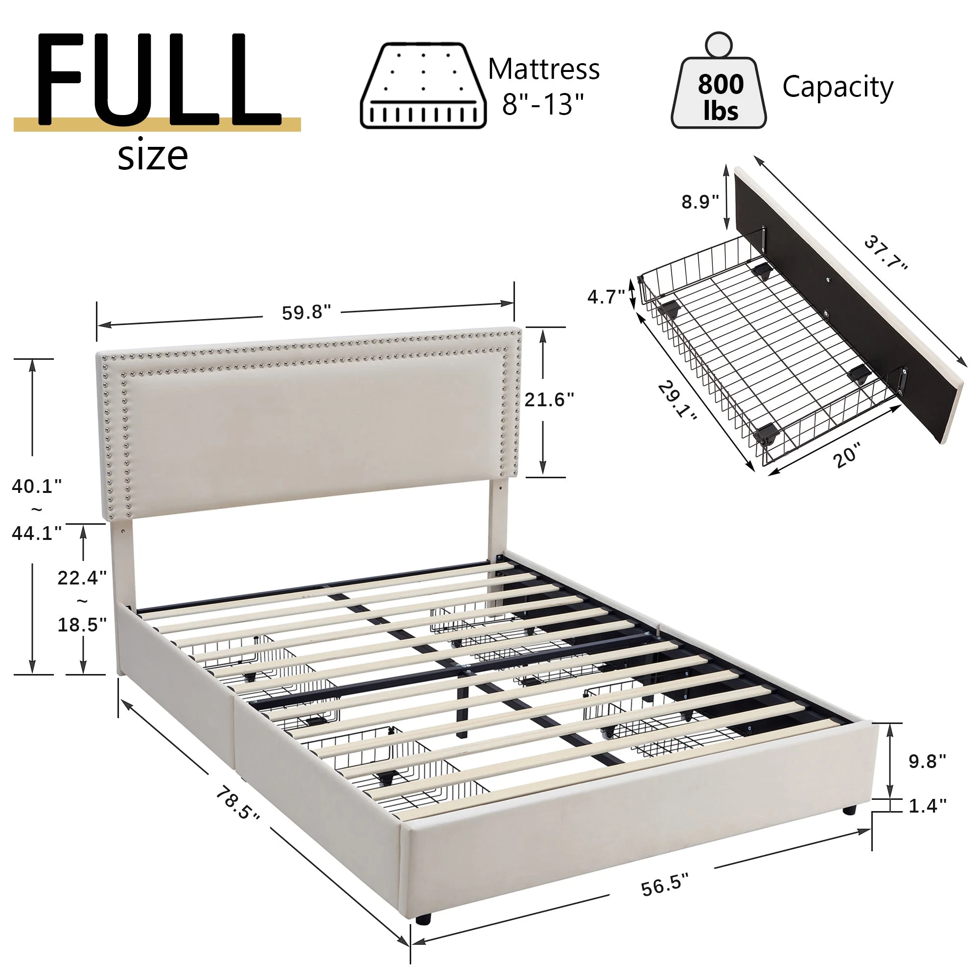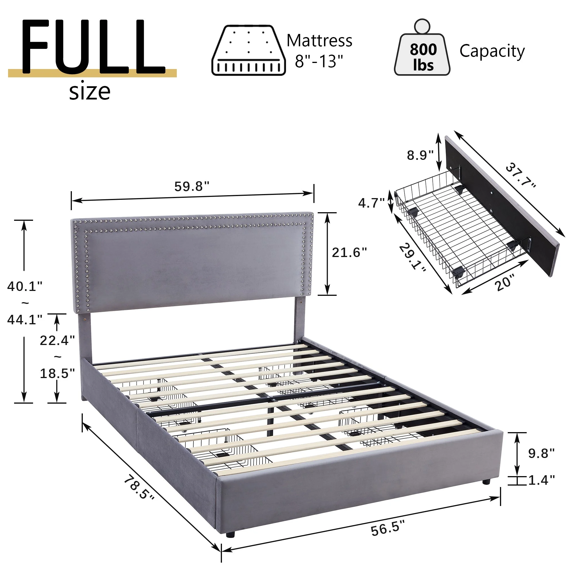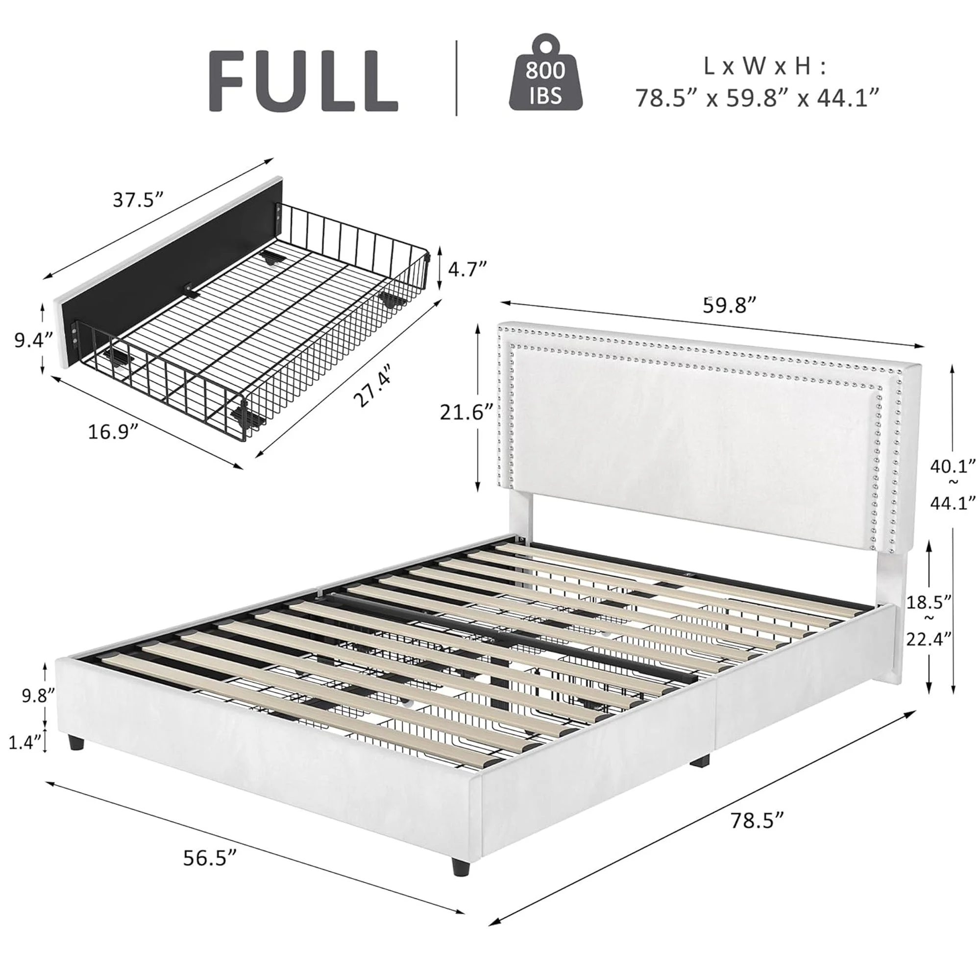 - Full Bed Frame: 78.5" L x 56.5" W x 40.1-44.1" H