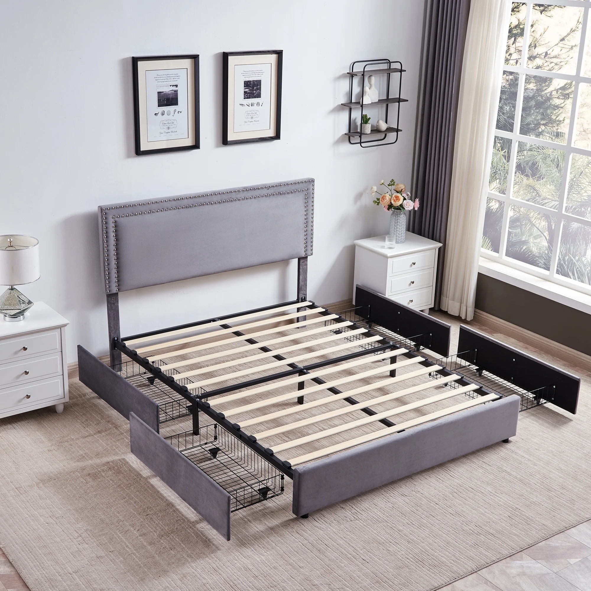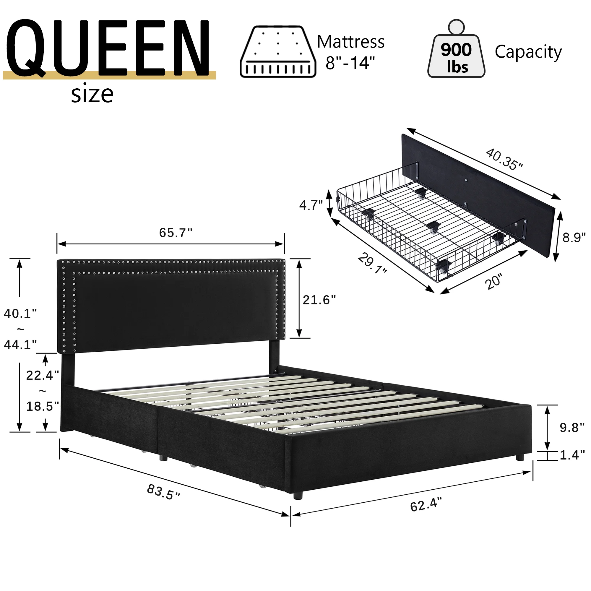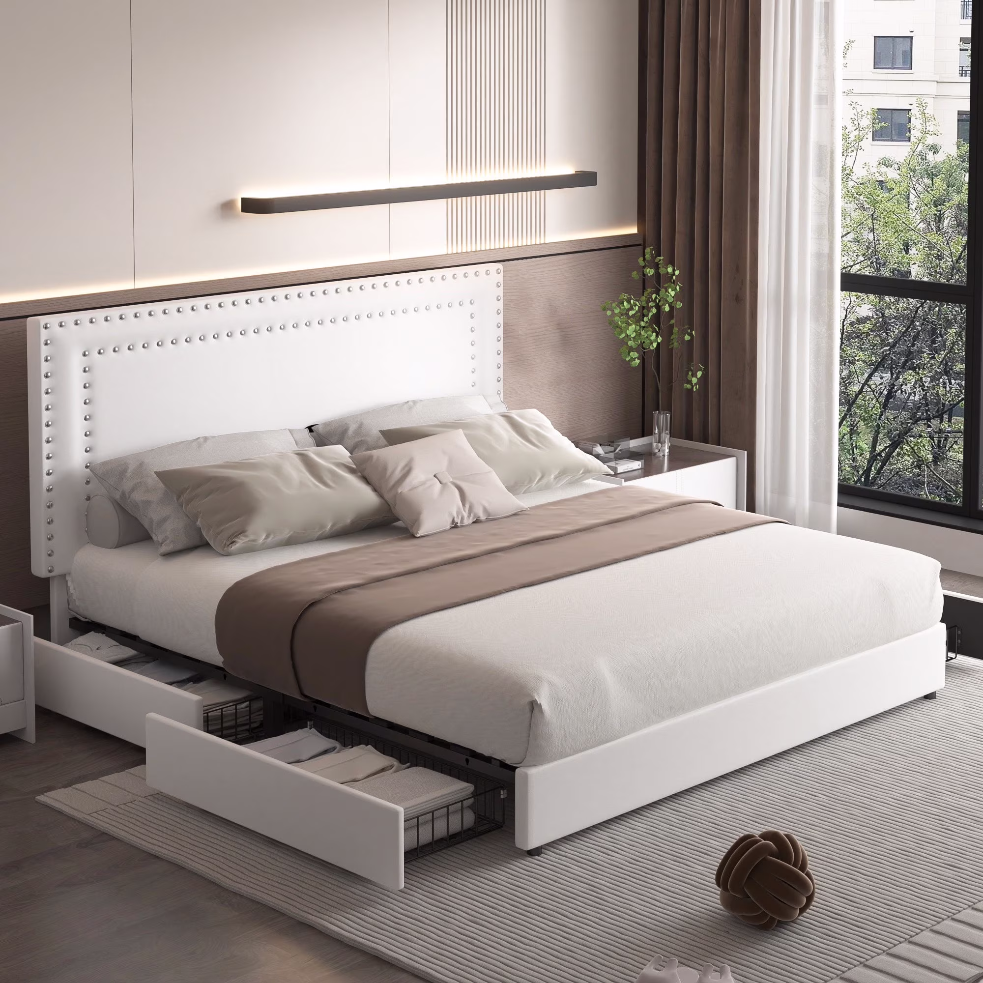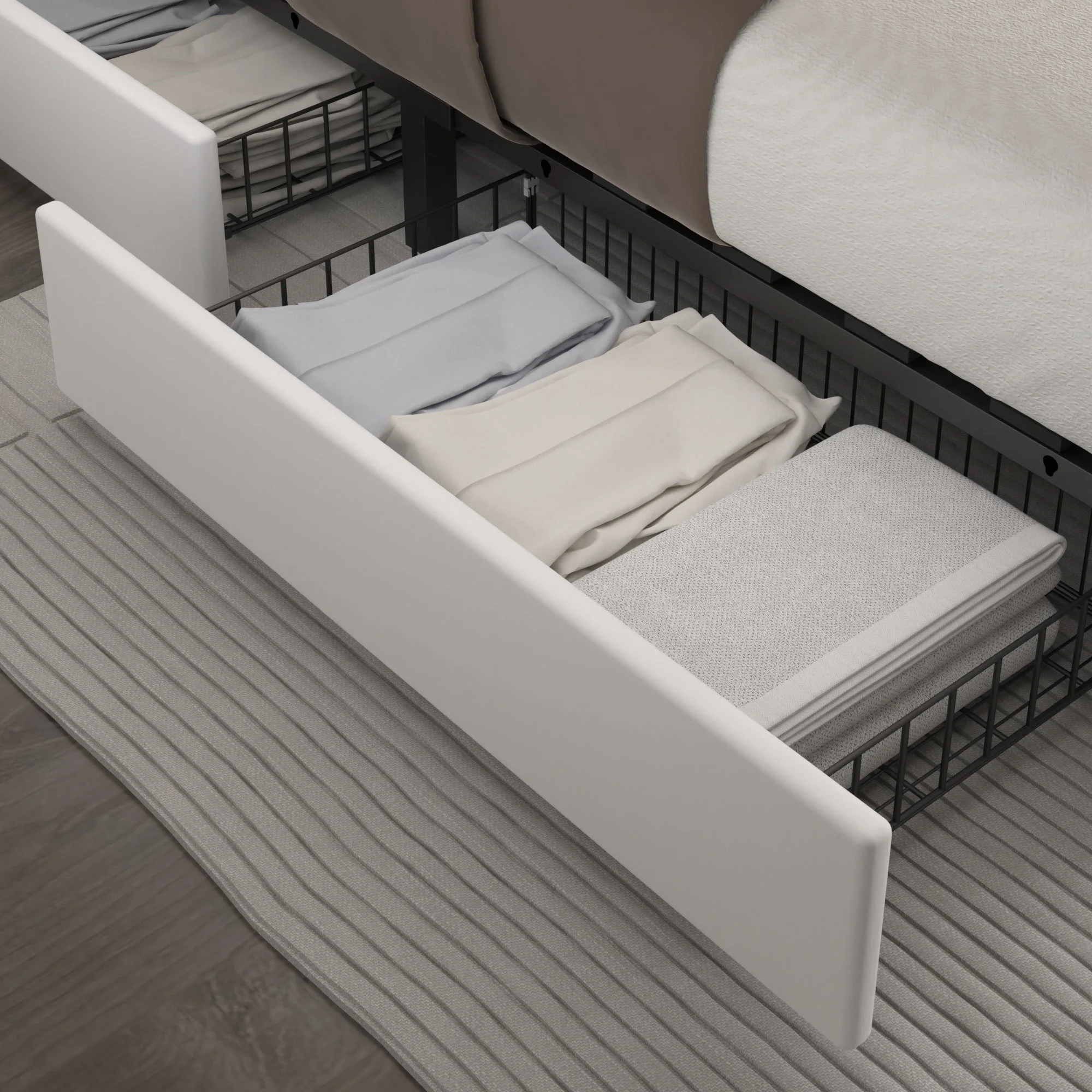 - [Storage Bed with 4 Large Drawers]: Four large slide-out drawers underneath the bed frame provide the perfect storage space for bed linen, clothing, etc. Each drawer is equipped with wheels for easy sliding in and out.