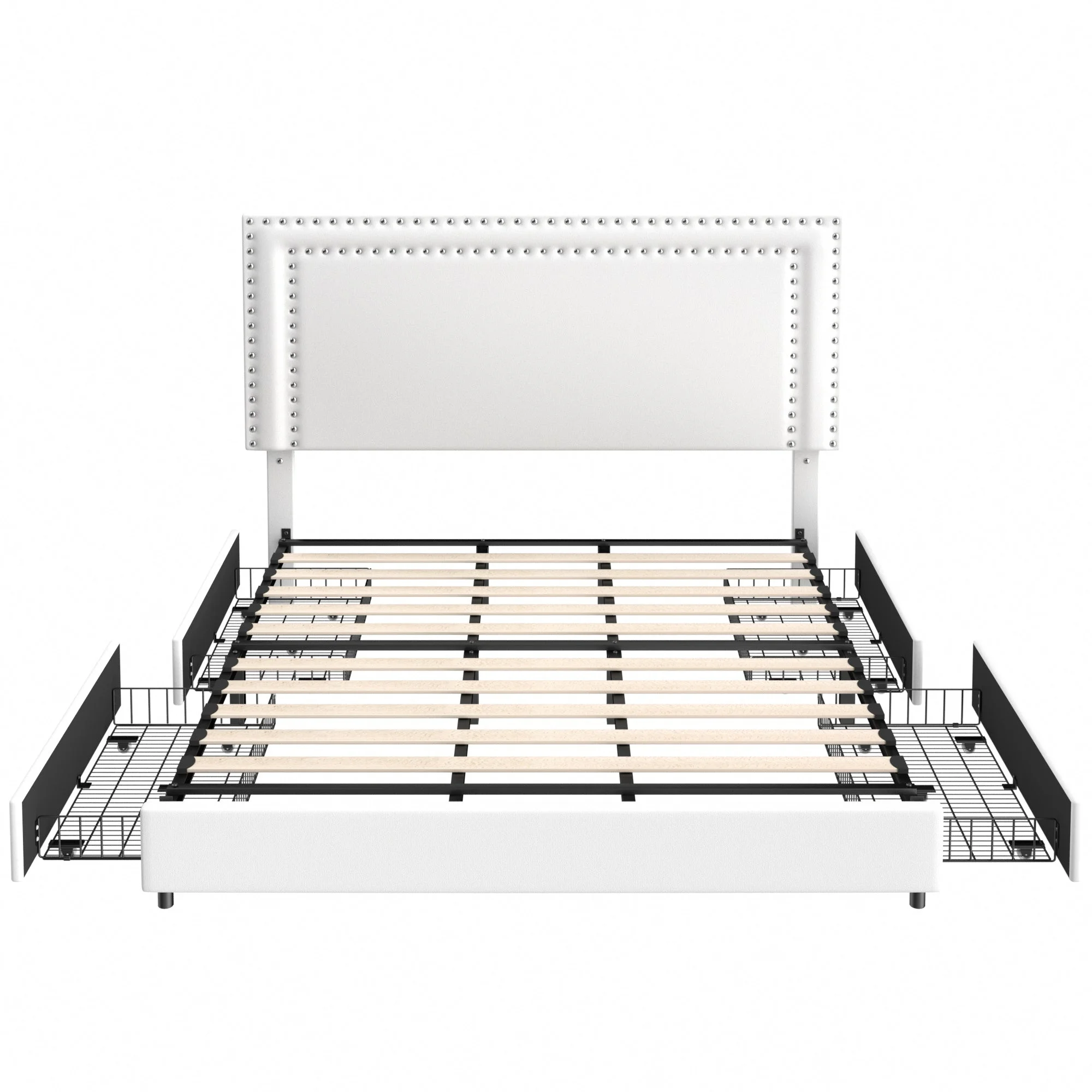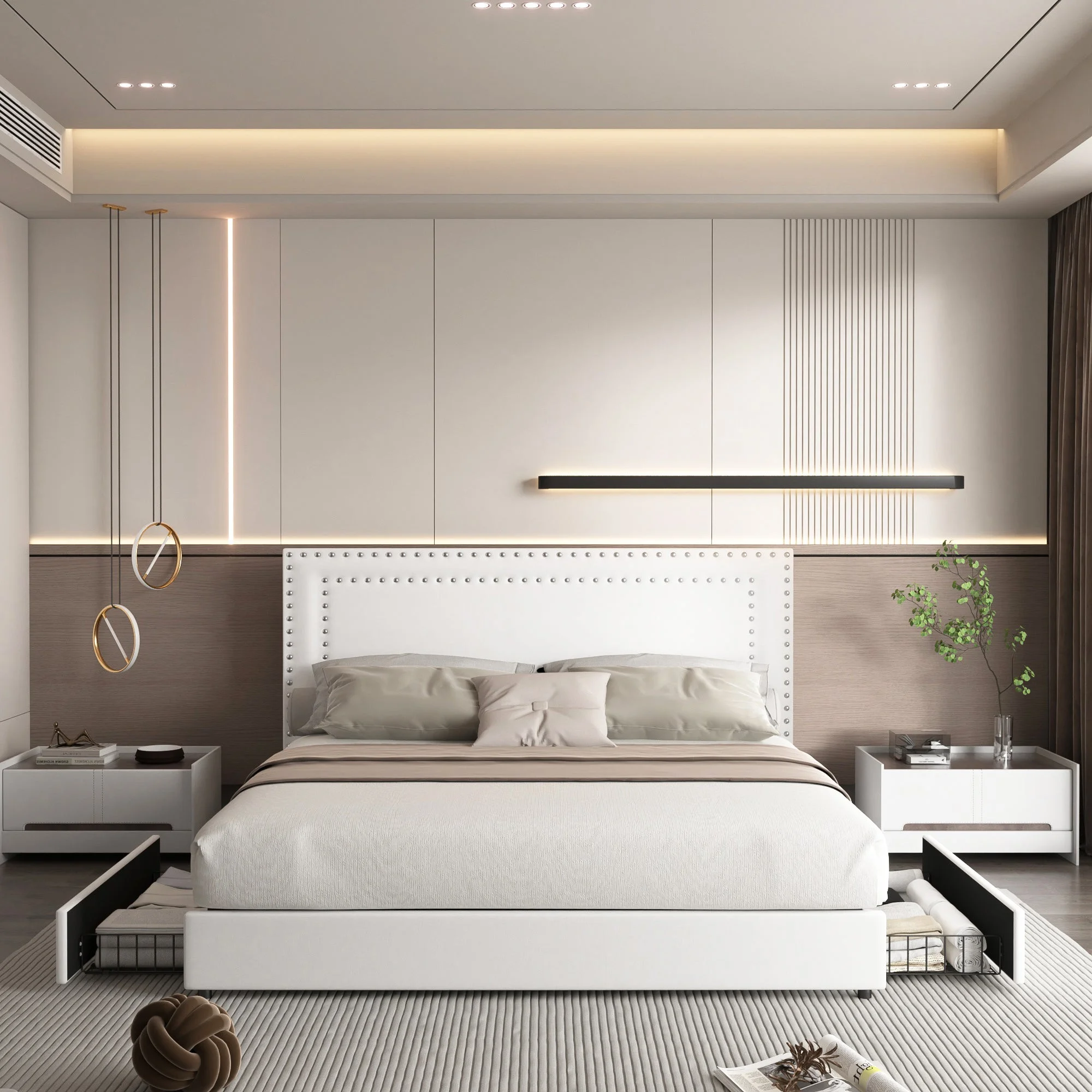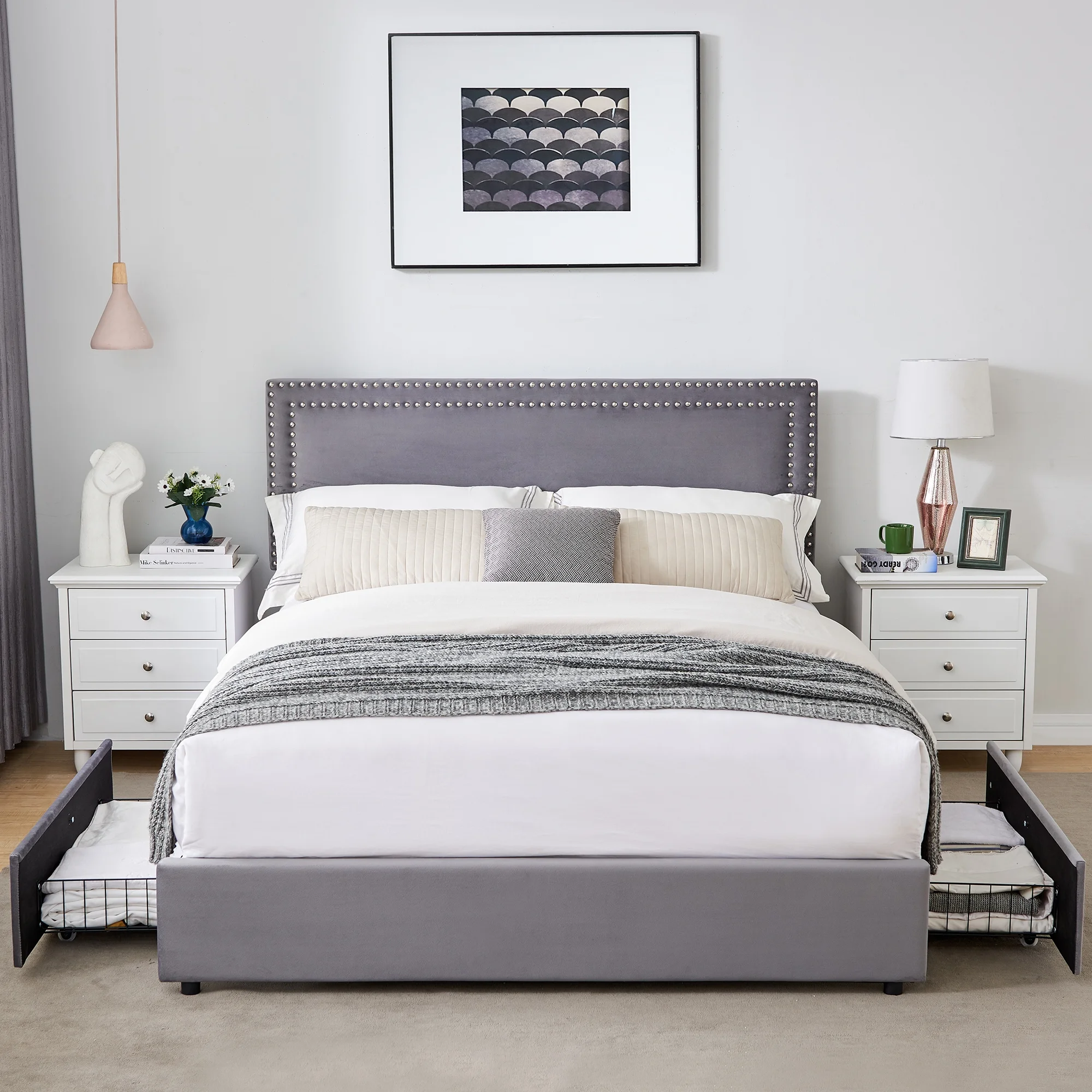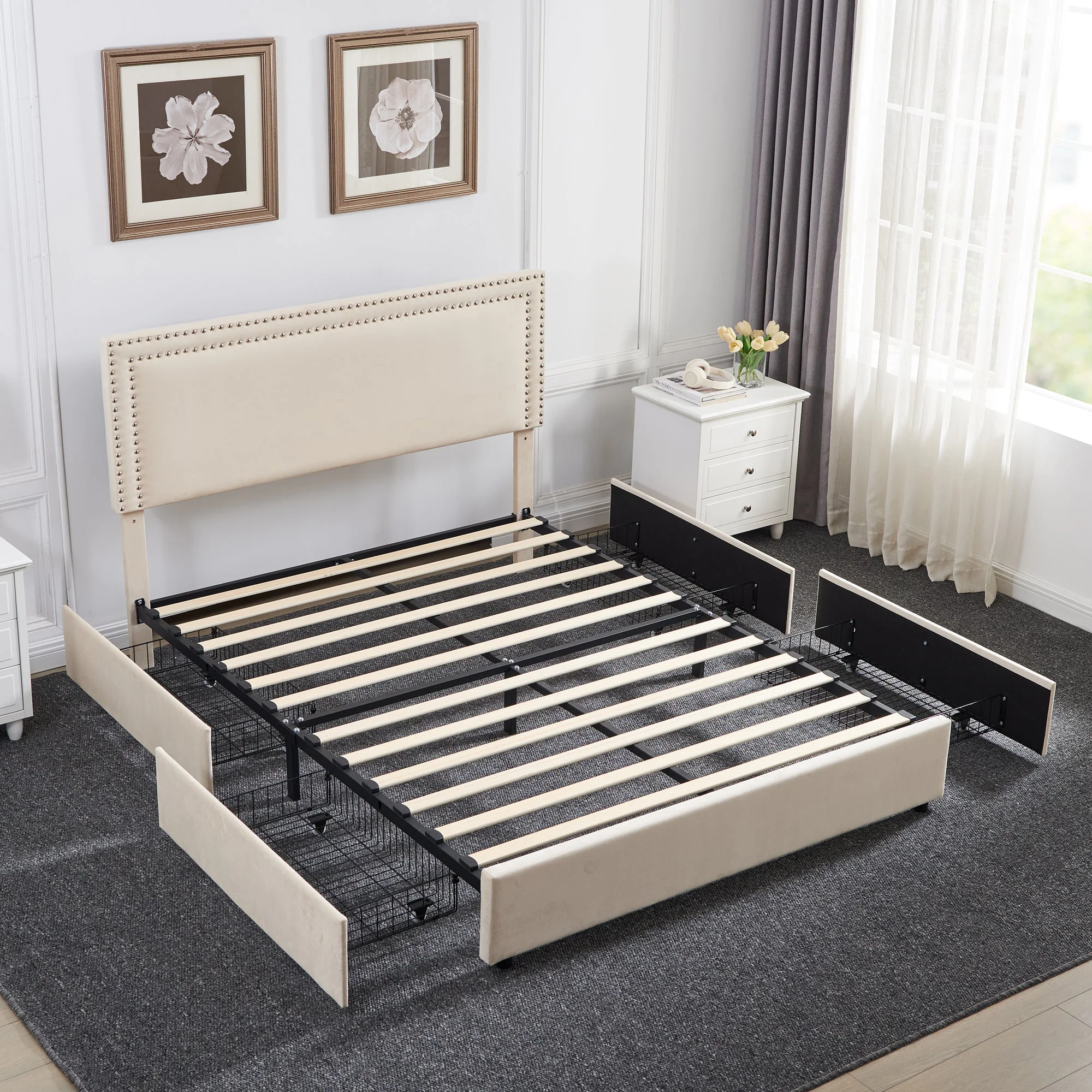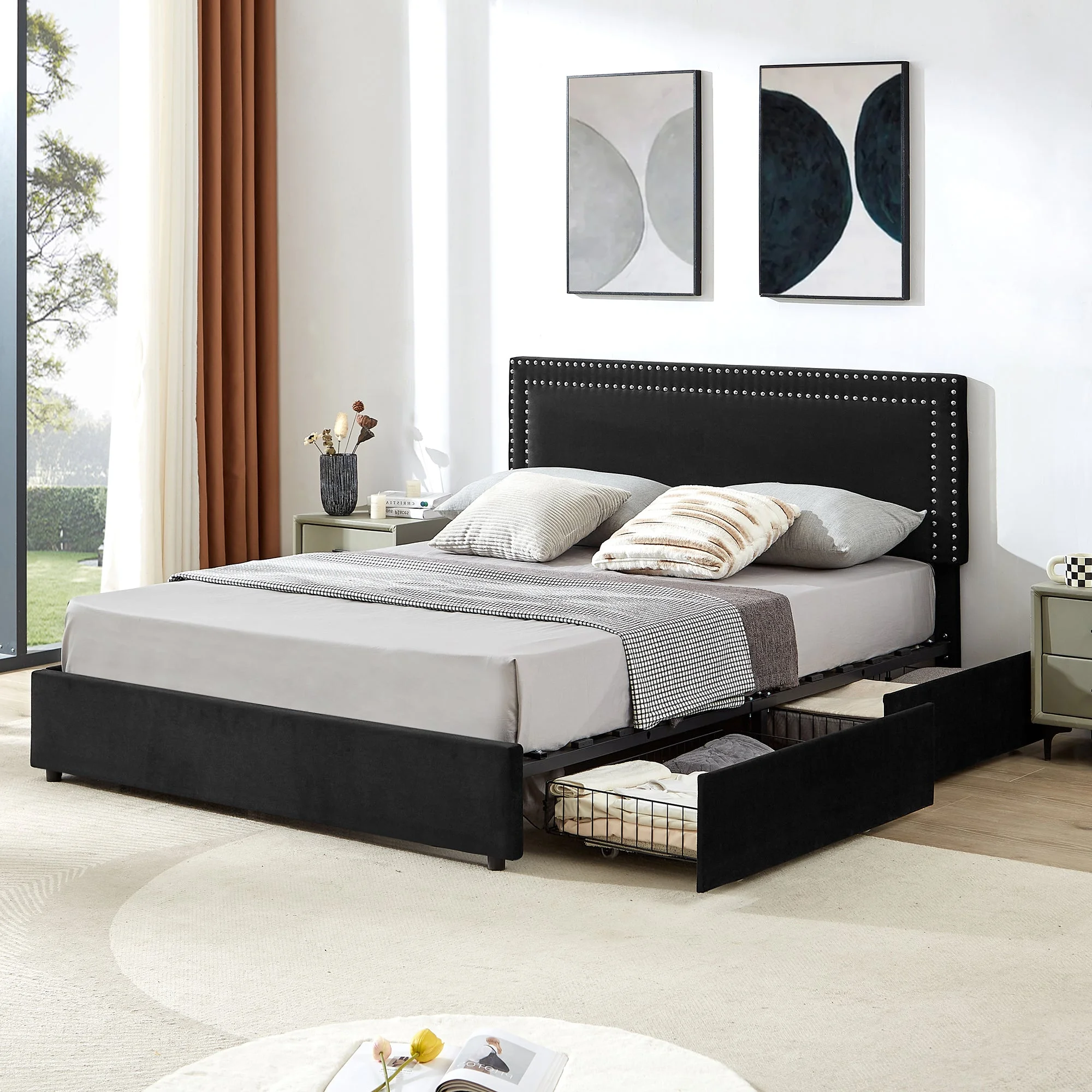 - [Storage Bed with 4 Large Drawers]: Four large slide-out drawers underneath the bed frame provide the perfect storage space for bed linen, clothing, etc. Each drawer is equipped with wheels for easy sliding in and out.