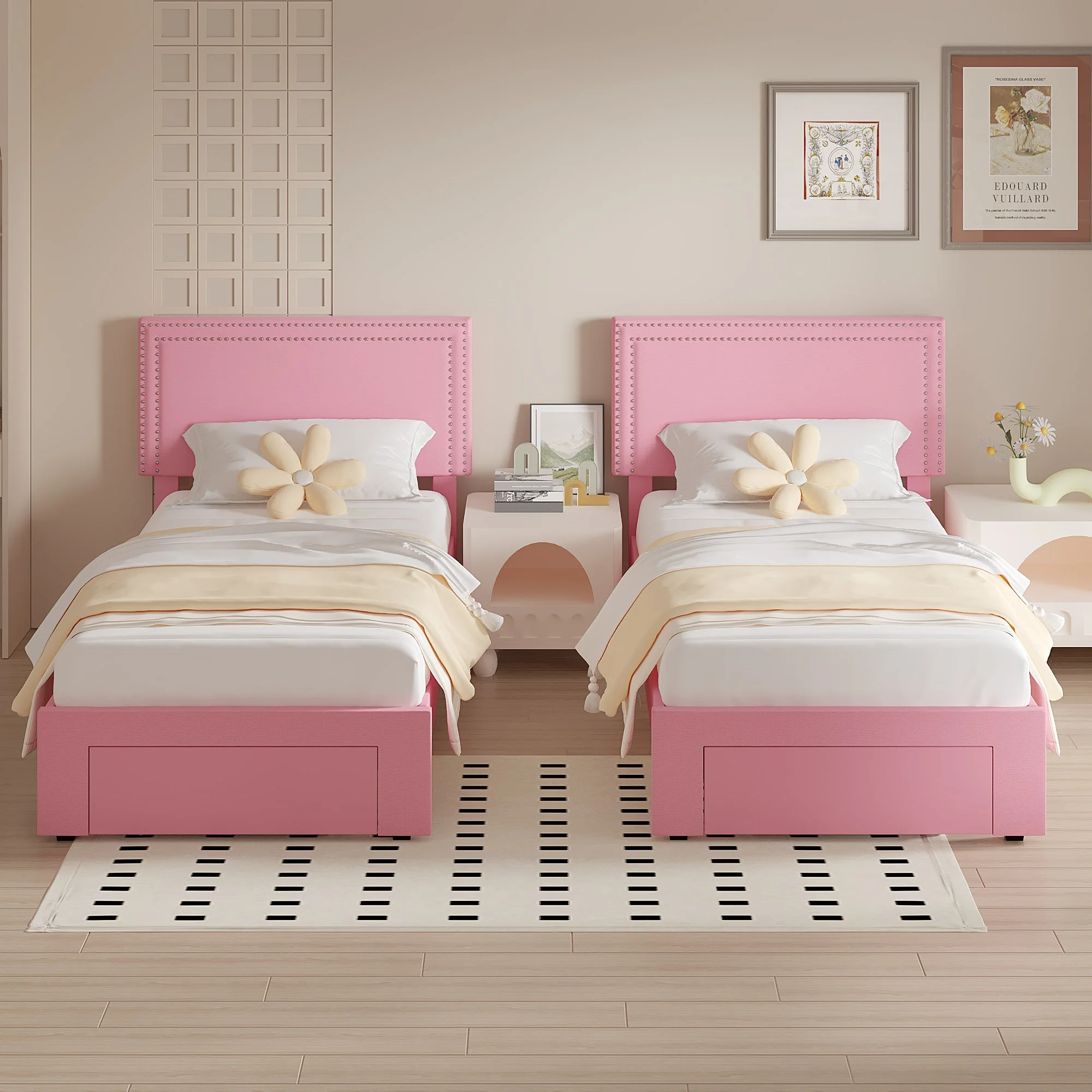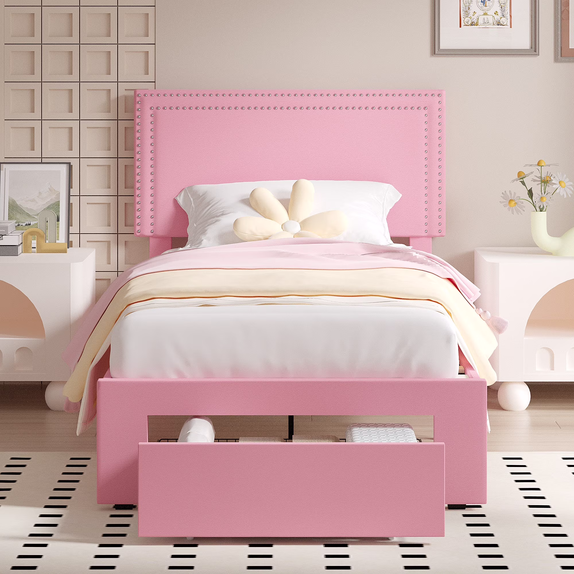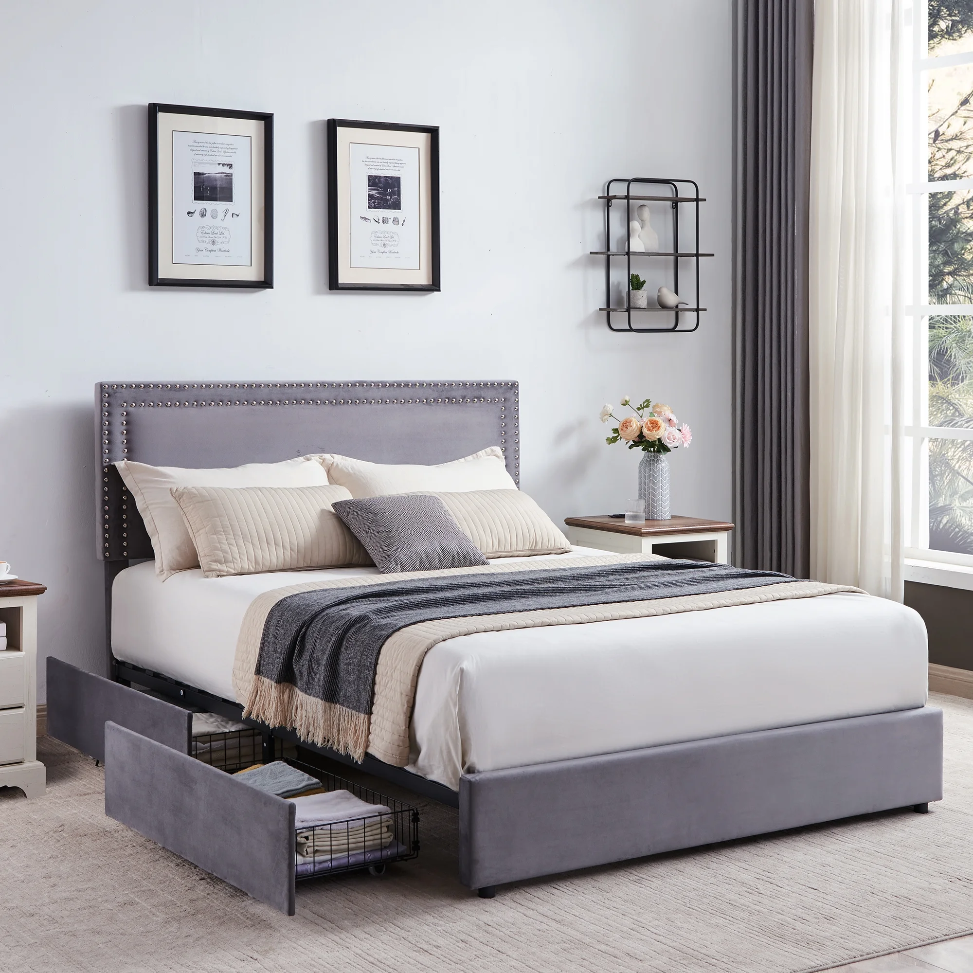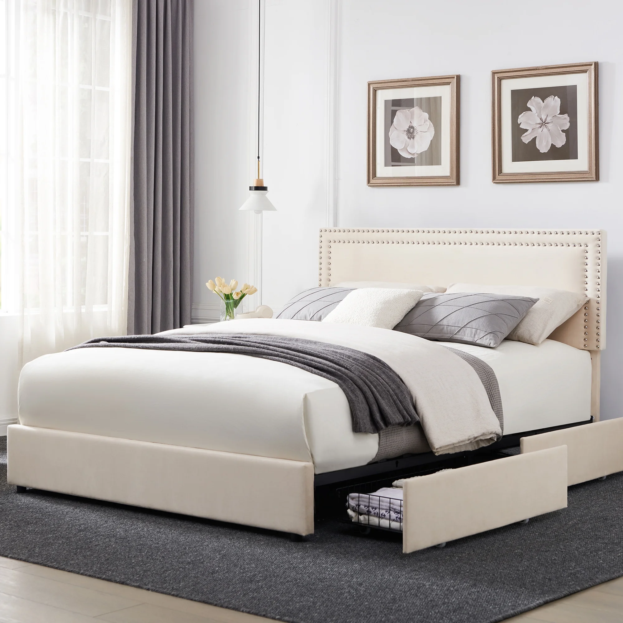 - [Storage Bed with 4 Large Drawers]: Four large slide-out drawers underneath the bed frame provide the perfect storage space for bed linen, clothing, etc. Each drawer is equipped with wheels for easy sliding in and out.