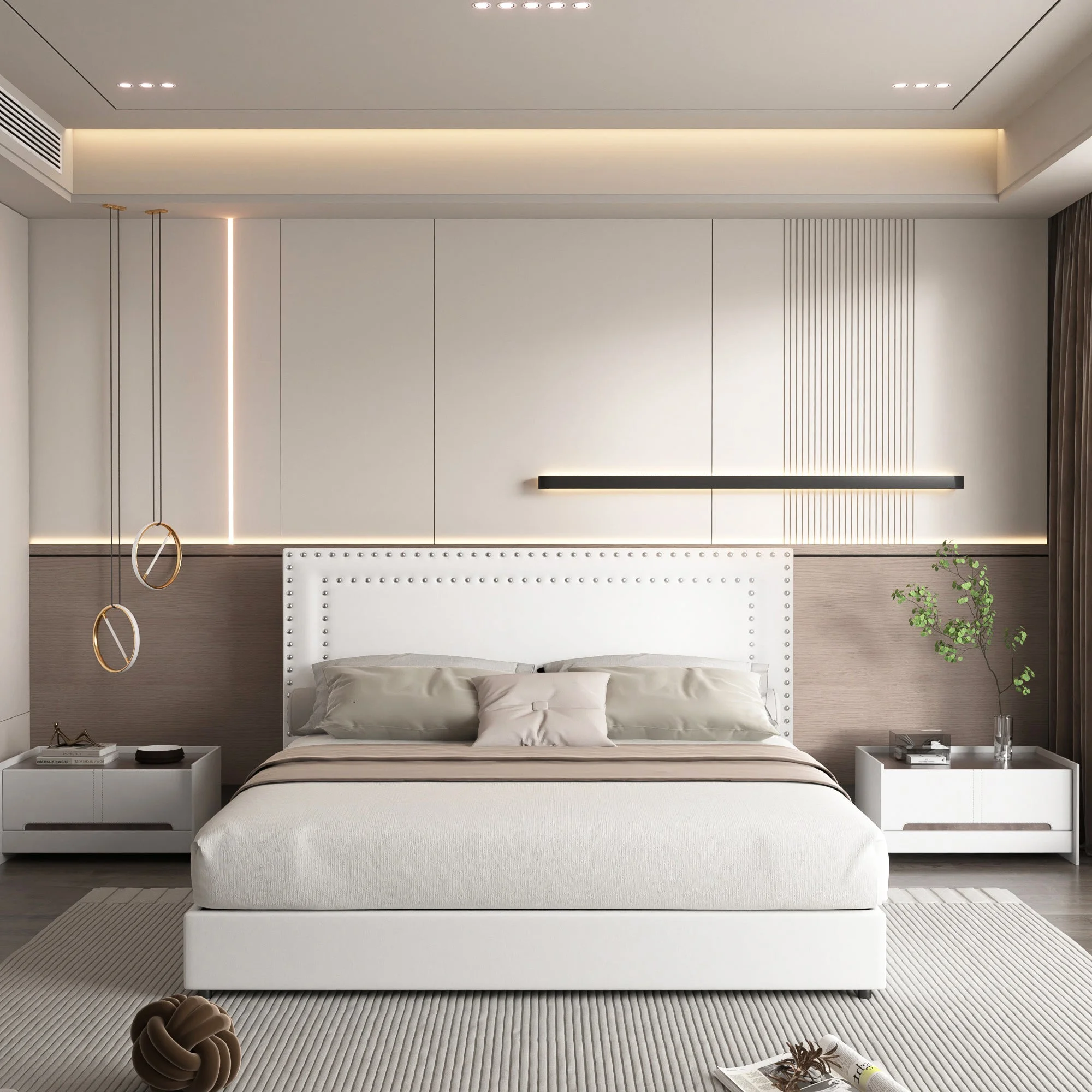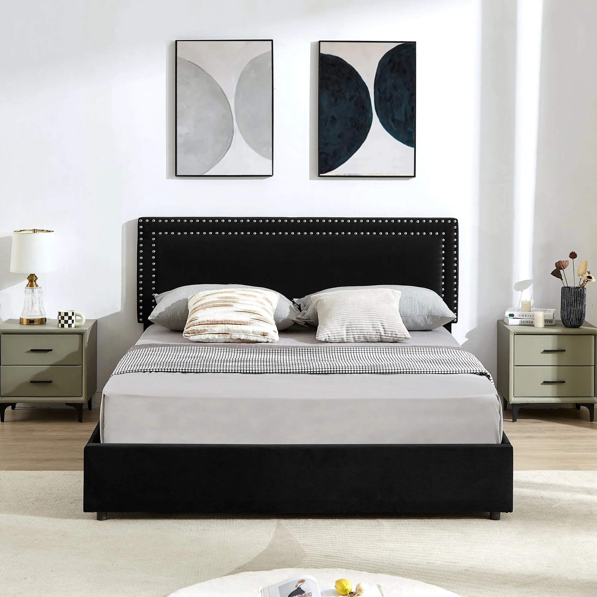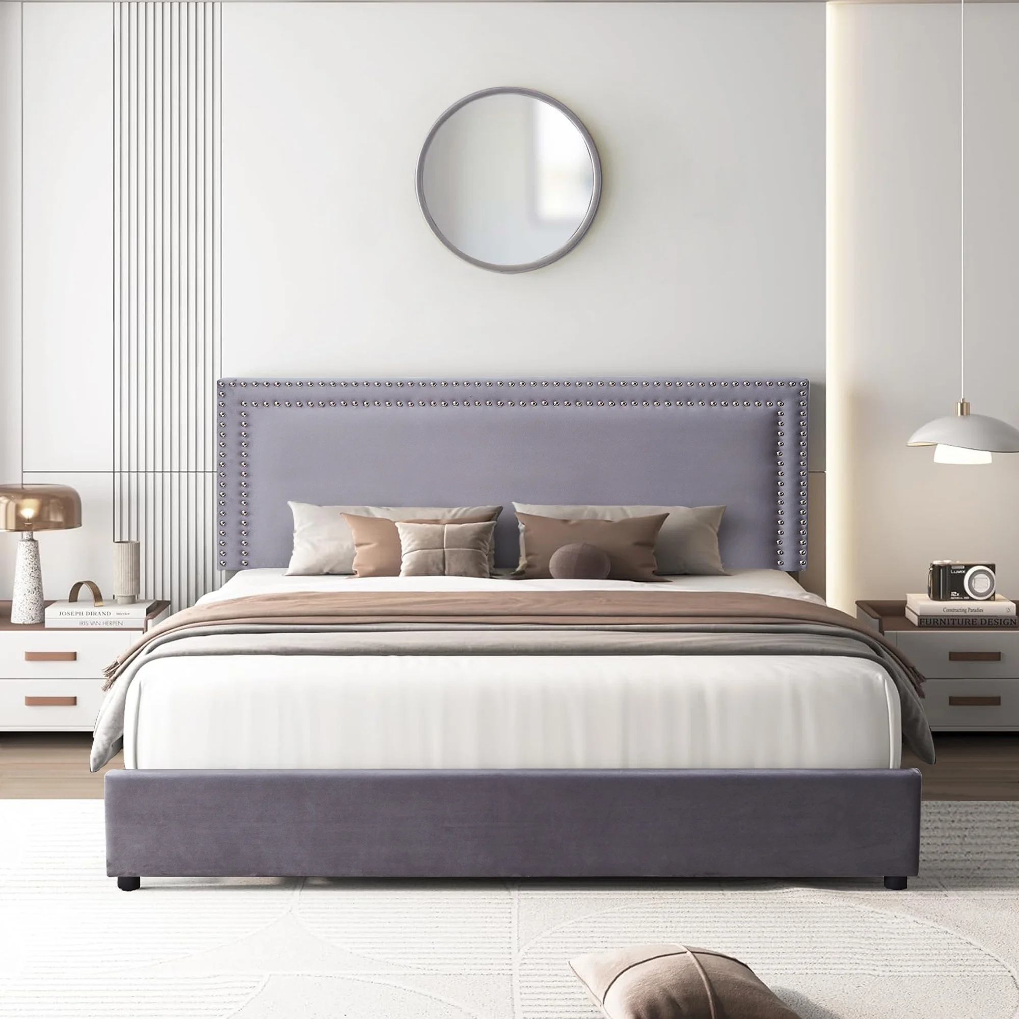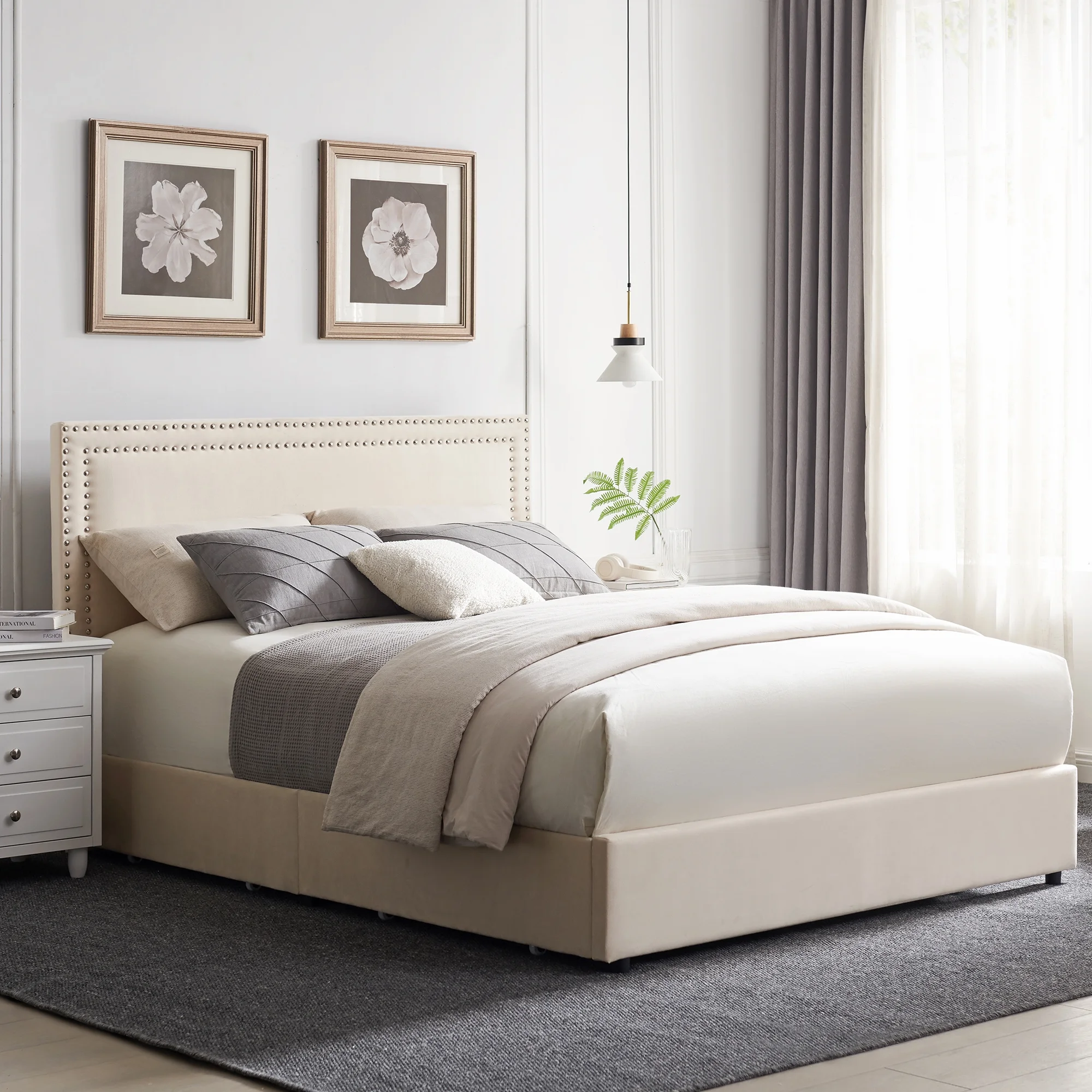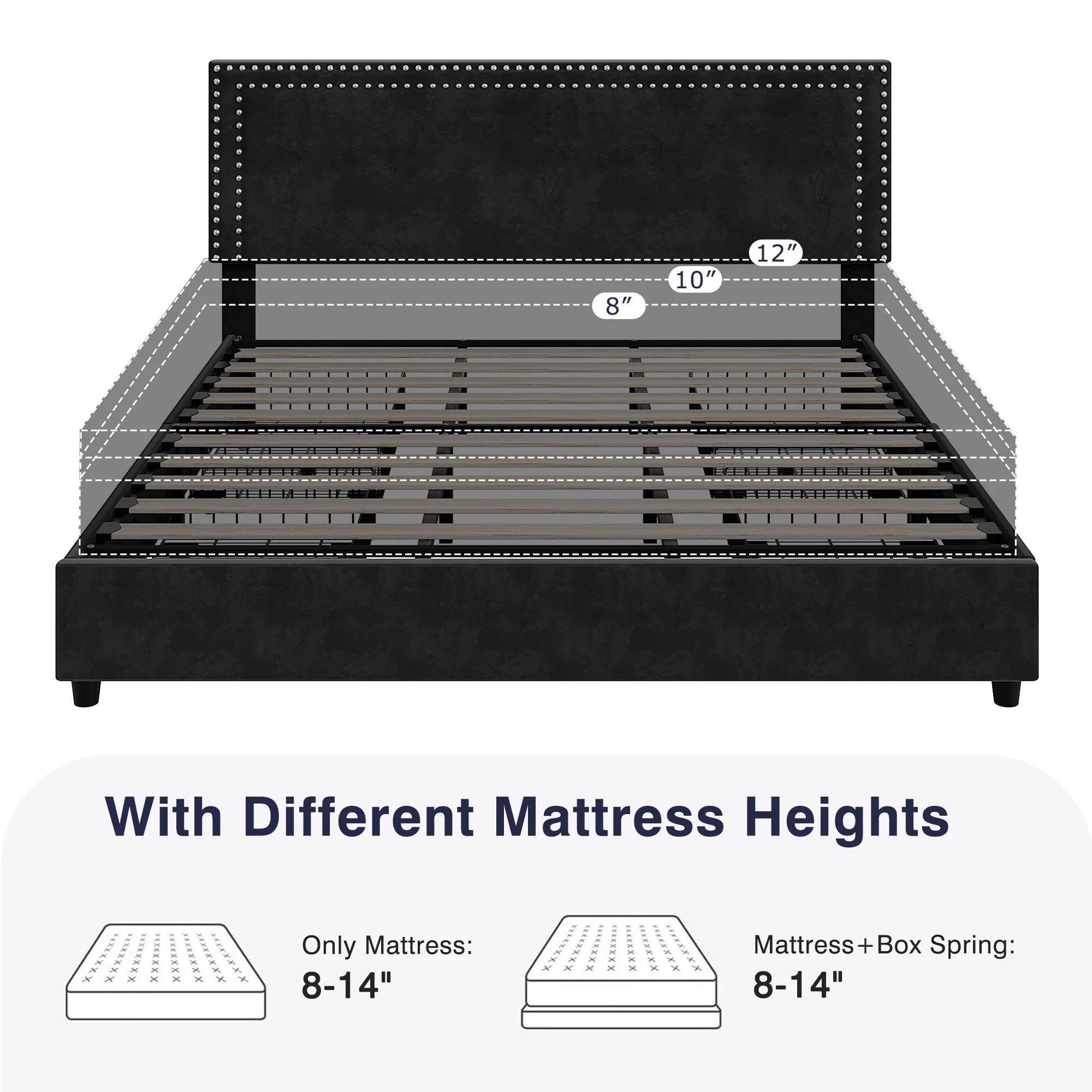 - [Stylish and Comfortable Bed Frame]: The square stitched upholstered bed is foam filled with button tufted and nailhead trim glamourizes any room. Upholstered is soft to the touch and stain resistant.