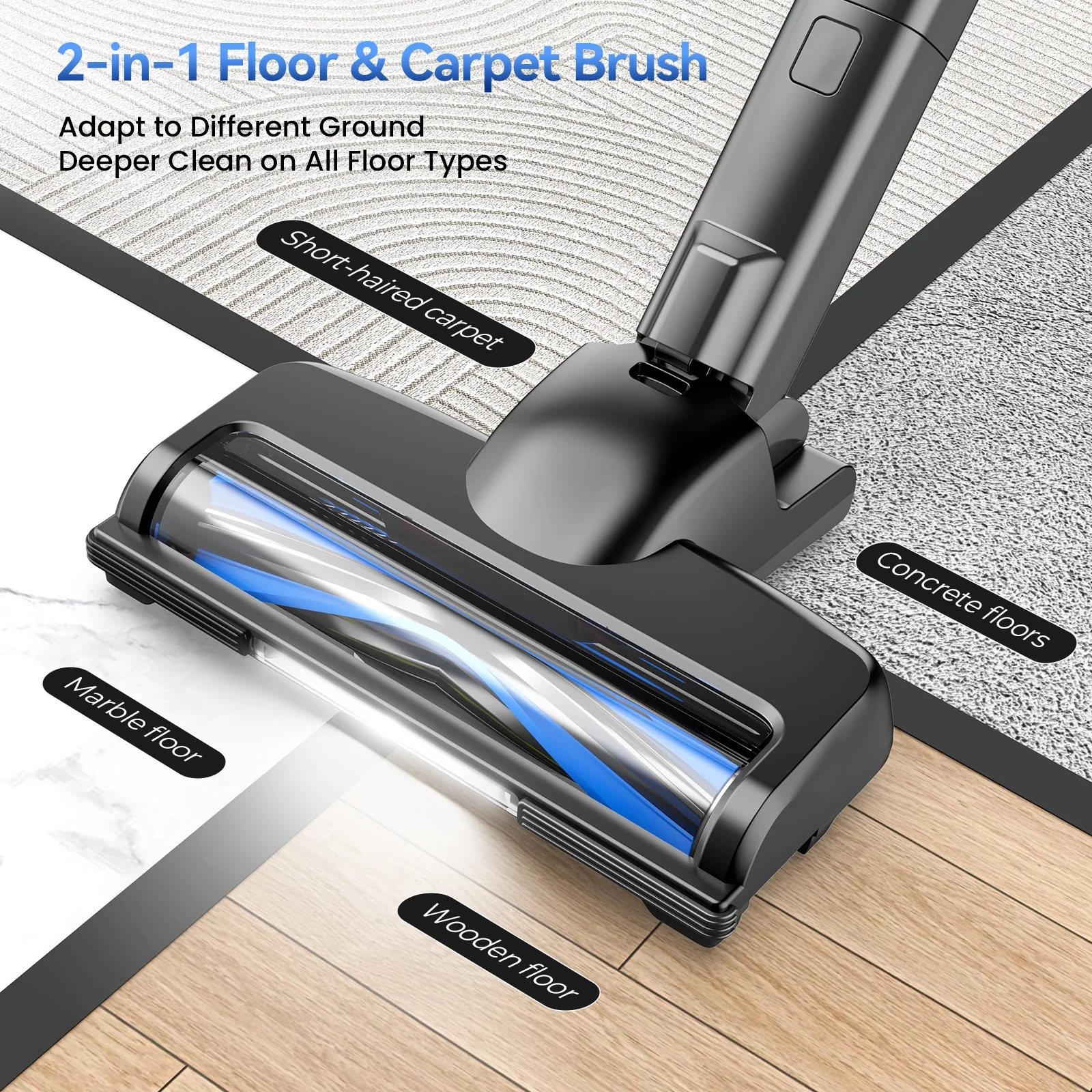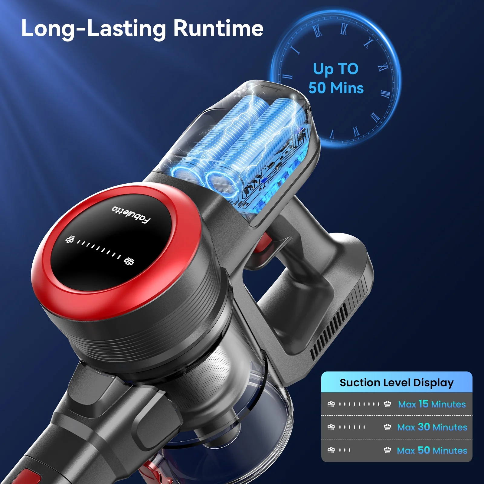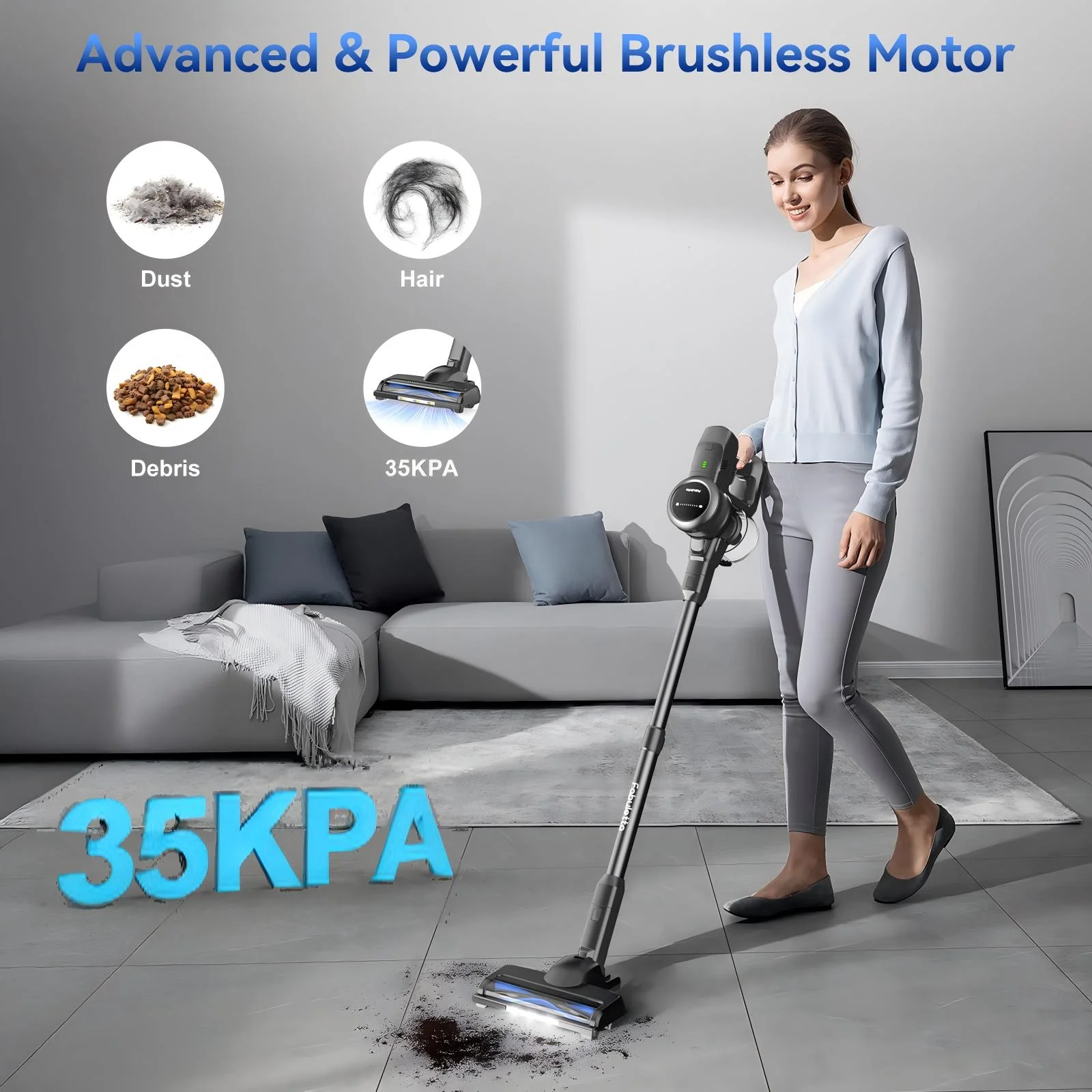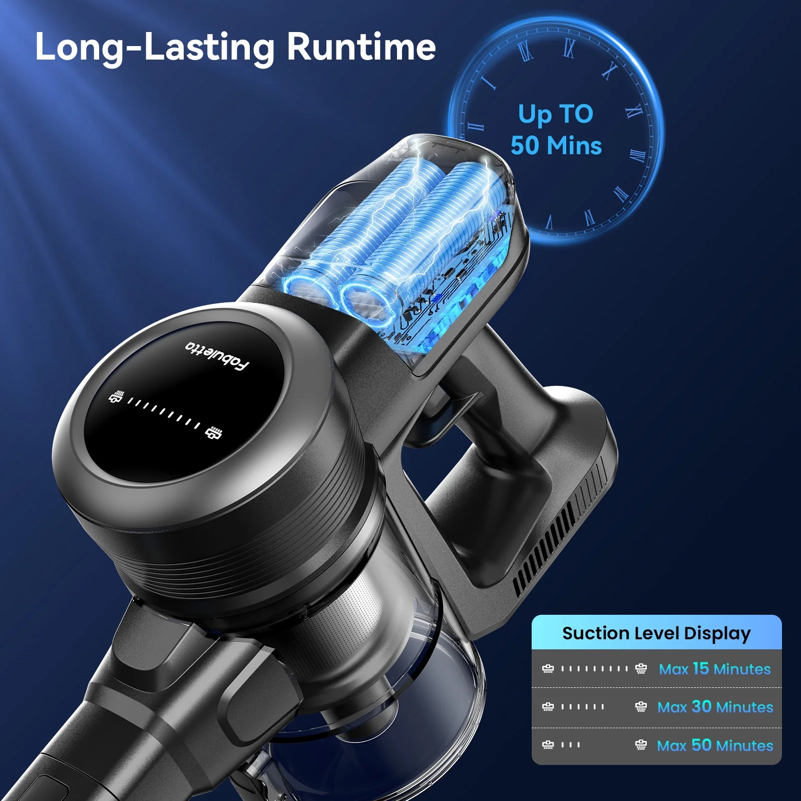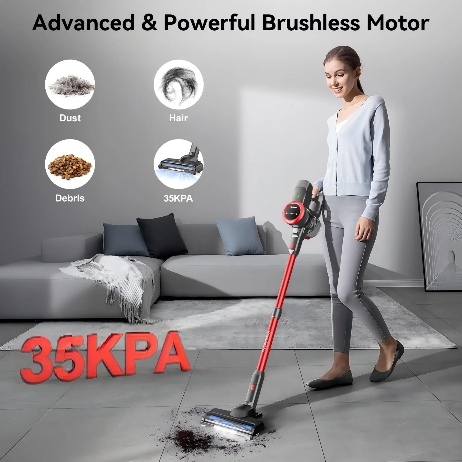 1. "Finally, a vacuum that doesn��t die mid-cleaning!" �C The 2200mAh battery ensures 50 mins of runtime (min mode), enough for 1,900 sq ft homes. Turbo mode (35KPa) blasts through deep-set dirt in 15 mins.