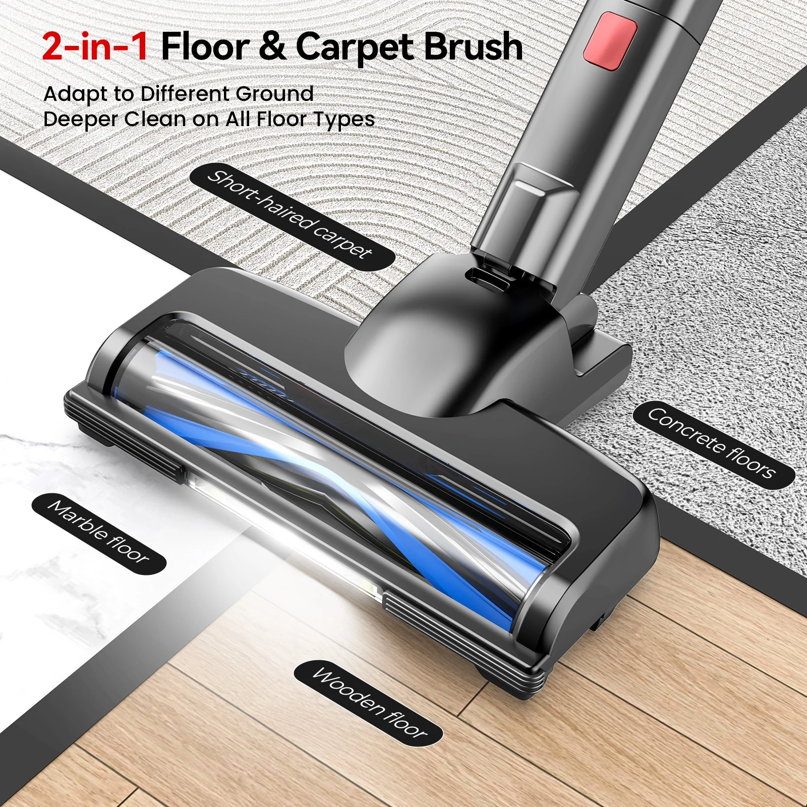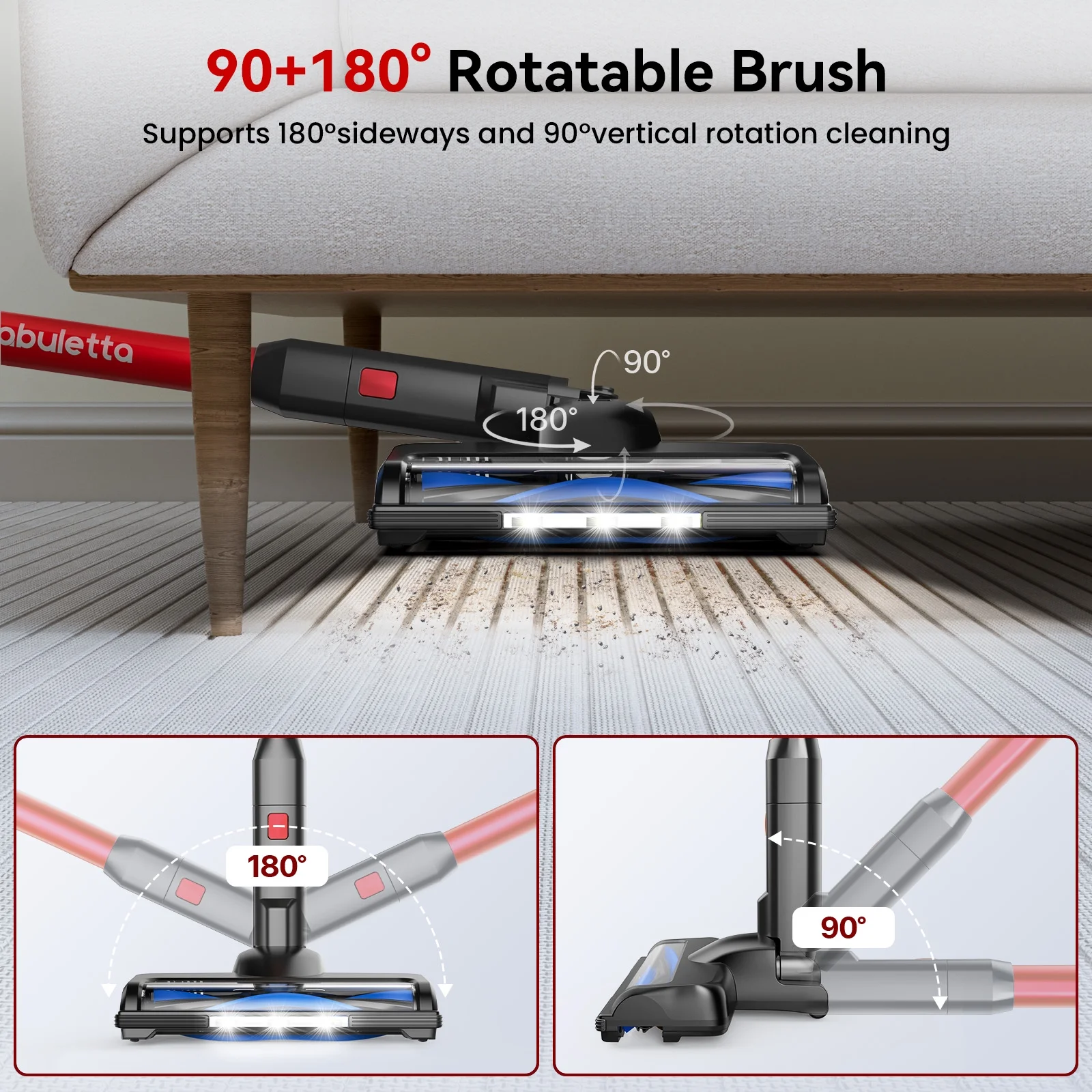 - ?�� Multi-Surface Cleaning ���C Includes 6 tools (motorized brush, crevice tool, etc.) for stairs, curtains, windowsills, sofas, beds, cars, RVs. LED headlights reveal hidden dirt under couches/beds. The flexible 180��+90�� rotatable brush head is great for getting into all those hard-to-reach corners under furniture and beds to get rid of all that dust!