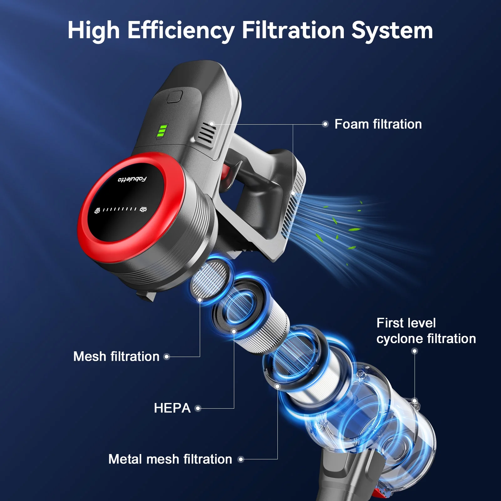 - ?�� Smart LED Display & Alerts�� �C Real-time updates on battery life, suction mode, and real-time alerts for a full dust cup or HEPA cleaning indication. This convenient feature helps you maintain efficiently and optimize cleaning time.