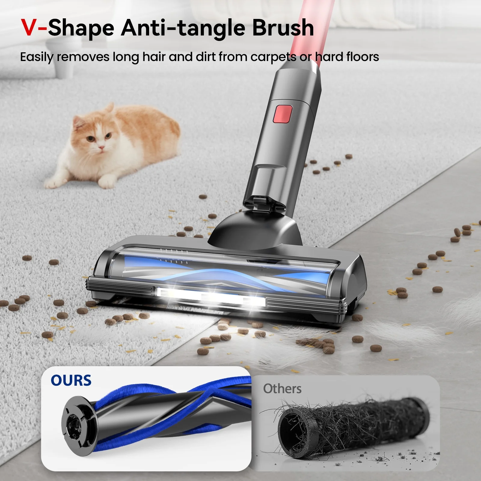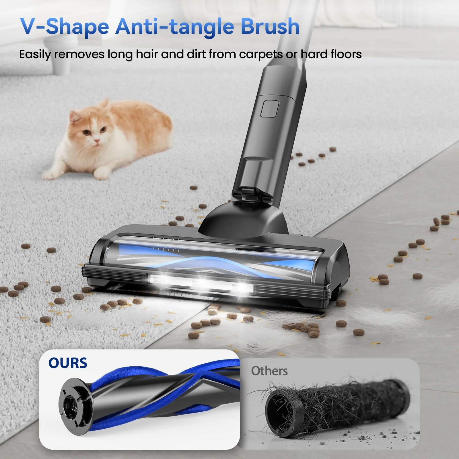 - ?�� Perfect for Pet Owners ���C V shape Tangle-free brush roll and specialized attachments (soft brush, crevice tool) effortlessly remove pet hair from furniture, cars, and carpets��no more clogs or frustration!