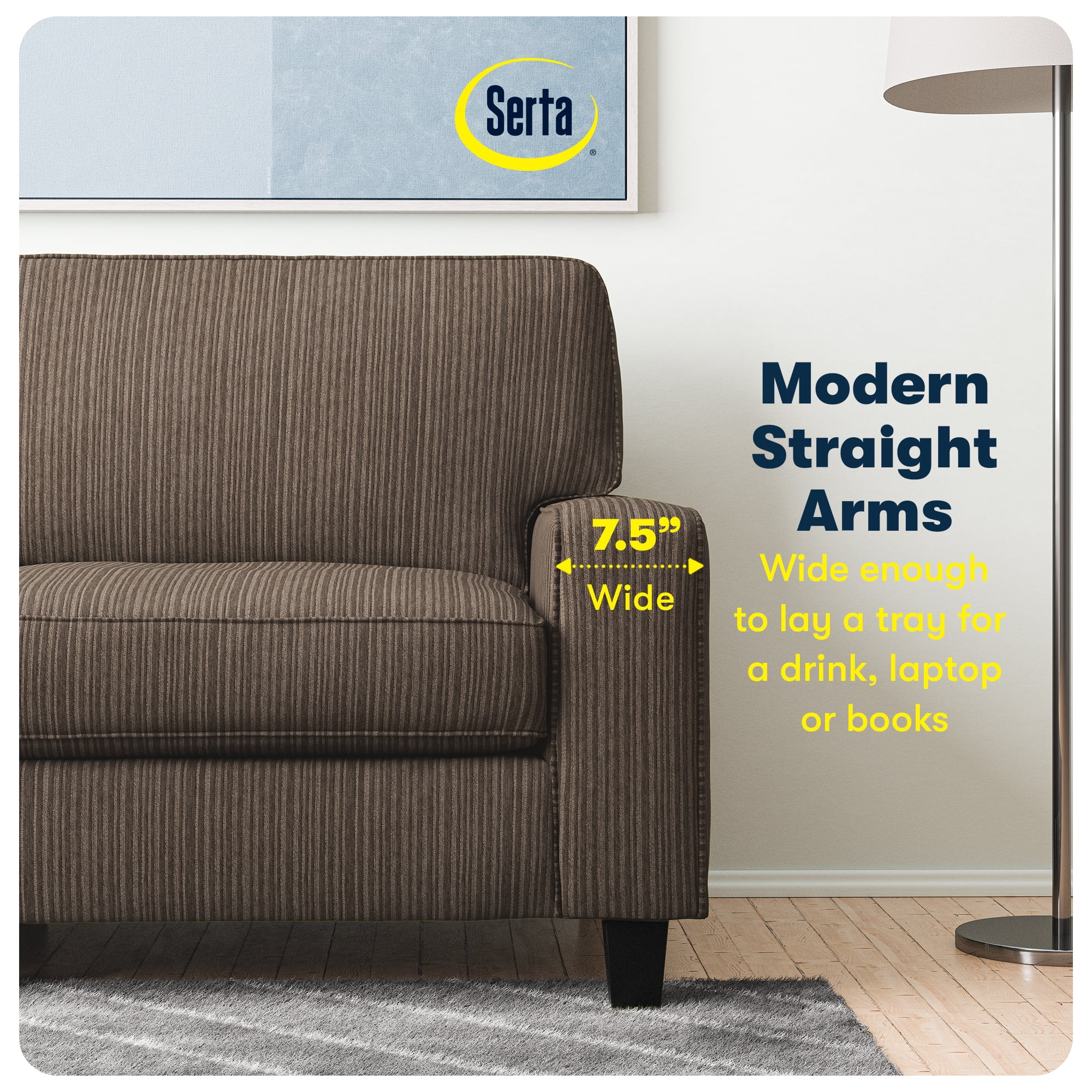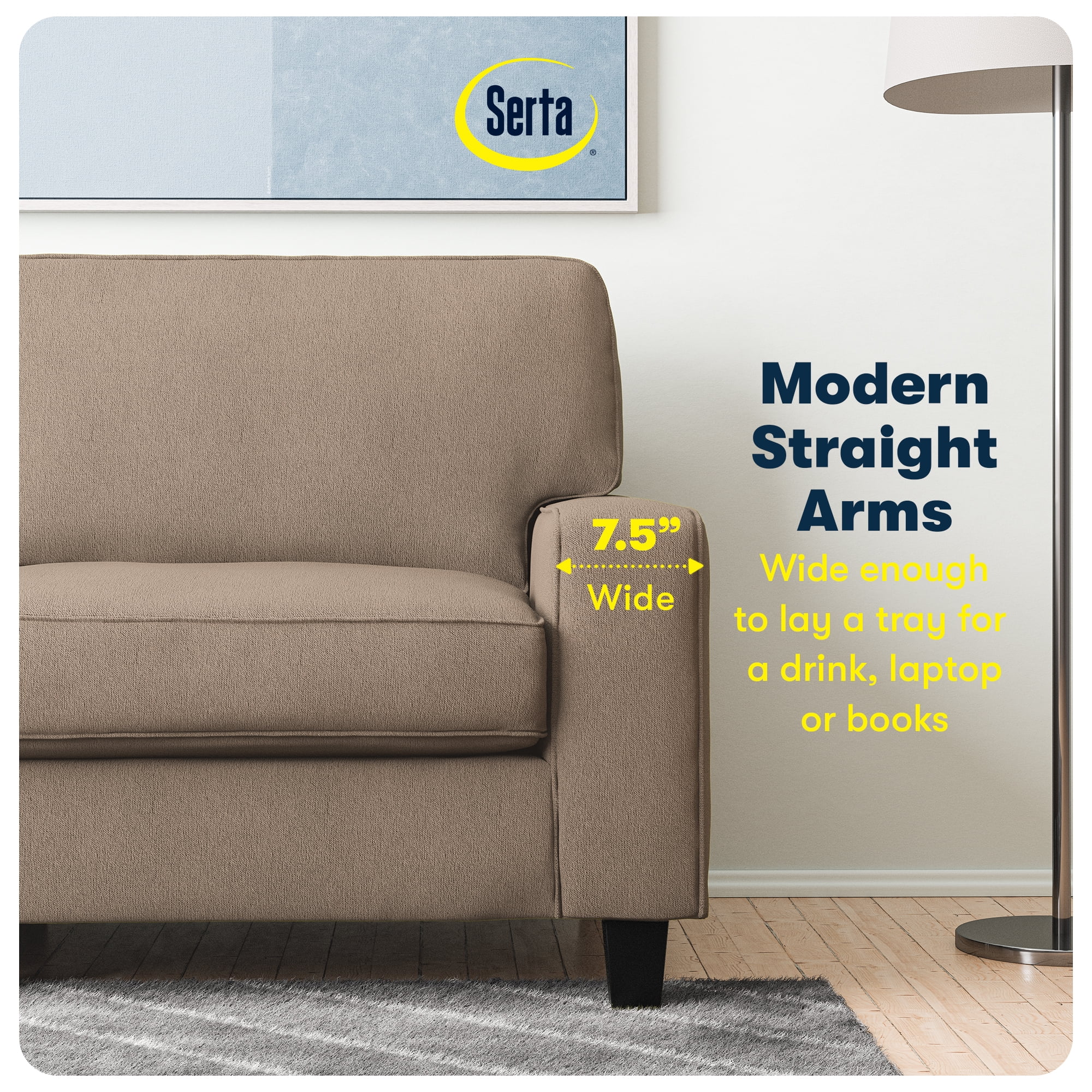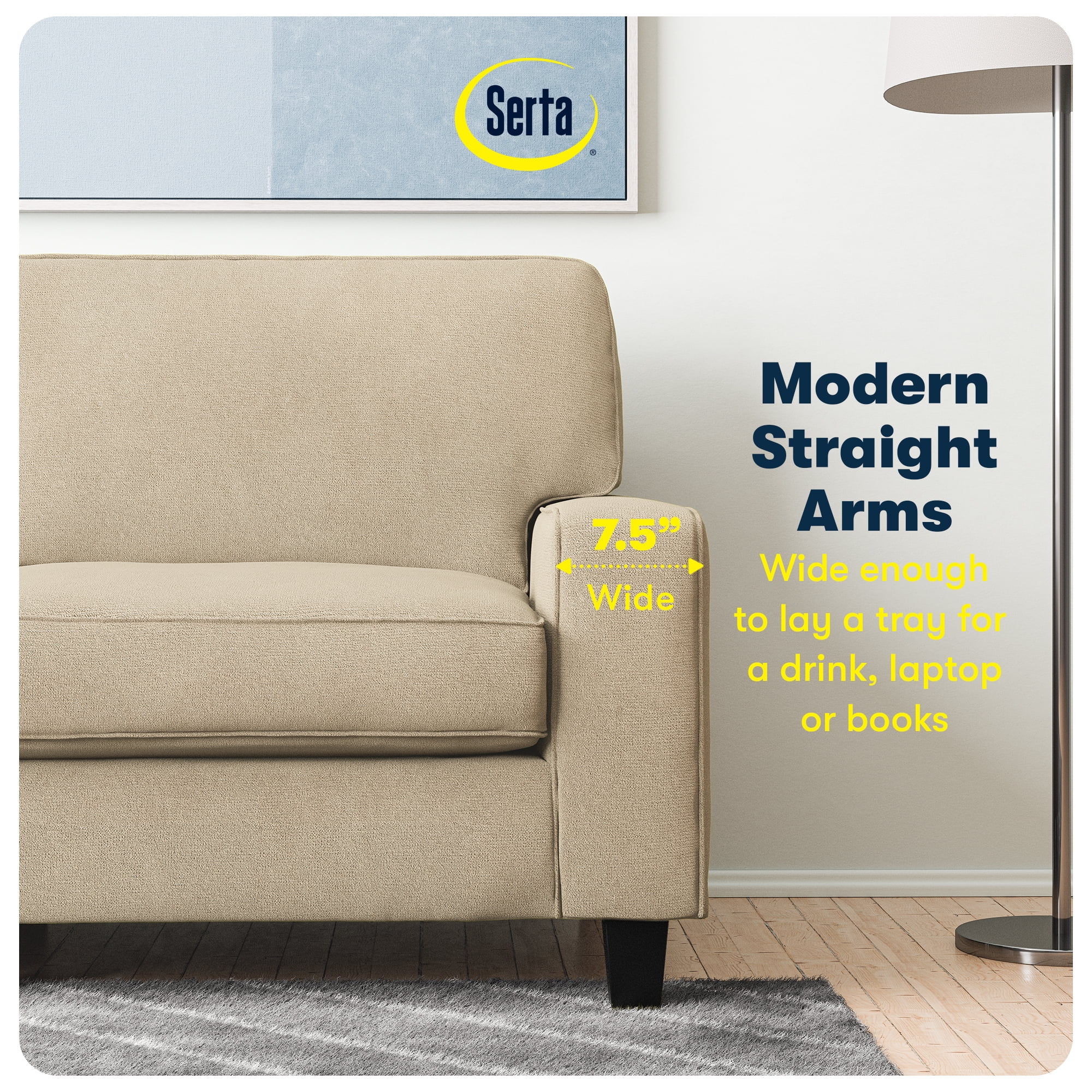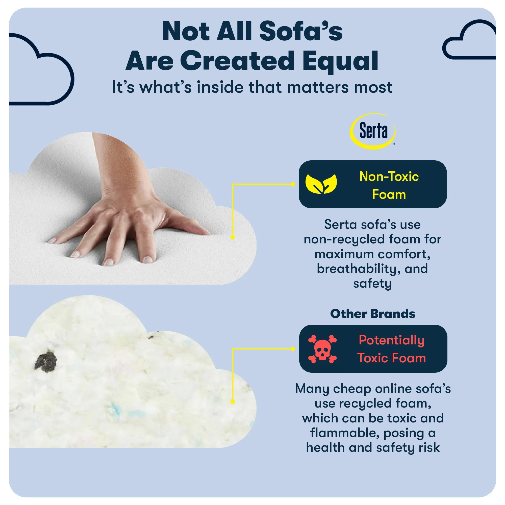 - SERTA FOAM & BUILD: Made of a solid wood frame fitted with sinuous springs for extra support and sturdy solid wood legs that can handle up to 450 lbs. All Serta sofas use quality, non-recycled foam for breathability and safety.