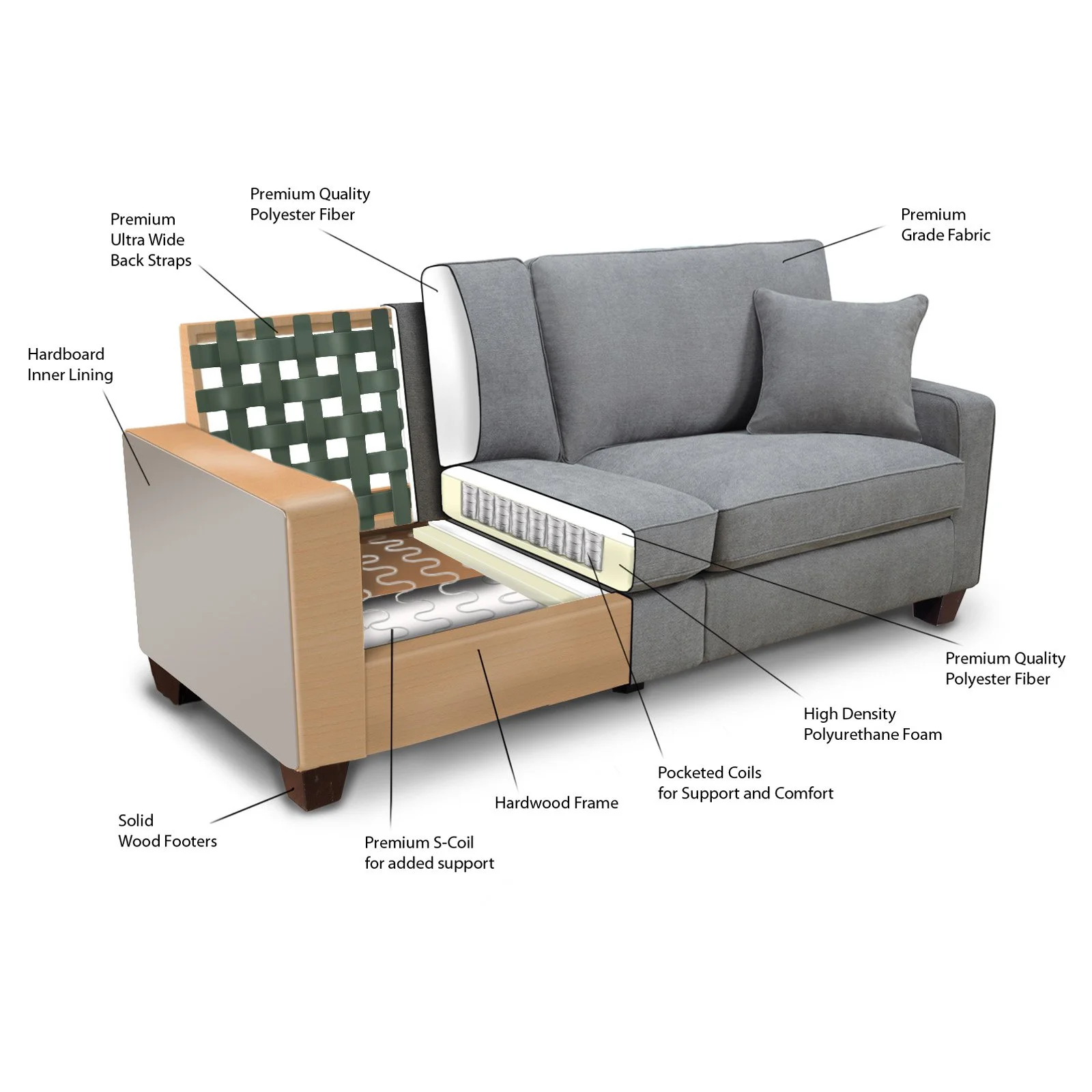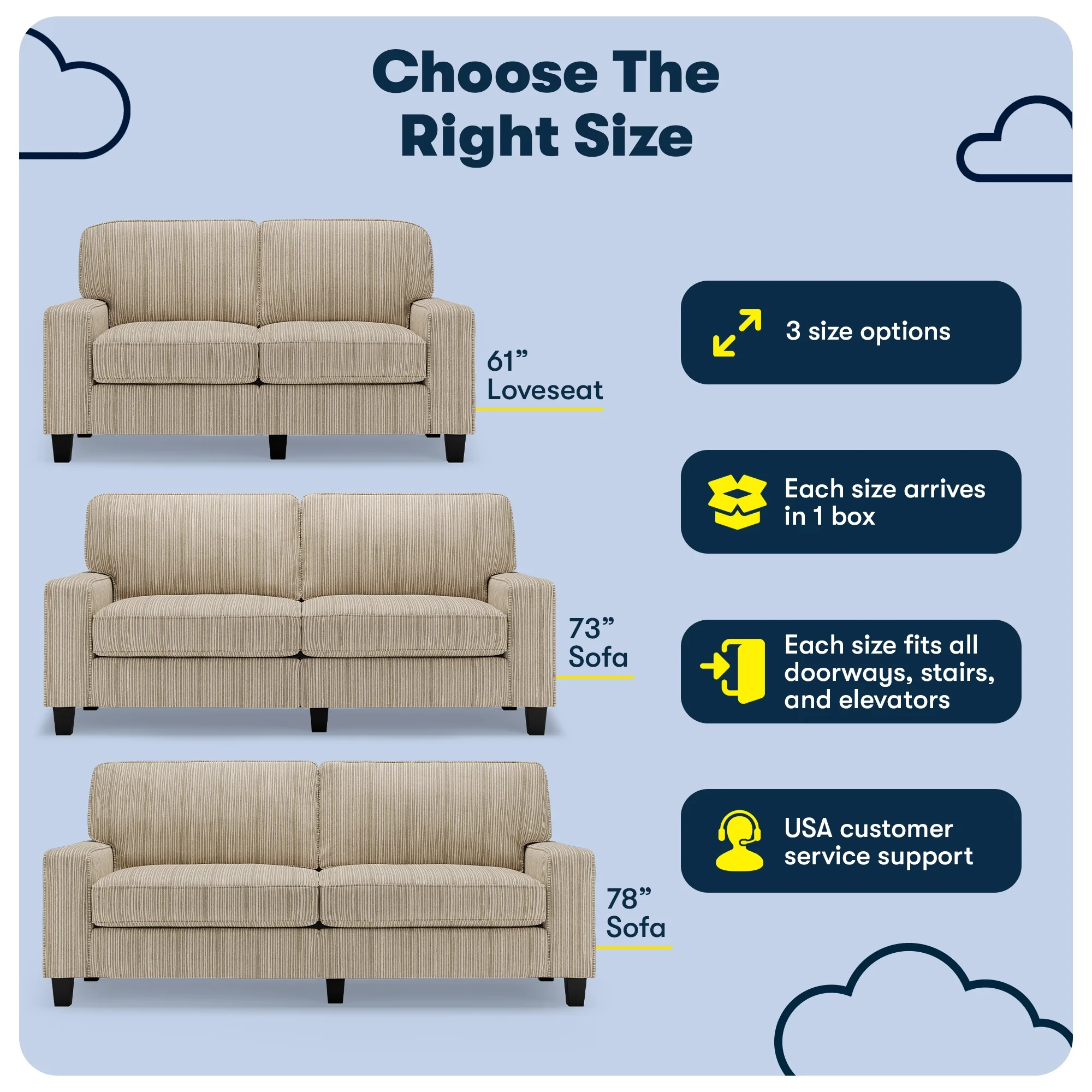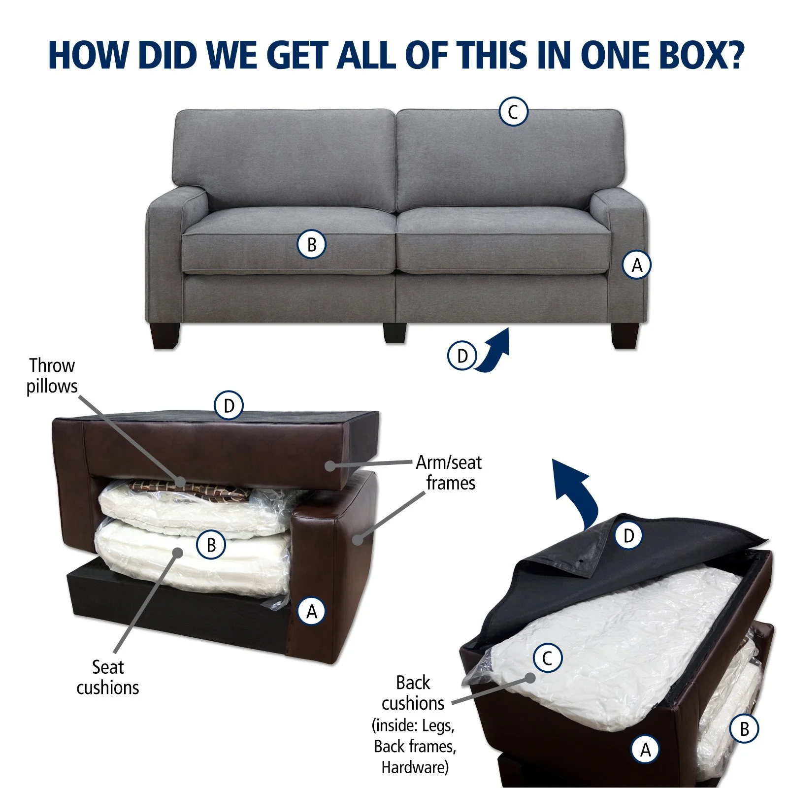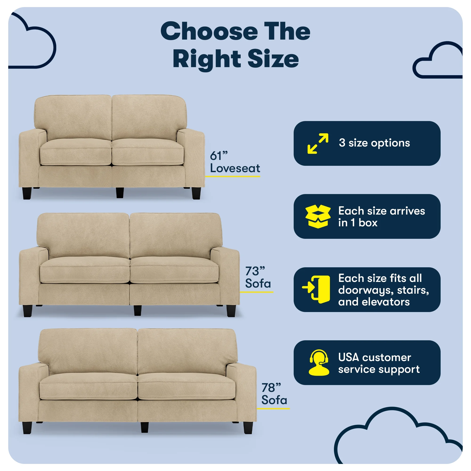 - SERTA FOAM & BUILD: Made of a solid wood frame fitted with sinuous springs for extra support and sturdy solid wood legs that can handle up to 450 lbs. All Serta sofas use quality, non-recycled foam for breathability and safety.