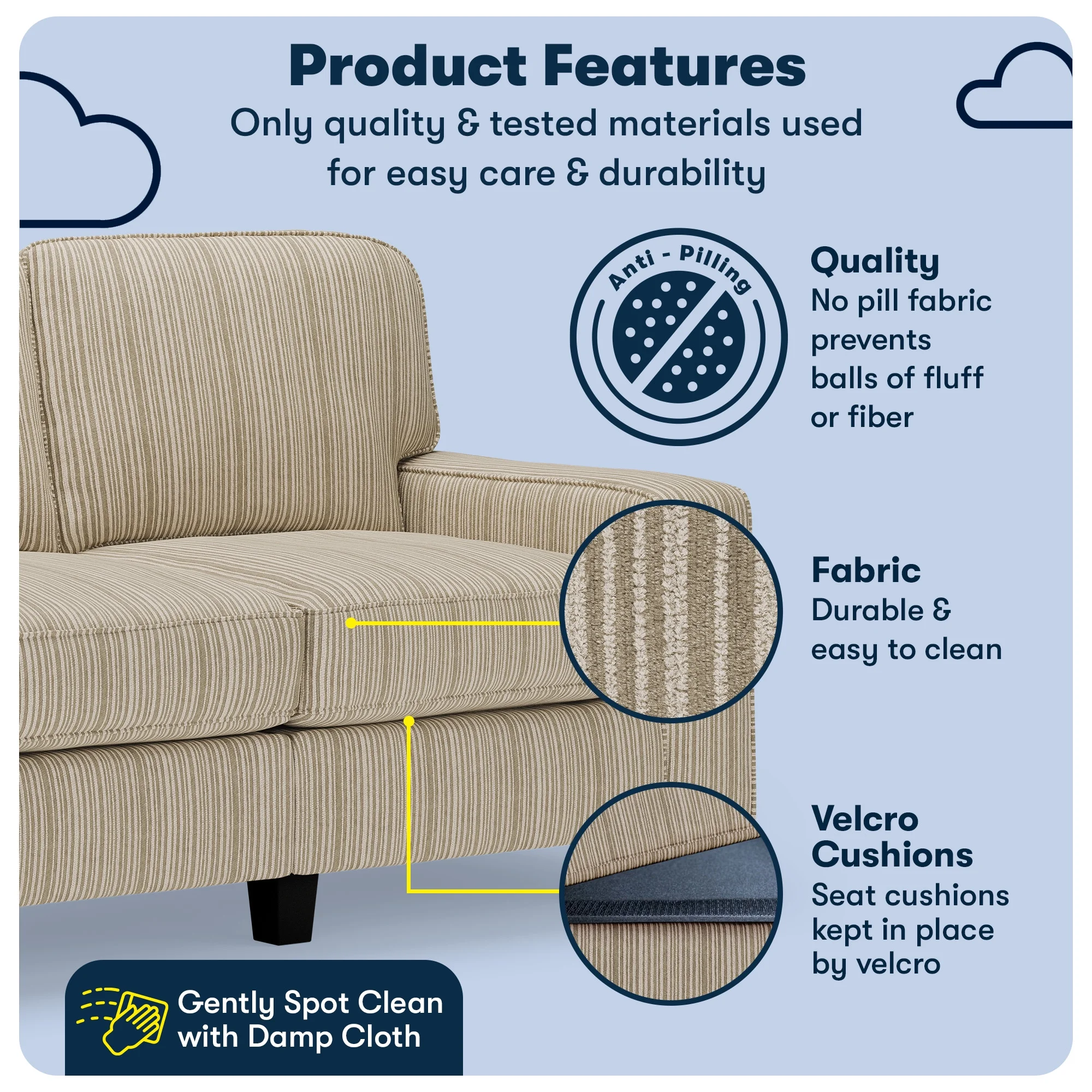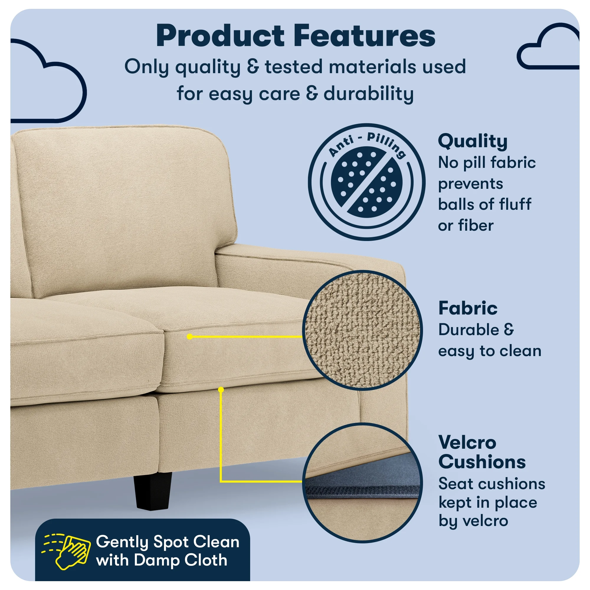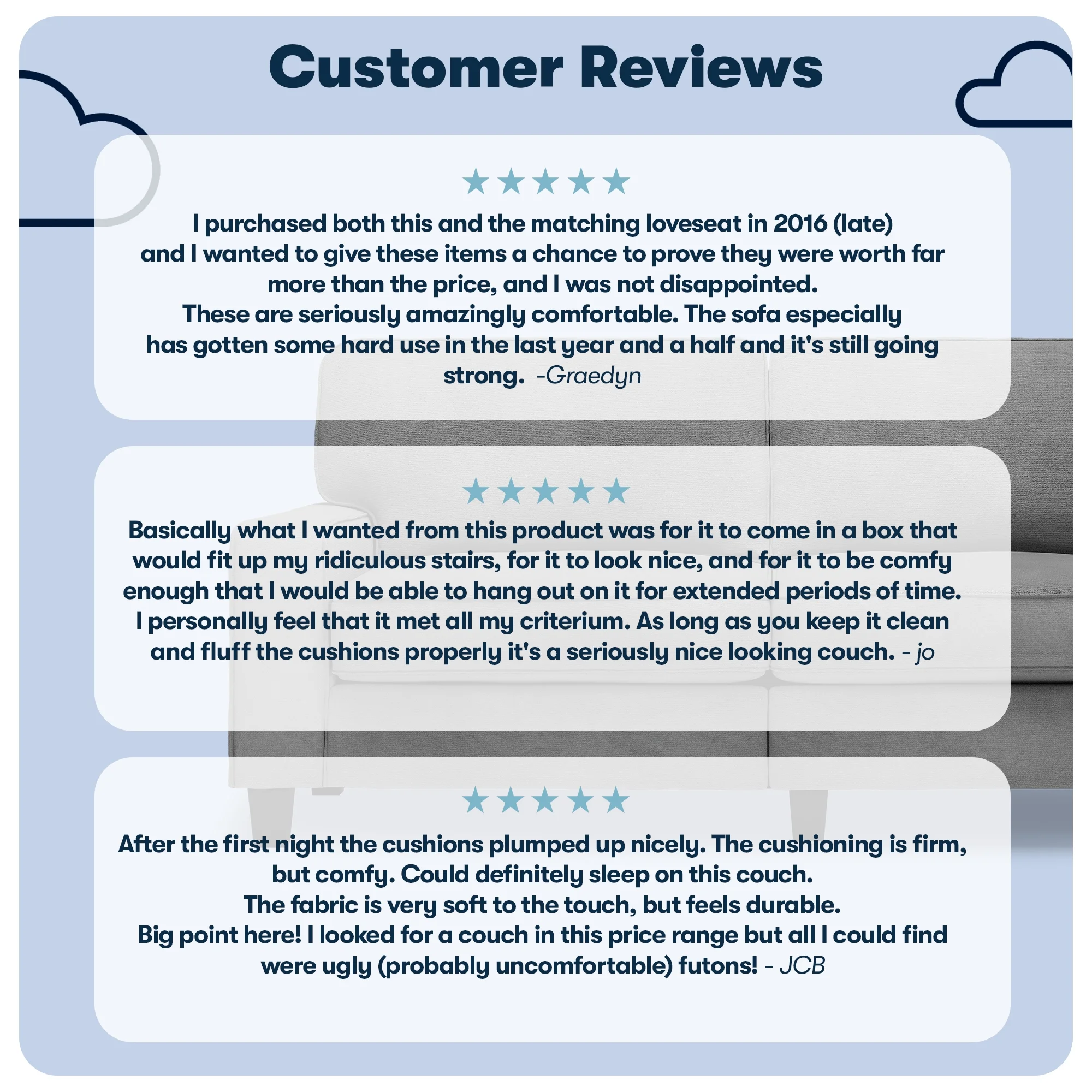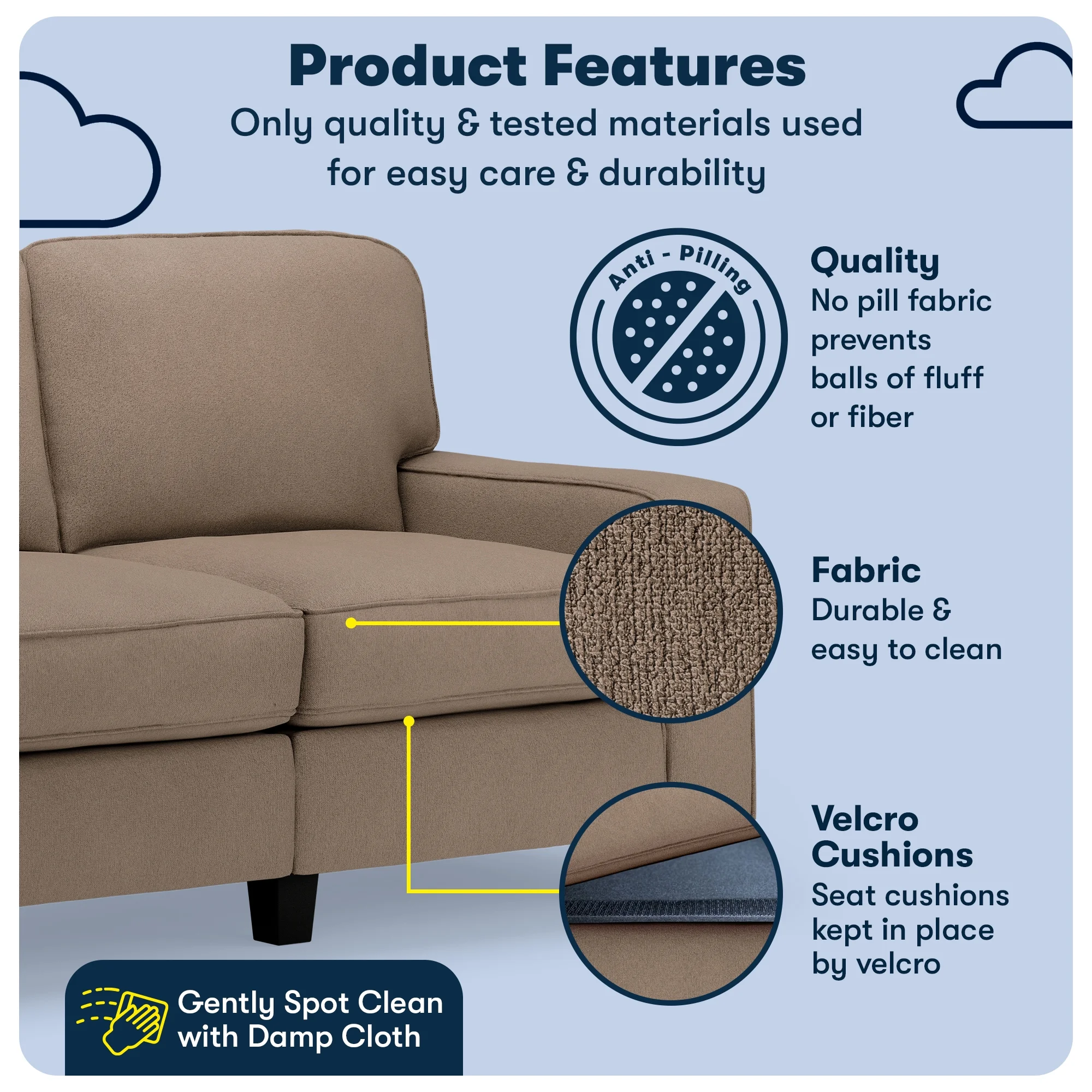 - SERTA FOAM & BUILD: Made of a solid wood frame fitted with sinuous springs for extra support and sturdy solid wood legs that can handle up to 450 lbs. All Serta sofas use quality, non-recycled foam for breathability and safety.
