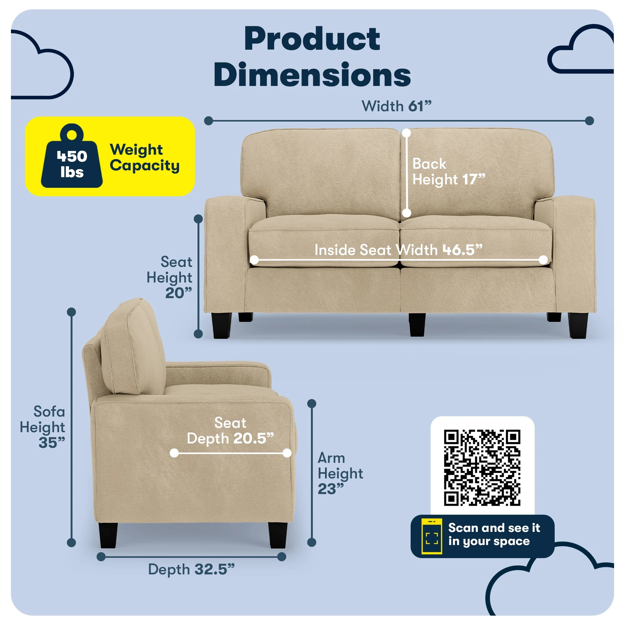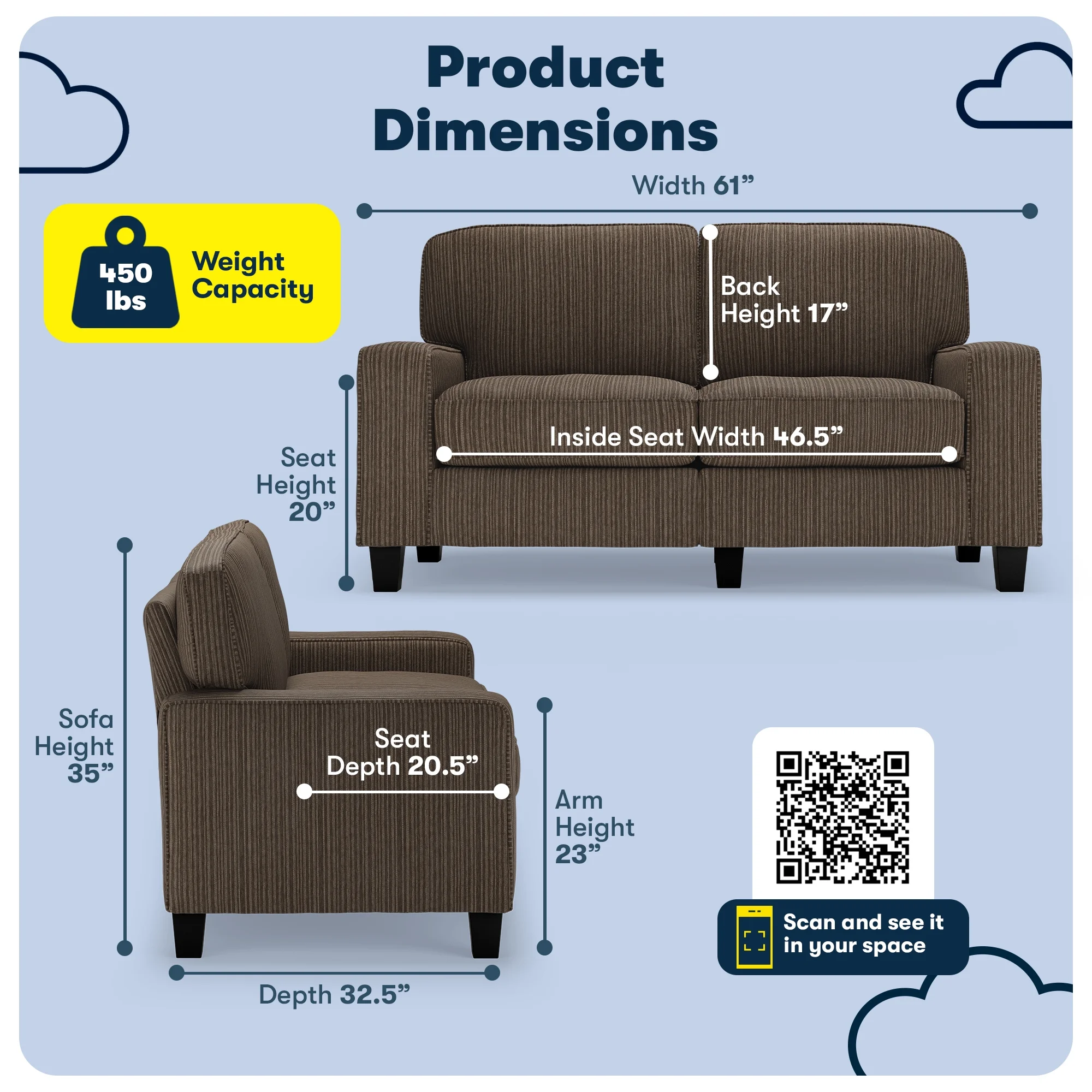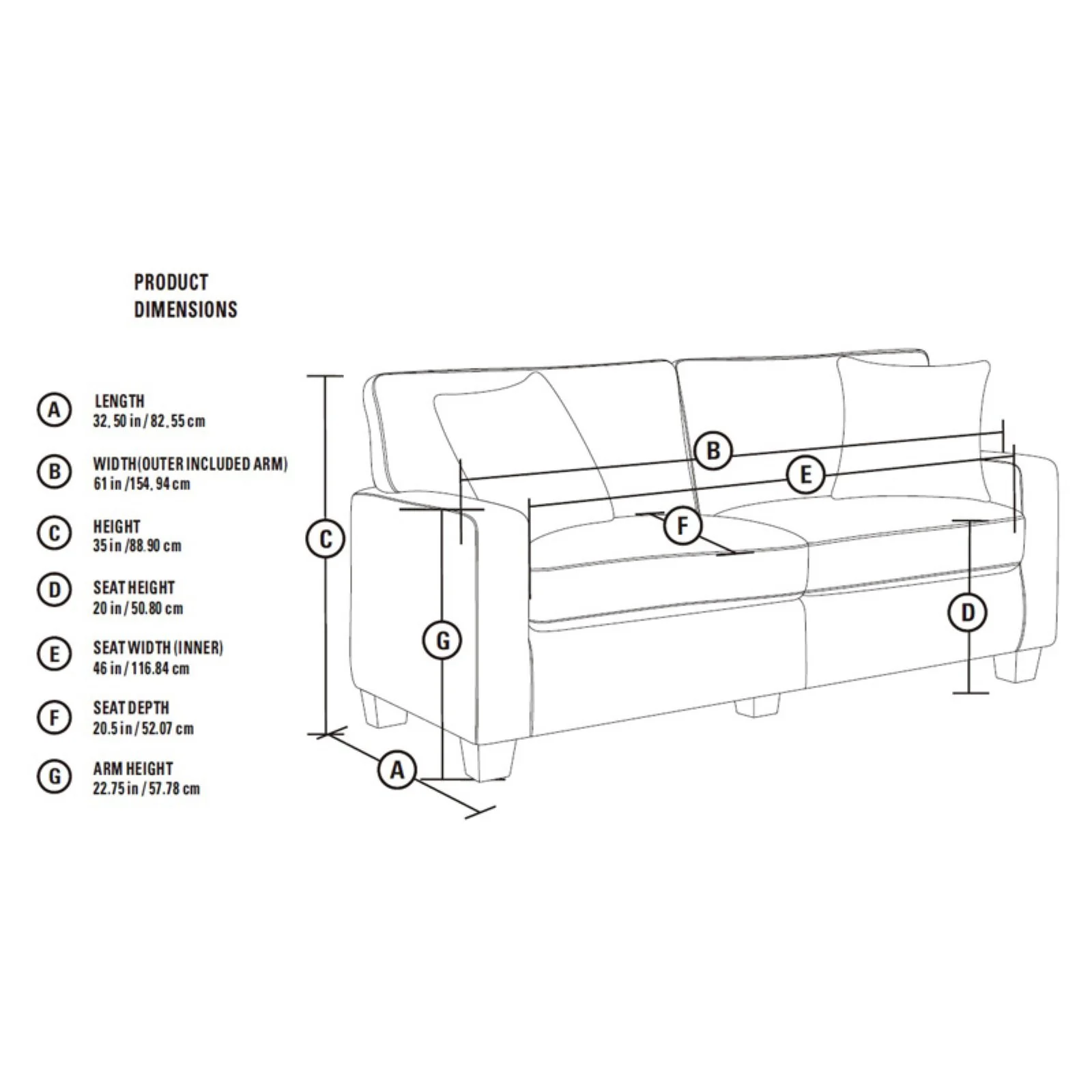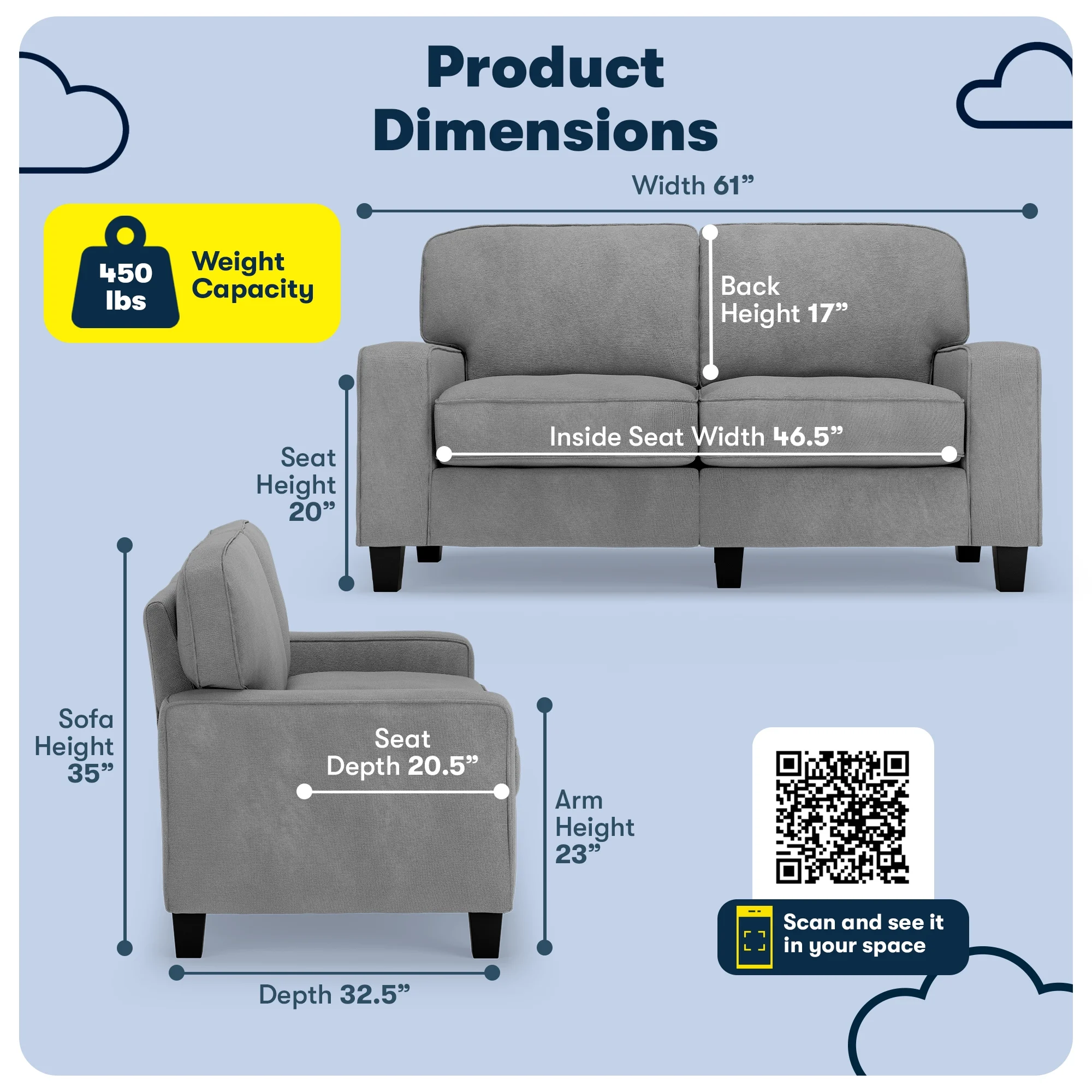 - SPACE-SAVING DESIGN: Its compact size and low-profile (61" wide x 33" deep x 36" high) make this two-seater couch a great choice for smaller apartments or lofts, living rooms, or home offices.