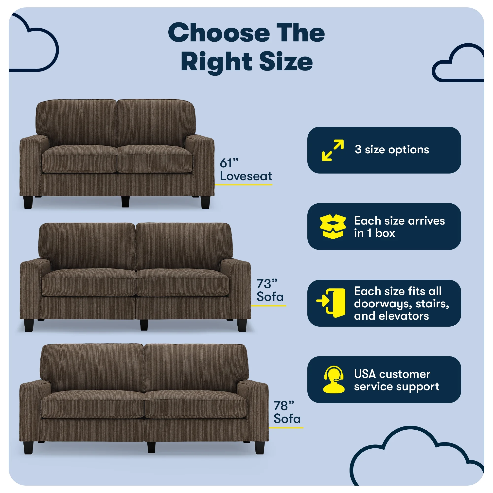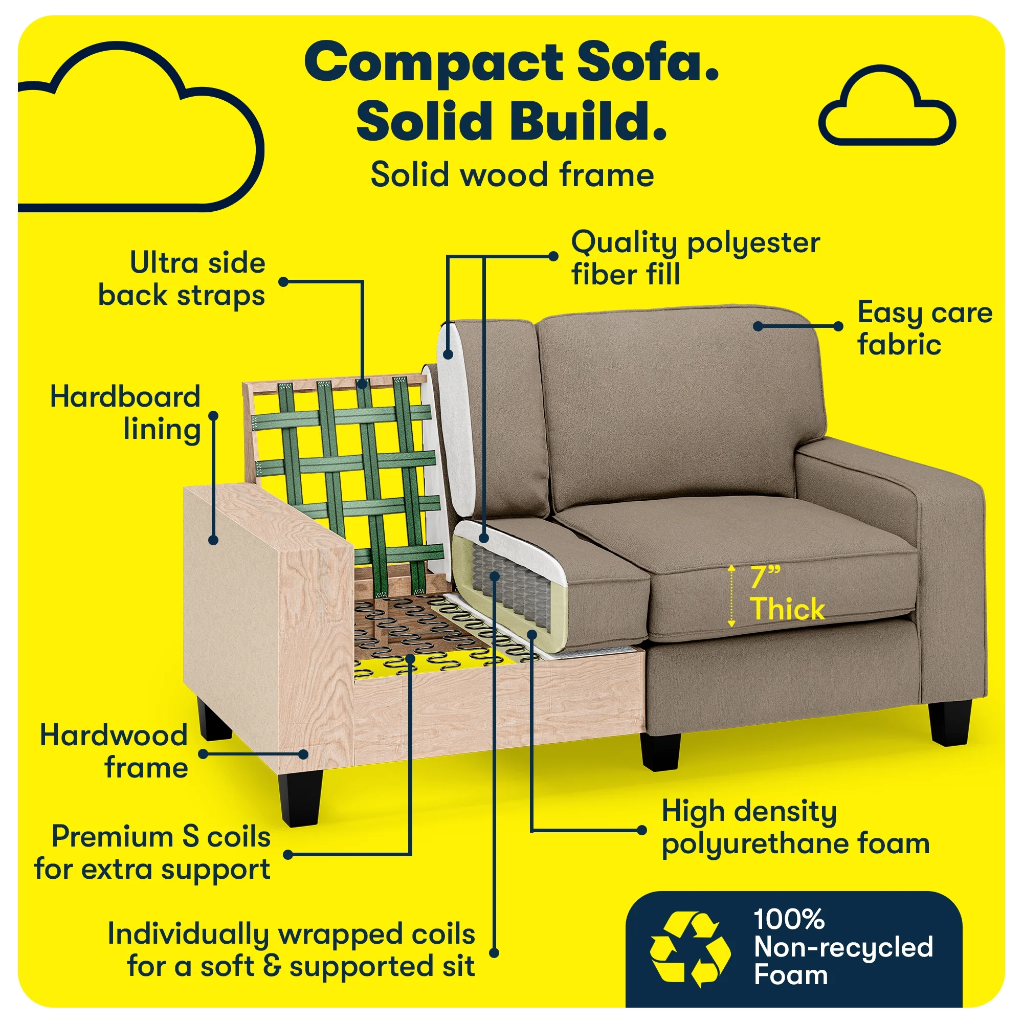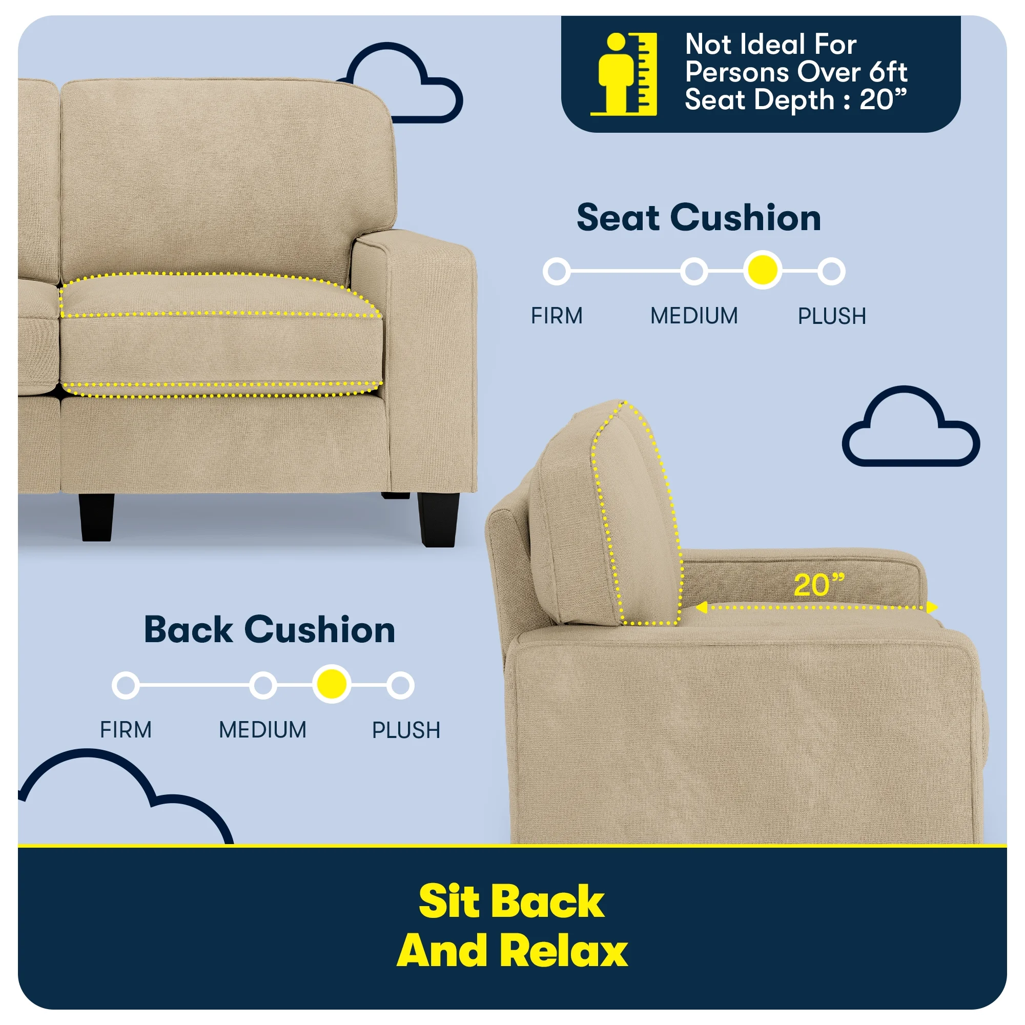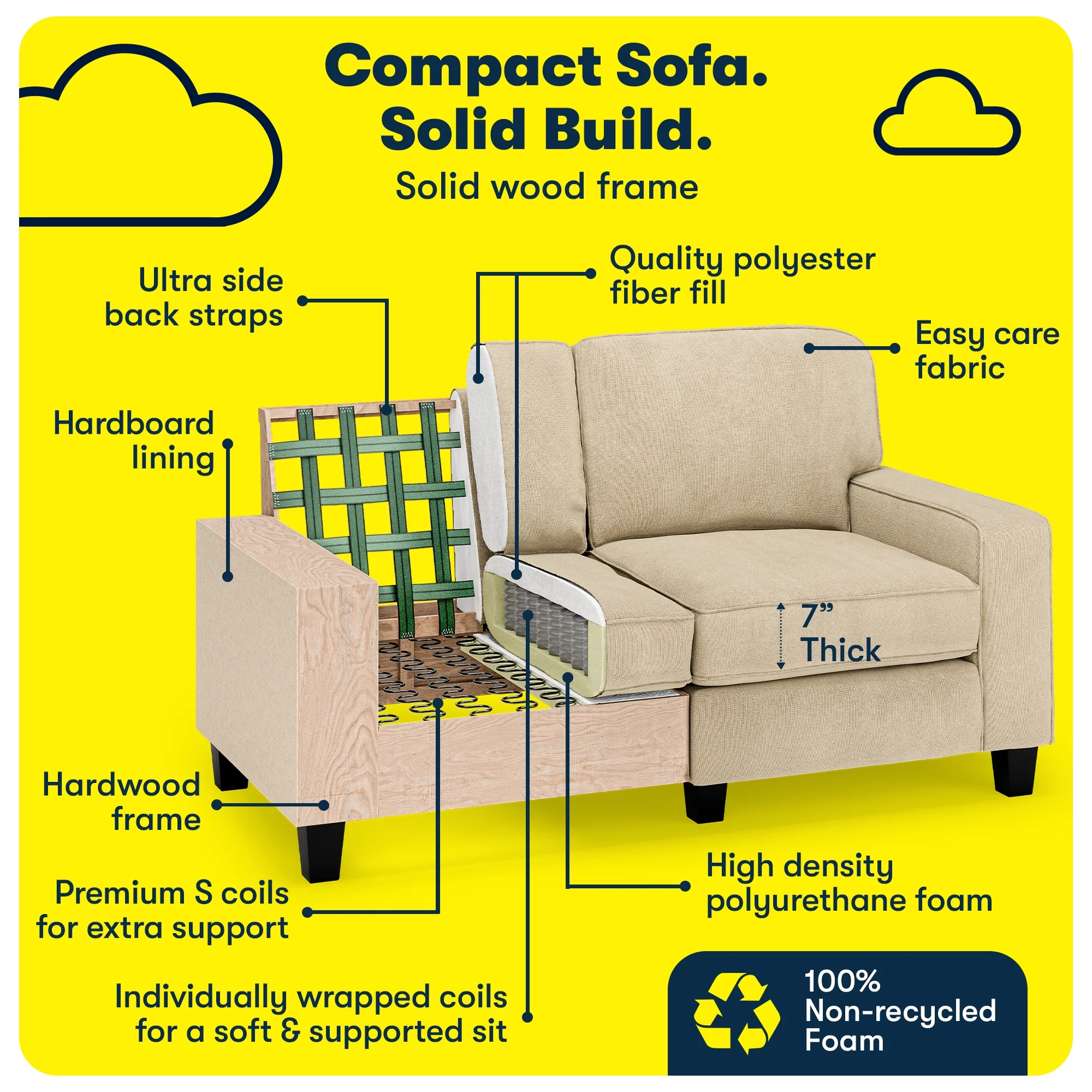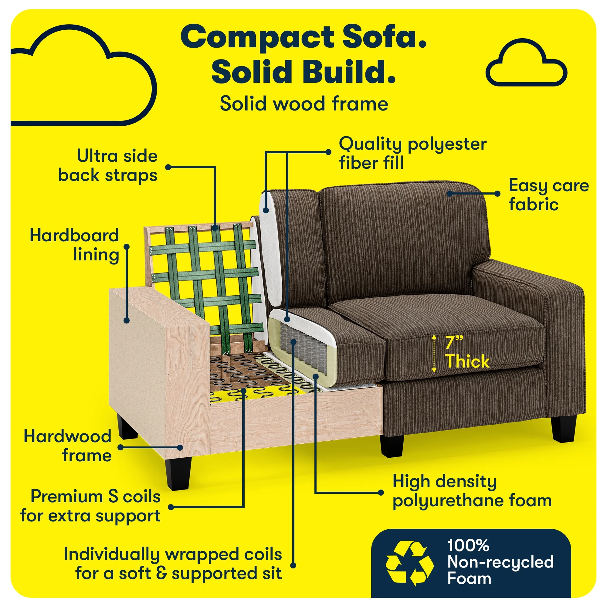 - SPACE-SAVING DESIGN: Its compact size and low-profile (61" wide x 33" deep x 36" high) make this two-seater couch a great choice for smaller apartments or lofts, living rooms, or home offices.
