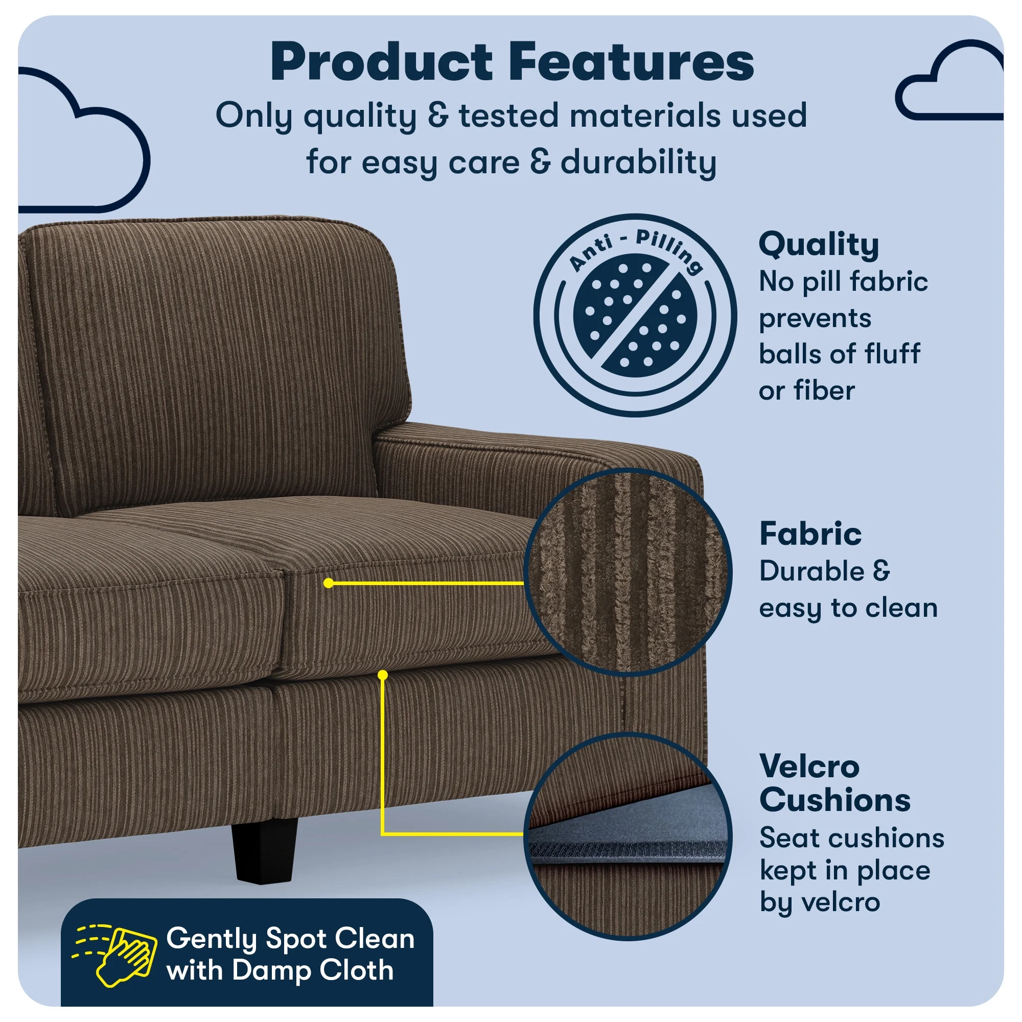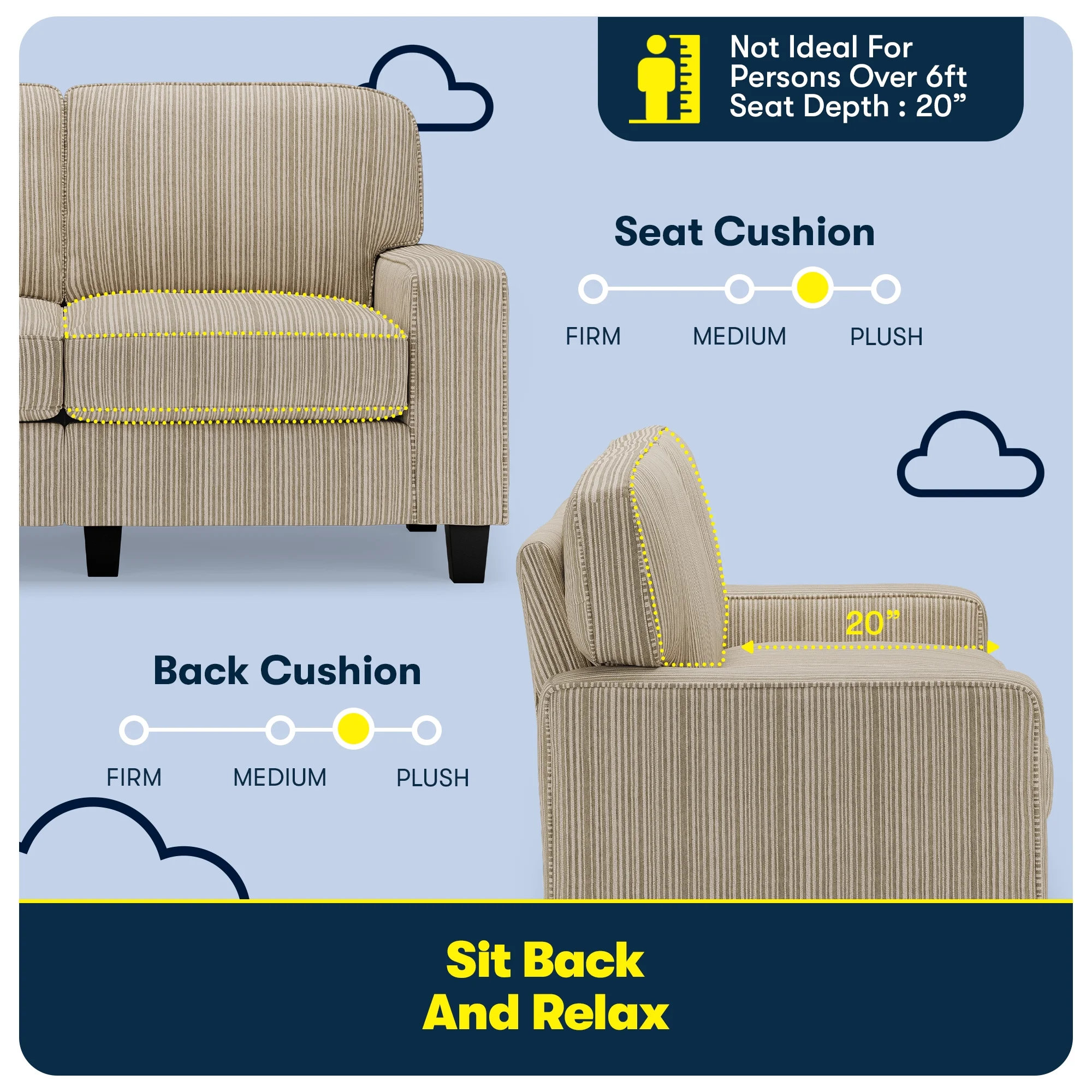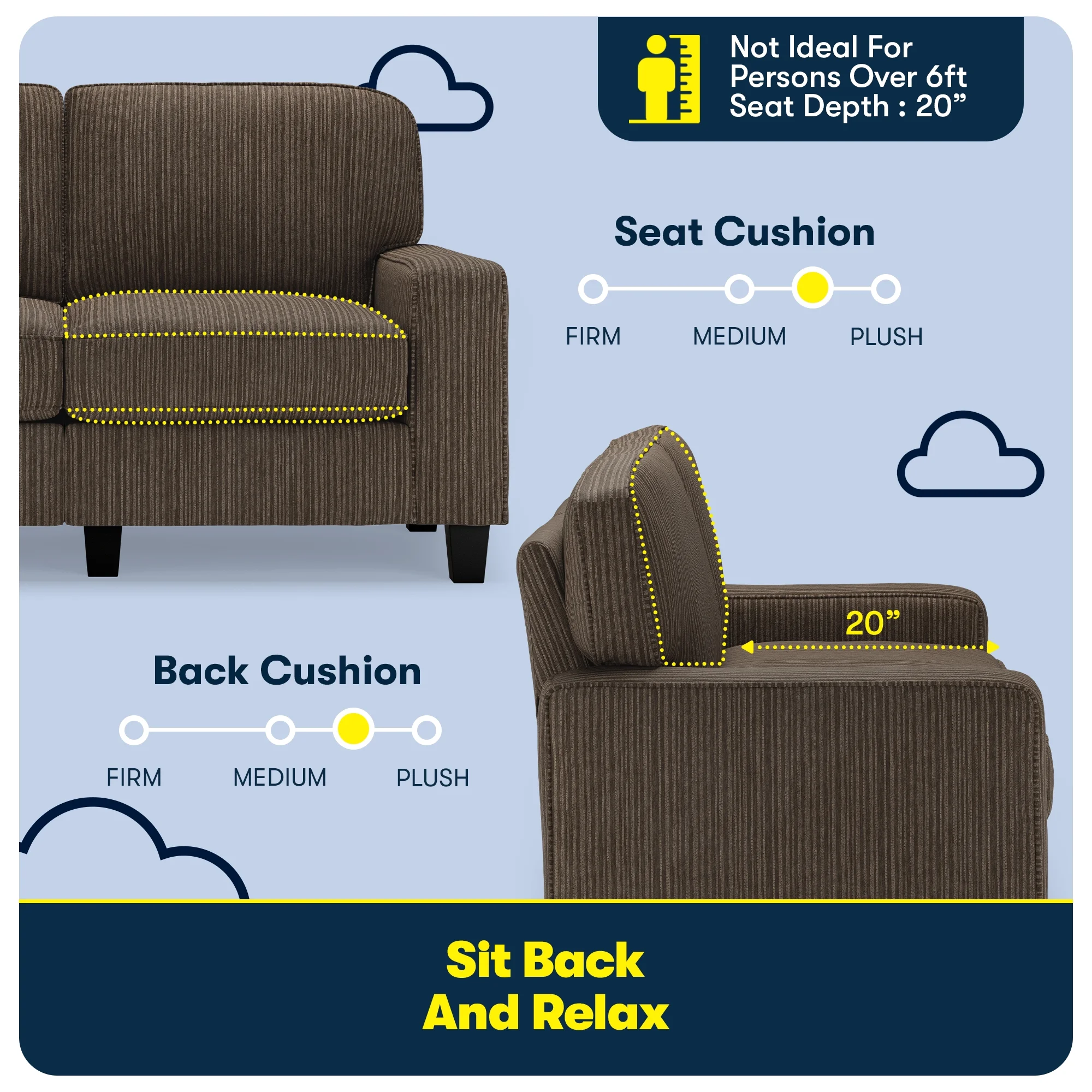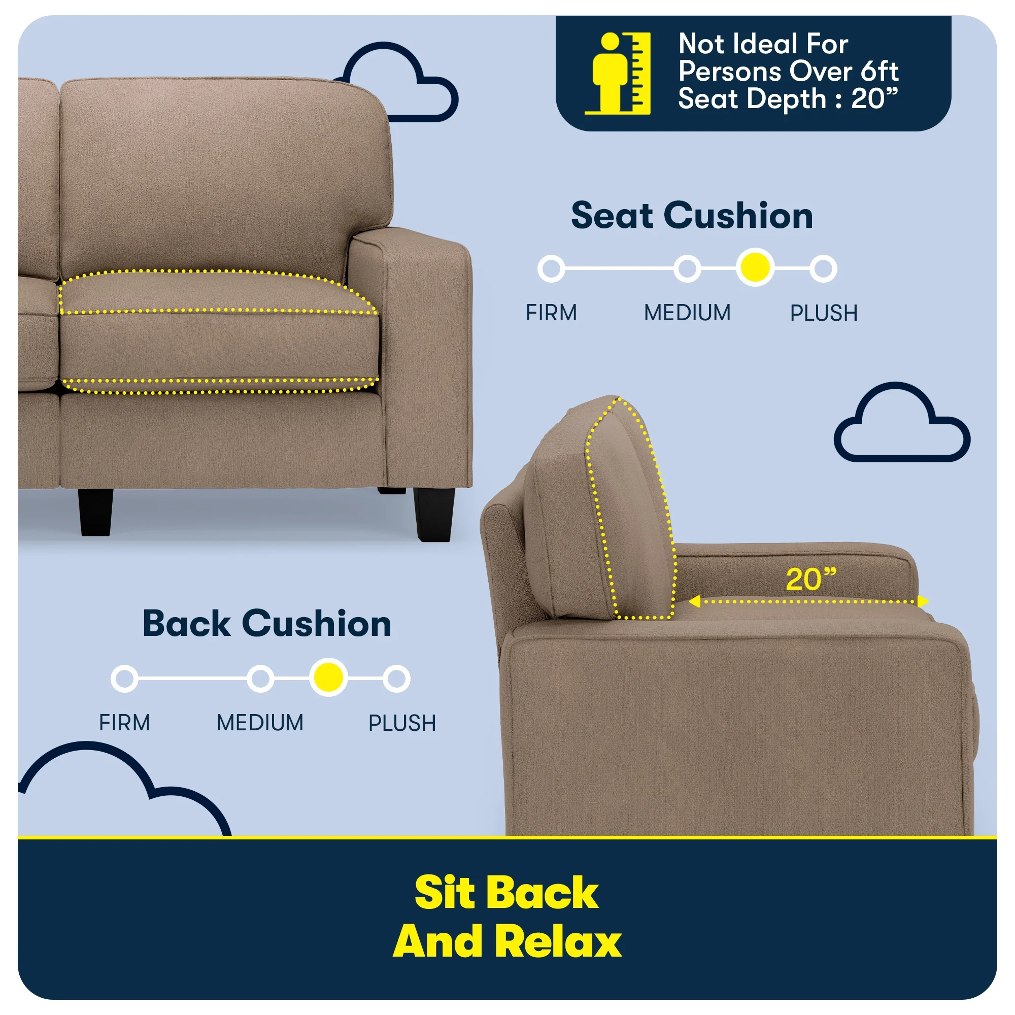 - SPACE-SAVING DESIGN: Its compact size and low-profile (61" wide x 33" deep x 36" high) make this two-seater couch a great choice for smaller apartments or lofts, living rooms, or home offices.