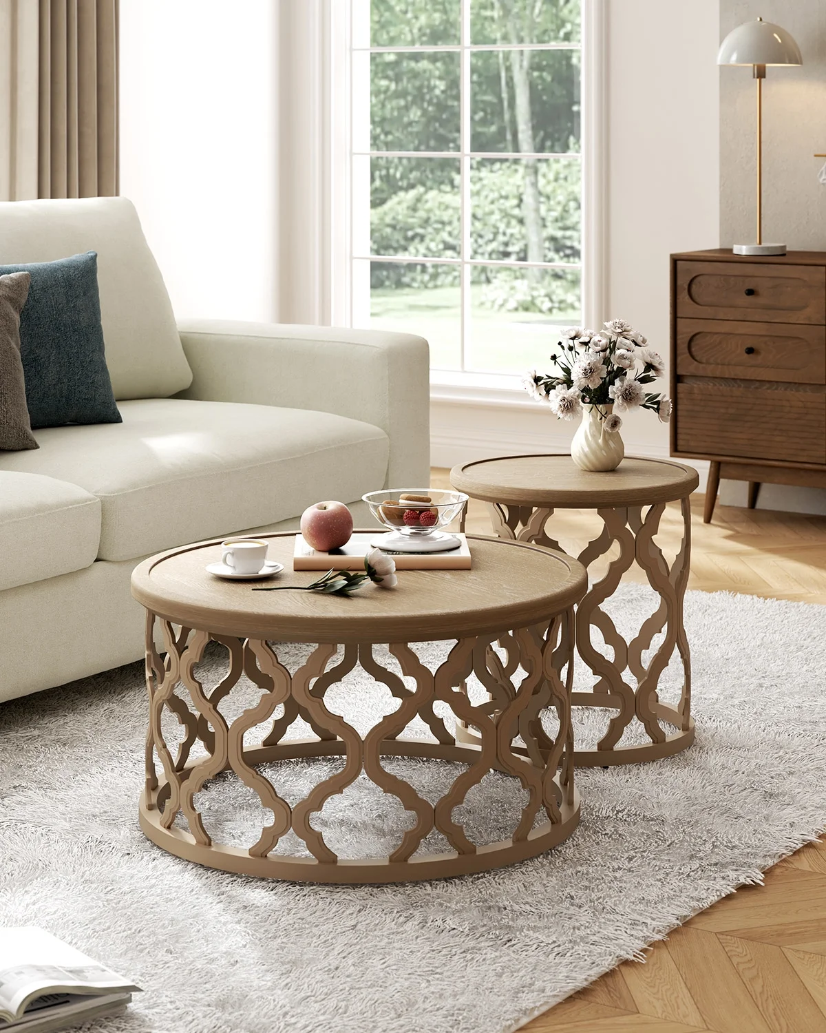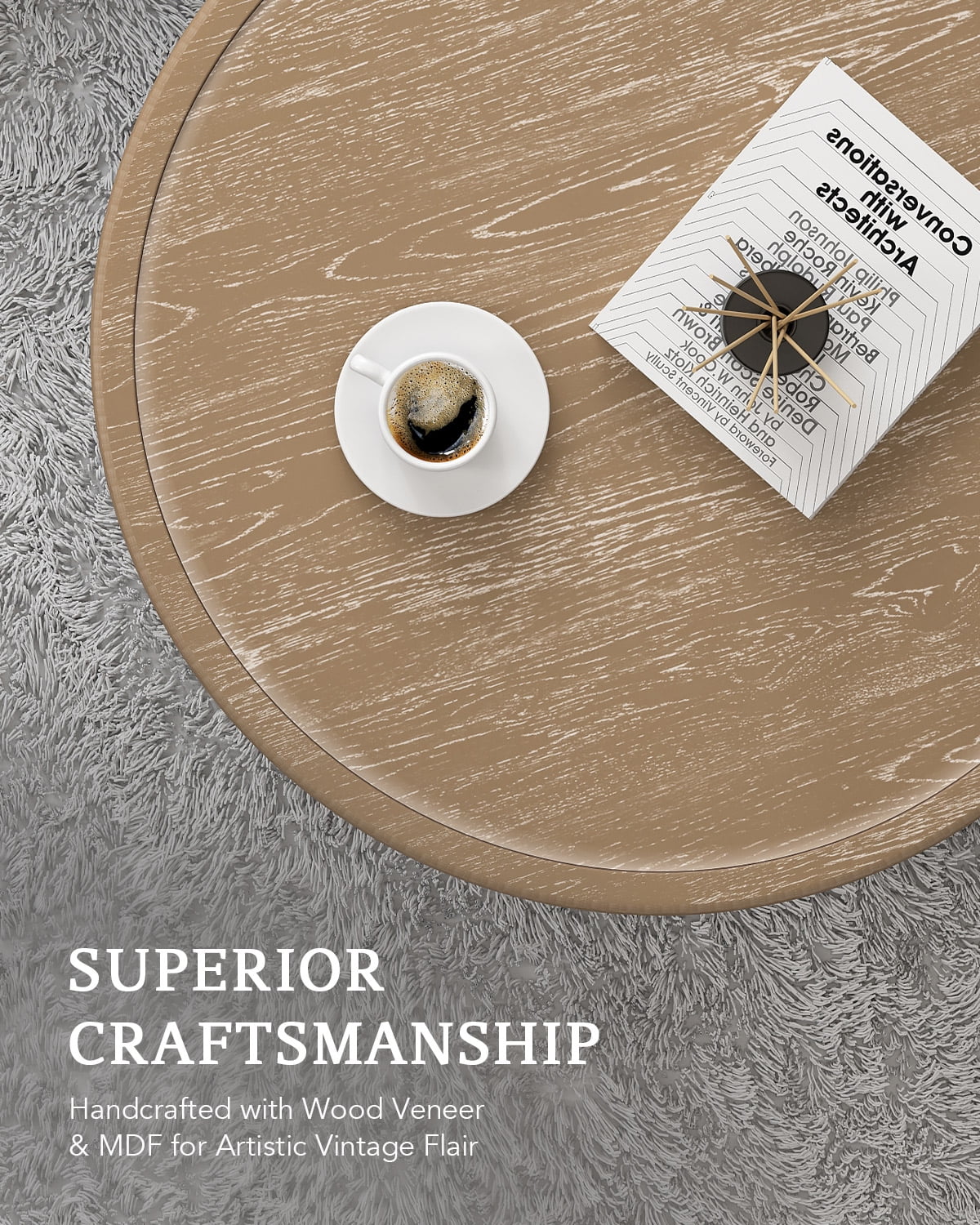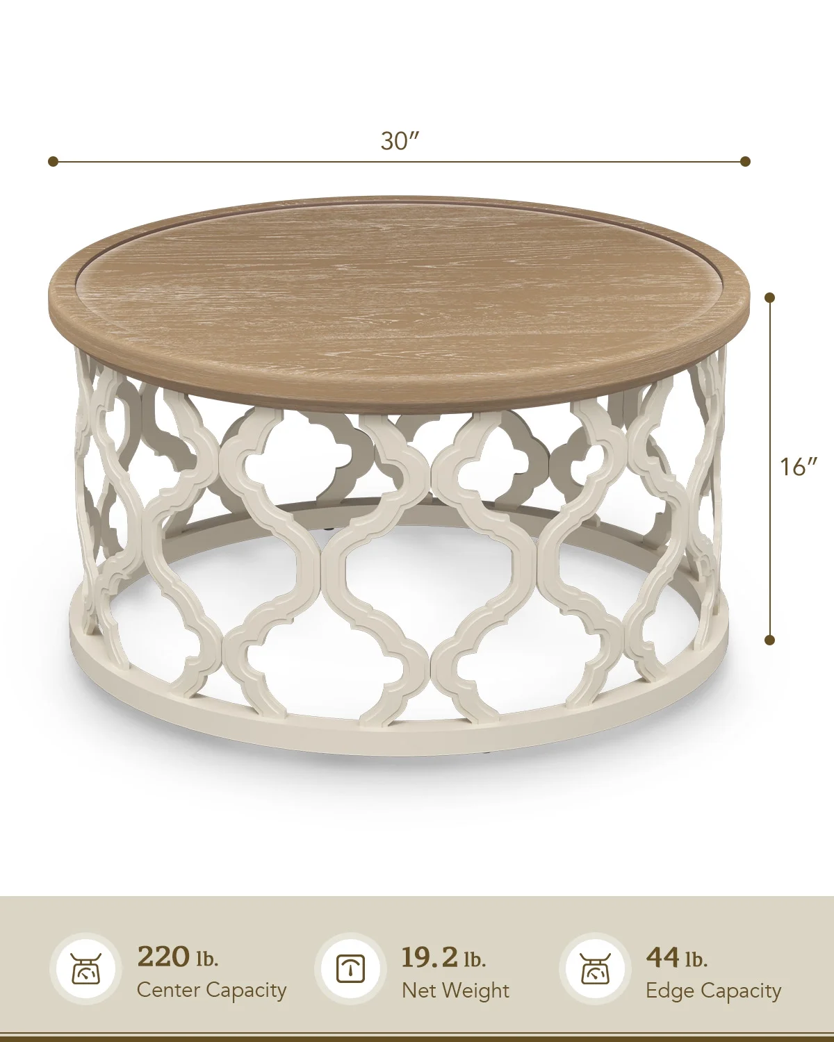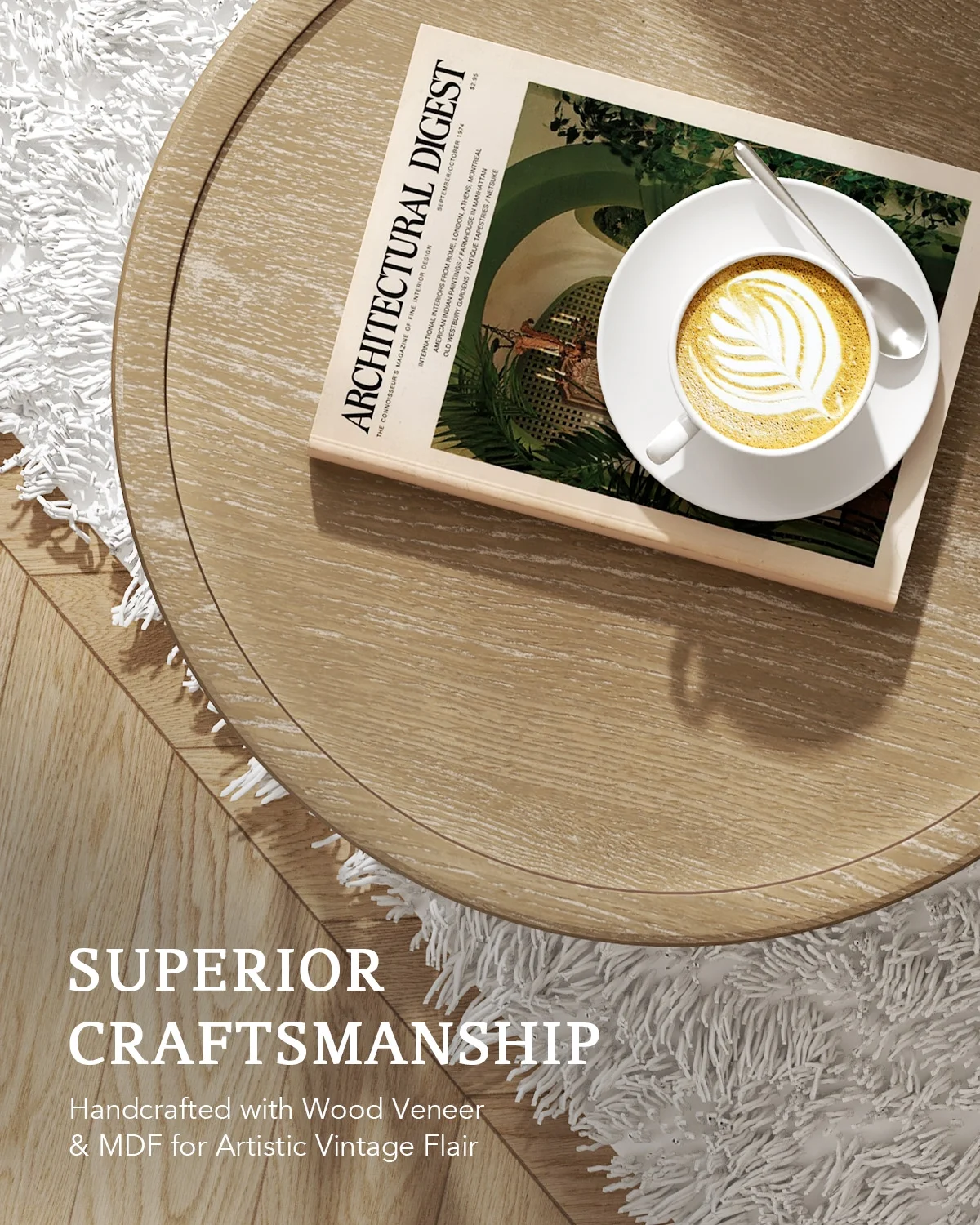 ��Modern Farmhouse Decor��: The 30-inch round coffee table blends French country charm with modern design and functionality, easily complementing any home decor styles in both living rooms and dining rooms.