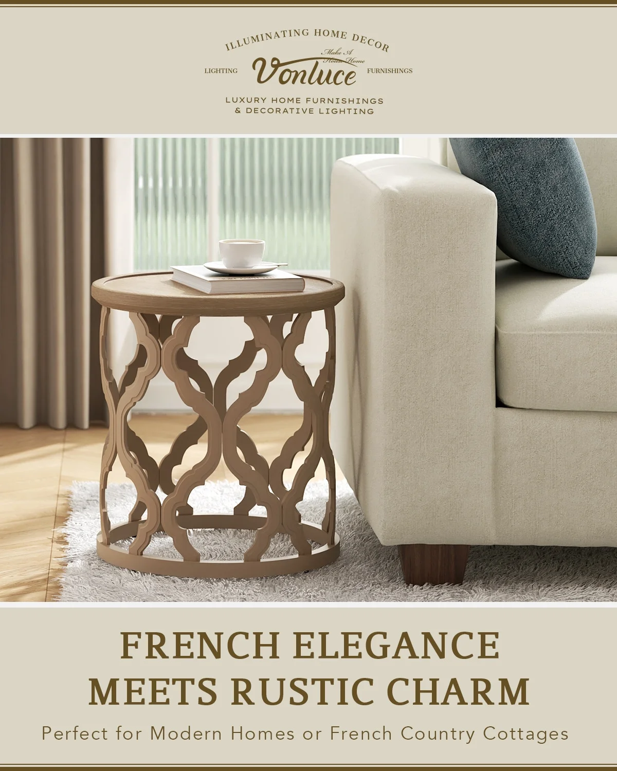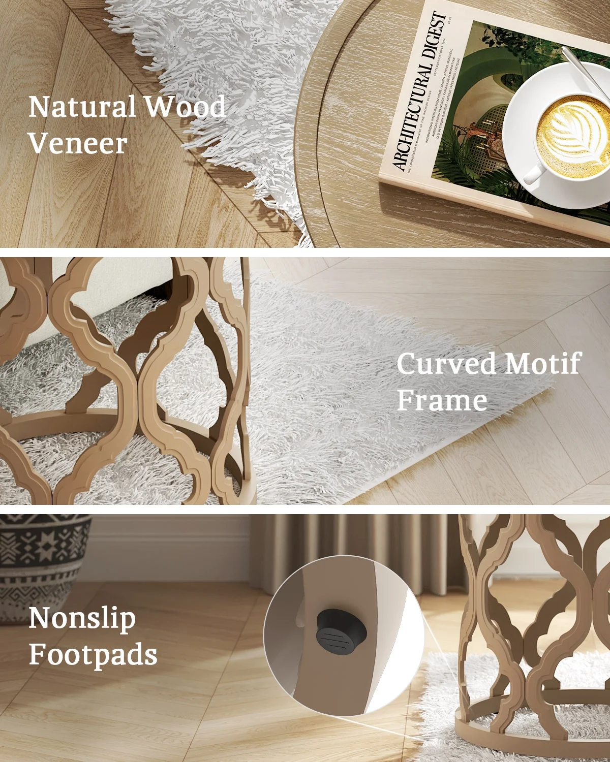 Looking to infuse your living space with rustic charm? Meet The 30 inch farmhouse coffee table, a perfect blend of French country allure and modern functionality. This versatile vintage coffee table effortlessly complements any decor styles in living rooms, dining rooms, and bedrooms. Crafted for both style and practicality, our round coffee table features a spacious top tray to keep your living space clutter free. Its curved motif frames add an elegant touch to your living space. Handcrafted from MDF, it books, magazines, or decorative items up to 260 pounds without a hint of wobbling. Spend less time on assembly and maintenance thanks to its clear instructions and waterproof surface. Elevate your space with our French country coffee table, where style meets simplicity.