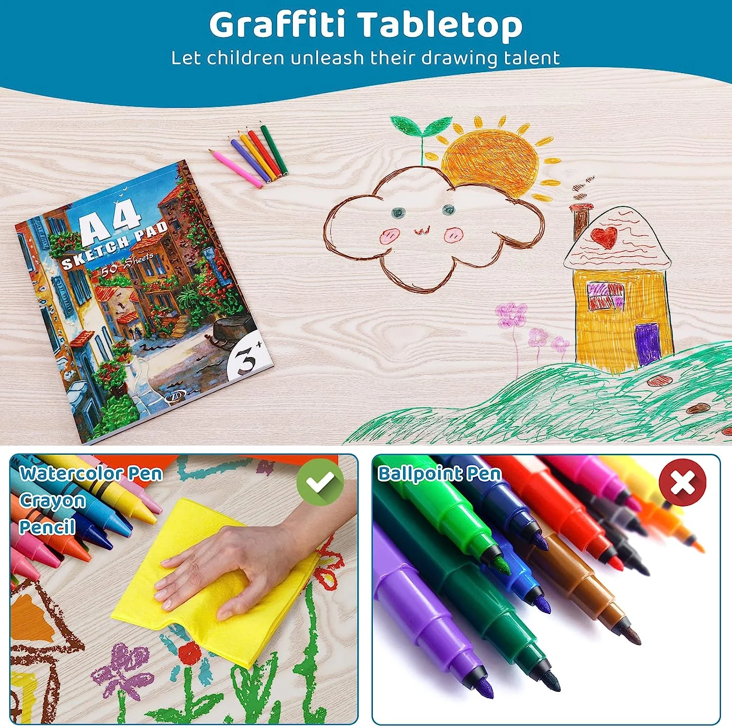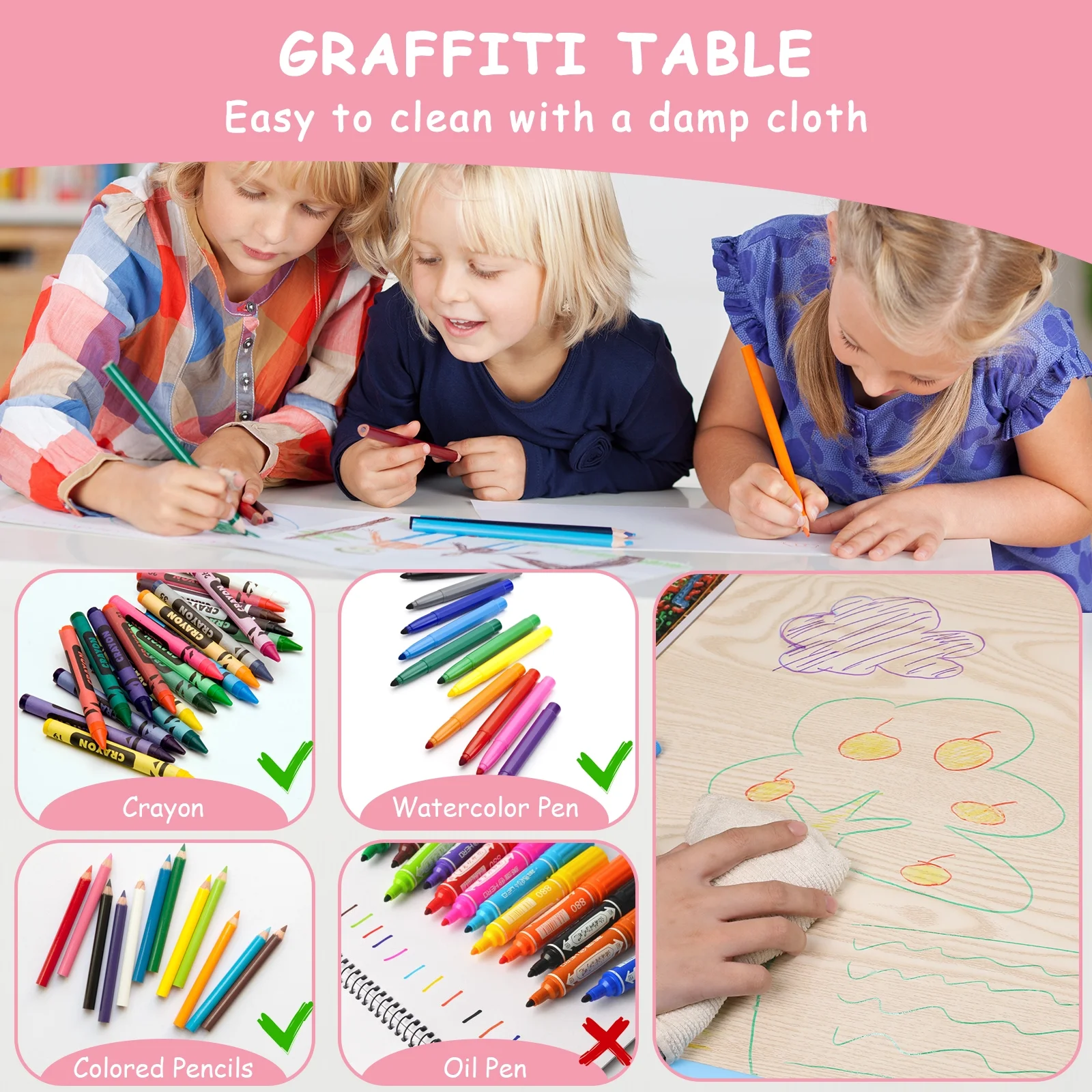 - The spacious 47.2 x 23.6-inch graffiti tabletop serves as a multi-use area for meals, study, arts, crafts or graffiti. Smooth surface wipes clean easily, even after messy activities.