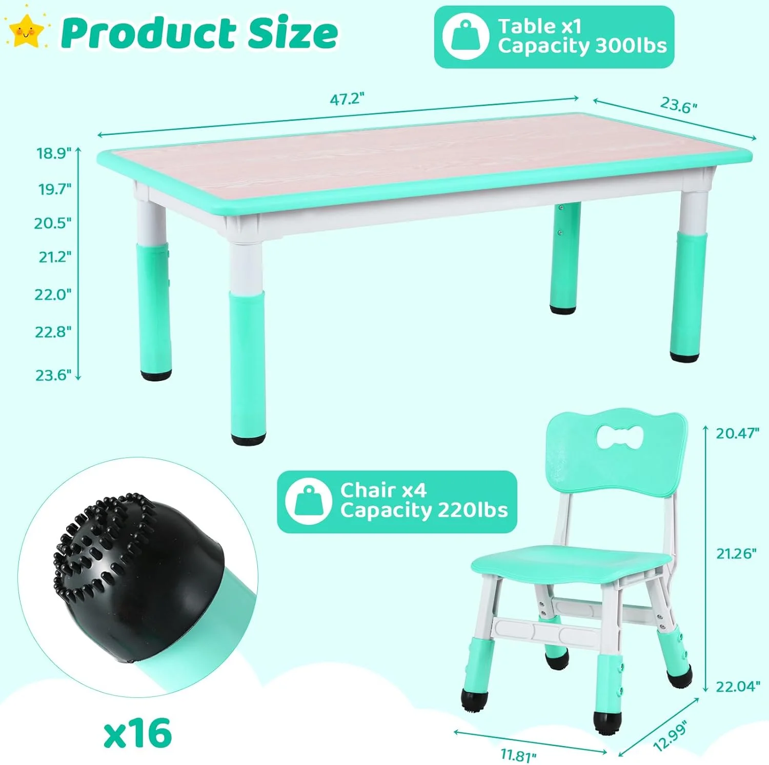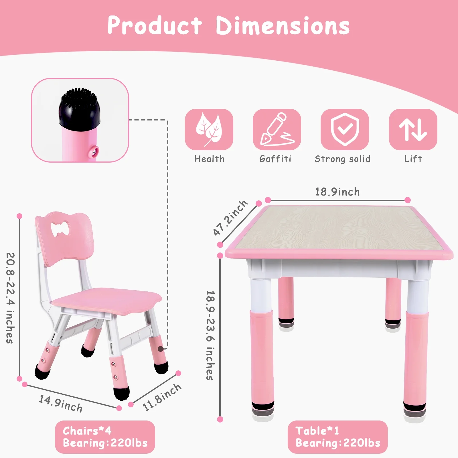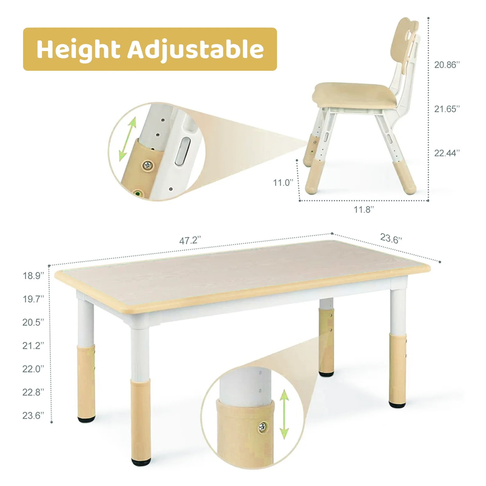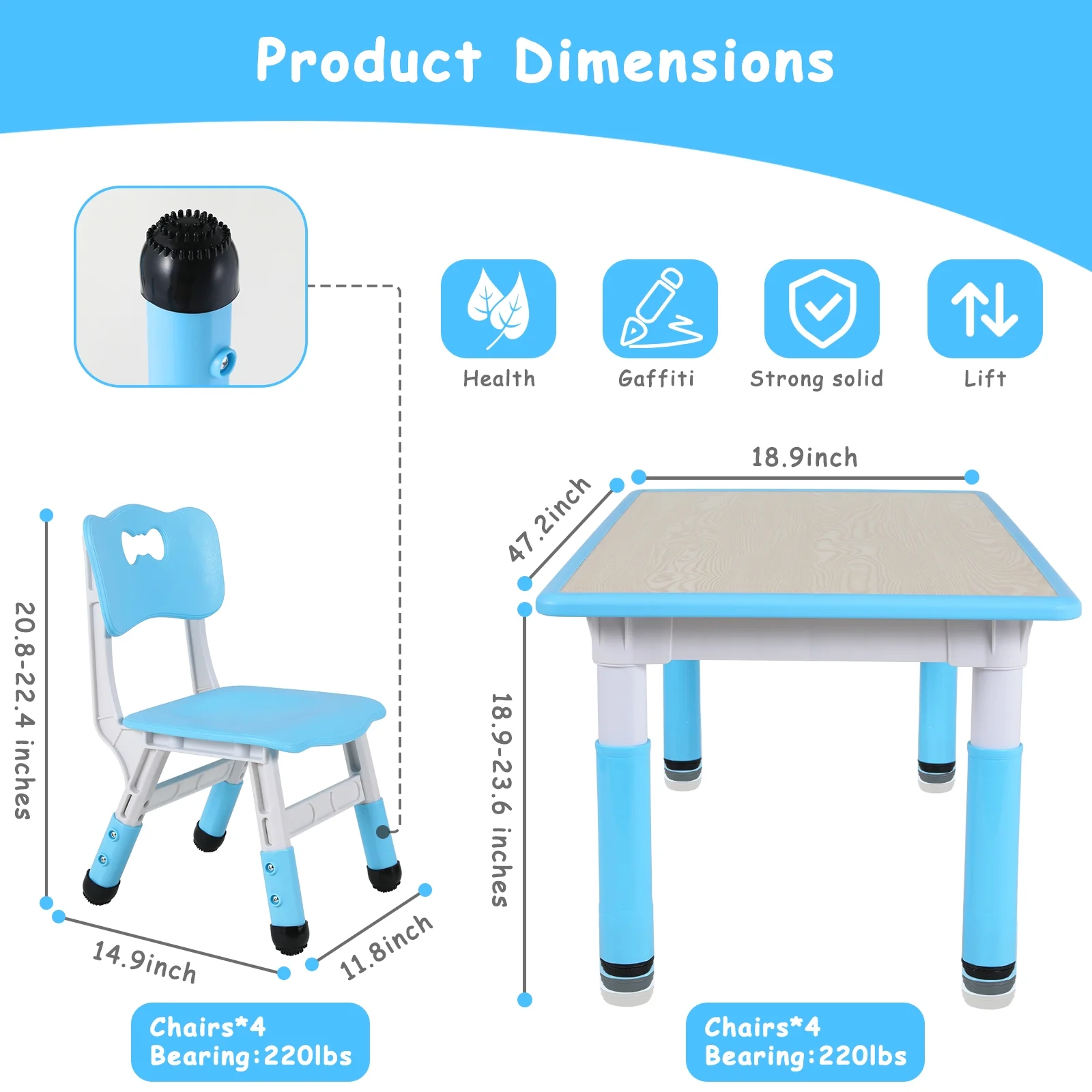 - Adapts as your child grows: the activity table has 7 height settings (18.9�C23.6 inches), and chairs offer 3 levels (20.47�C22.04 inches), ideal for ages 2�C8.