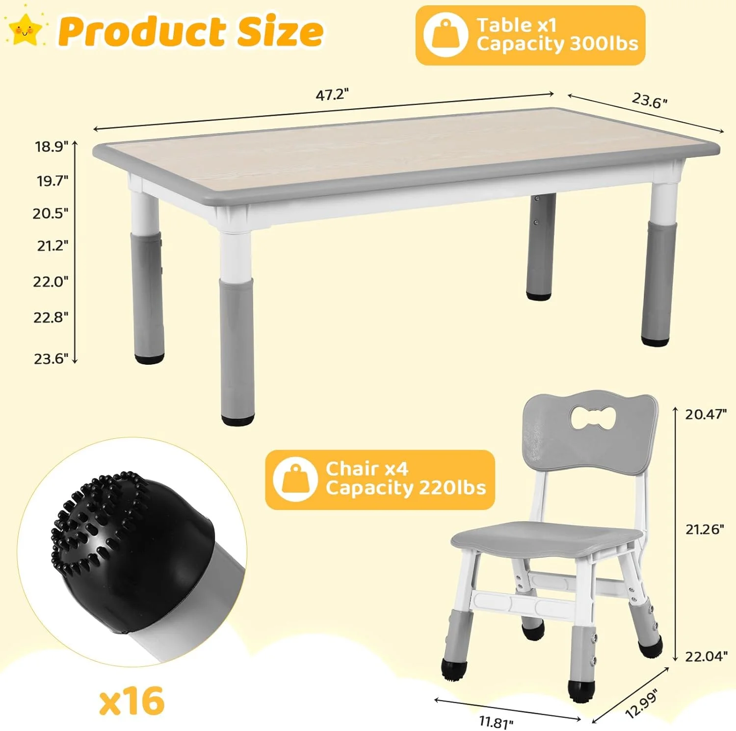 - Made from premium HDPE plastic with reinforced construction, LAZY BUDDY kids table and 4 chairs set offers maximum stability��supporting up to 220 lbs per chair and 300 lbs for the table. Anti-slip rubber feet prevent sliding during active use, and rounded corners eliminate sharp edges, ensuring a safe environment for children.