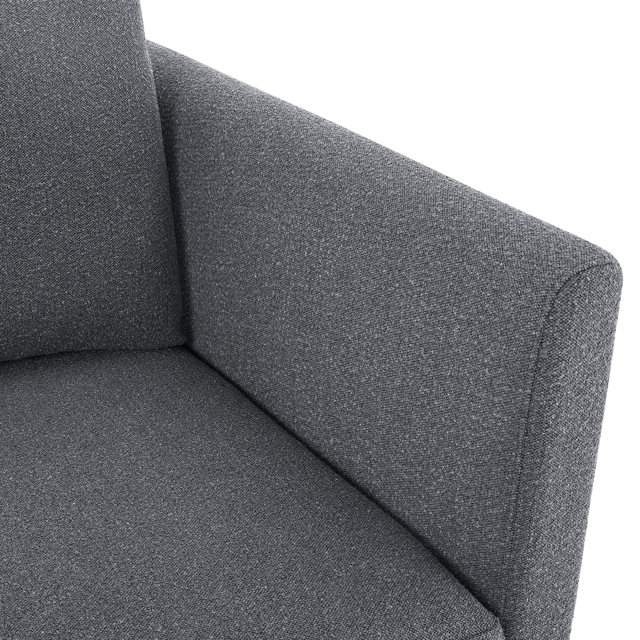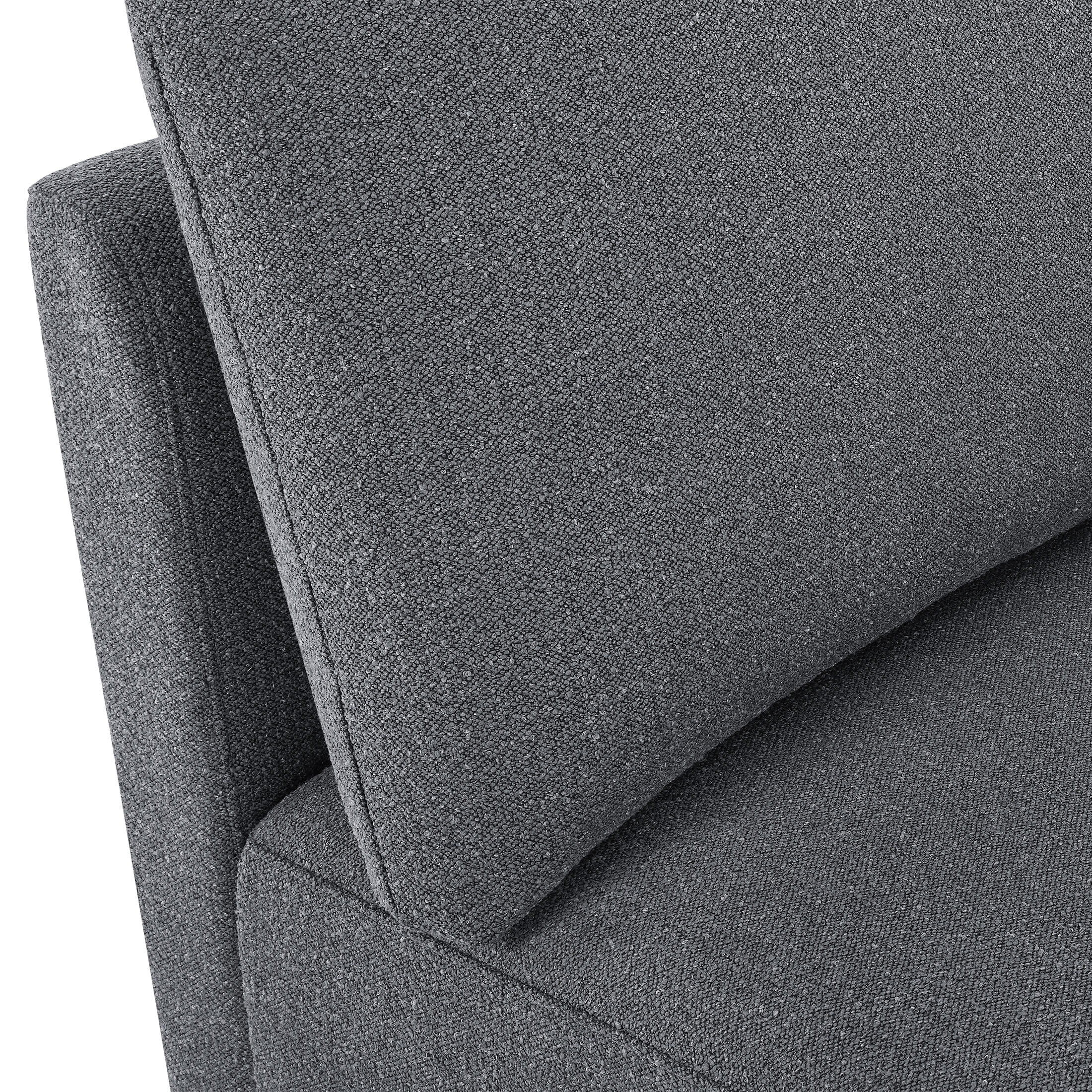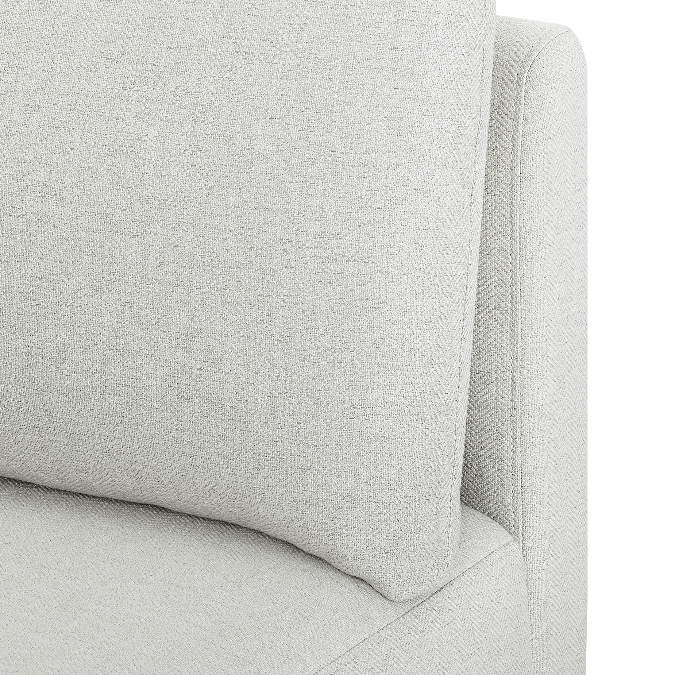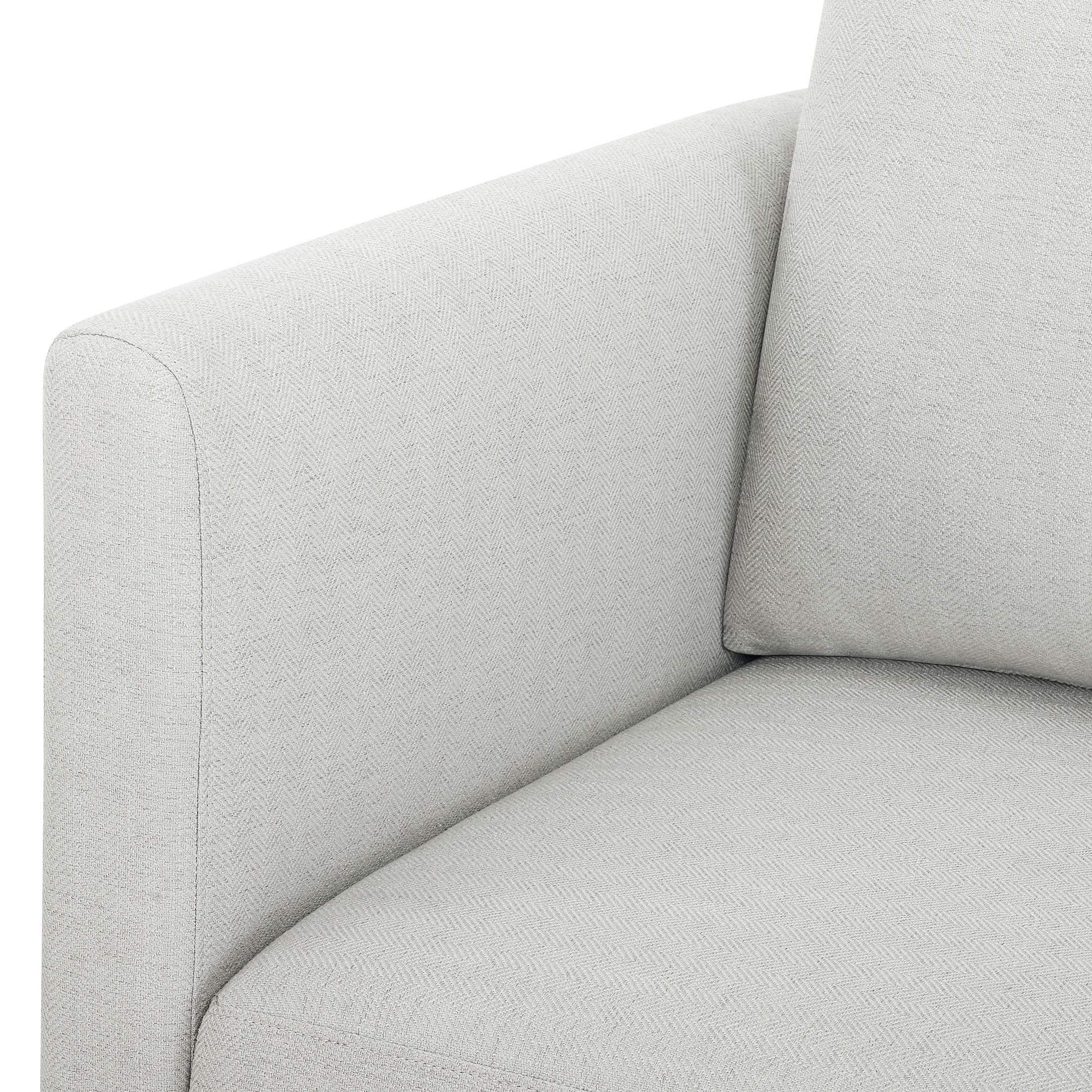 - Stain-treated gray fabric upholstery