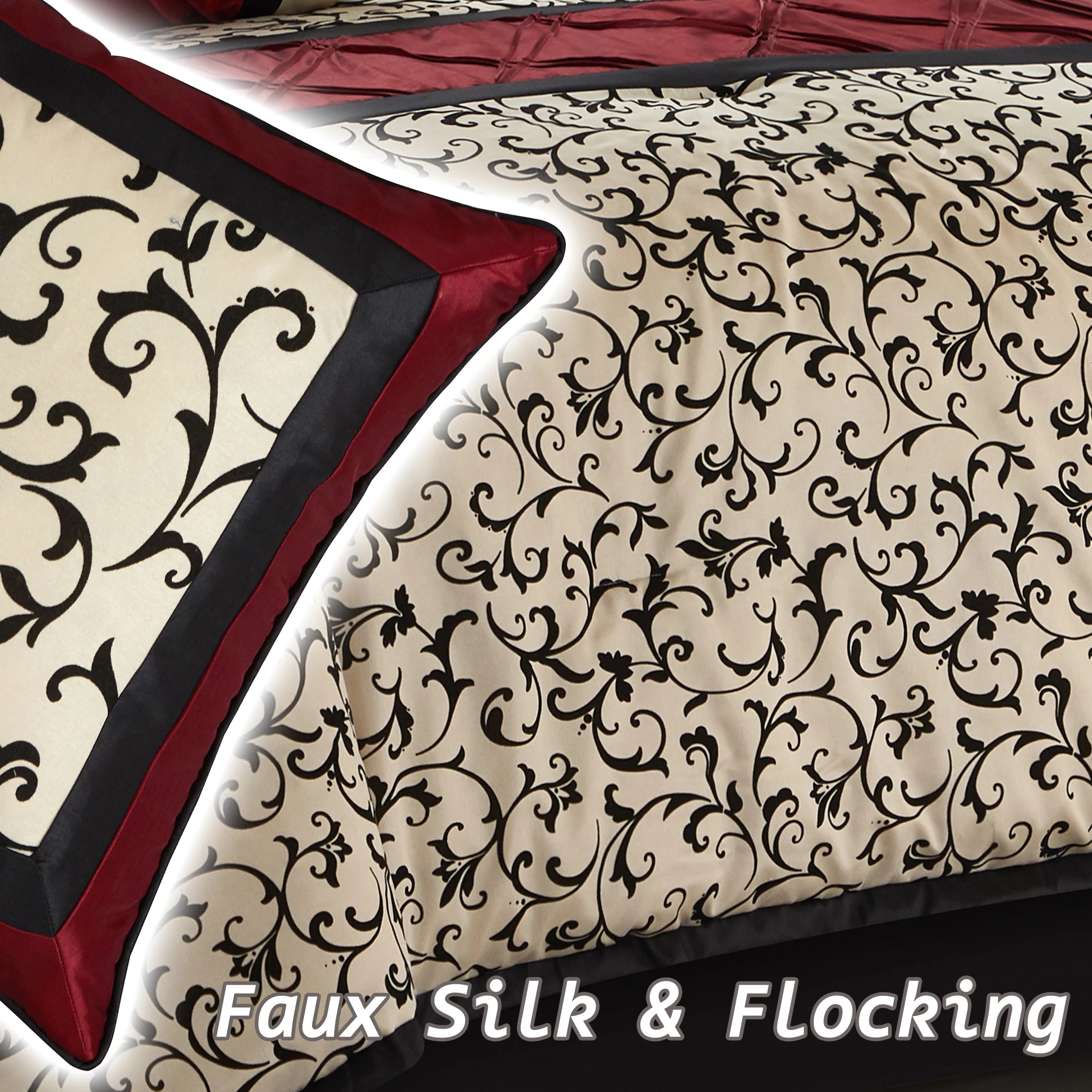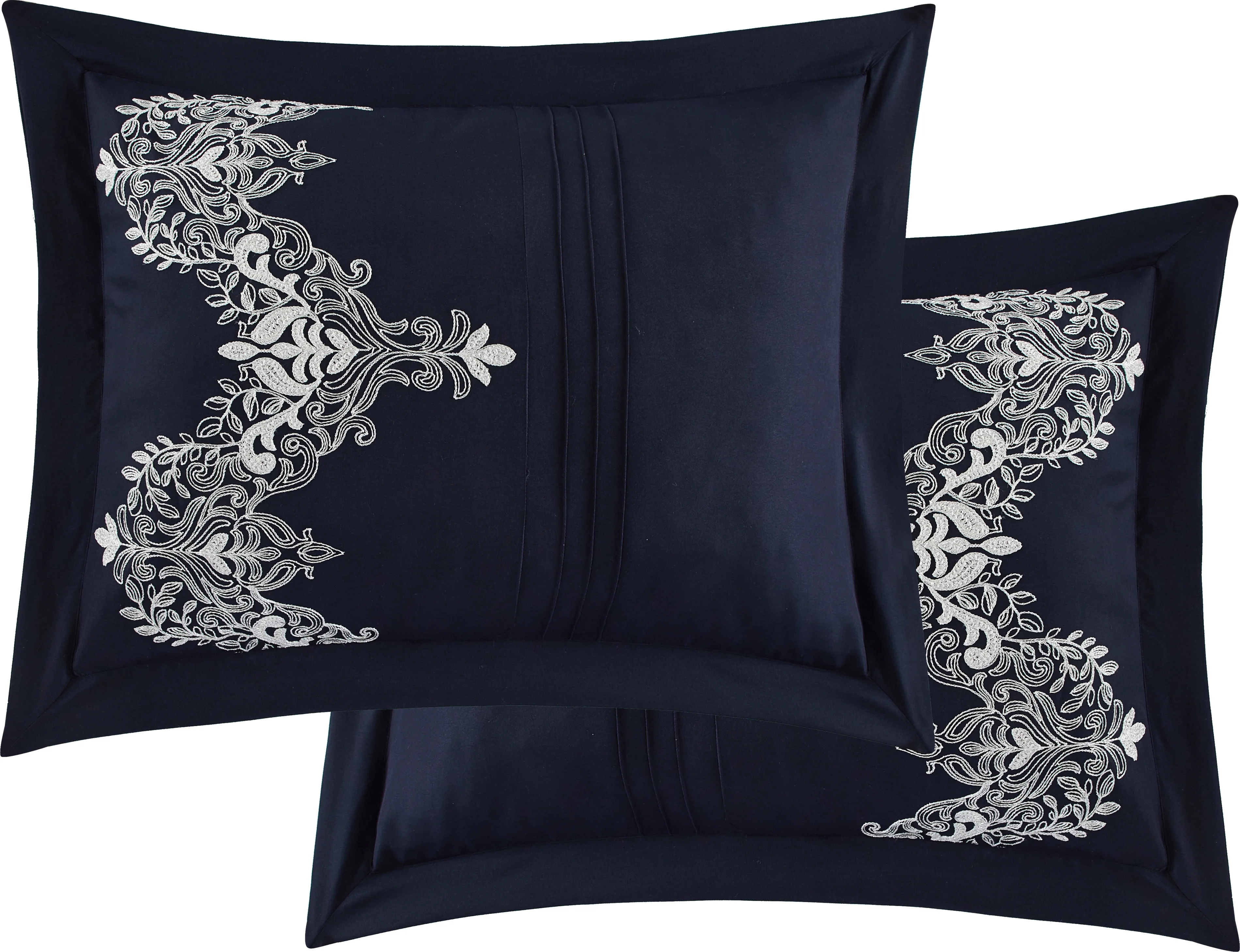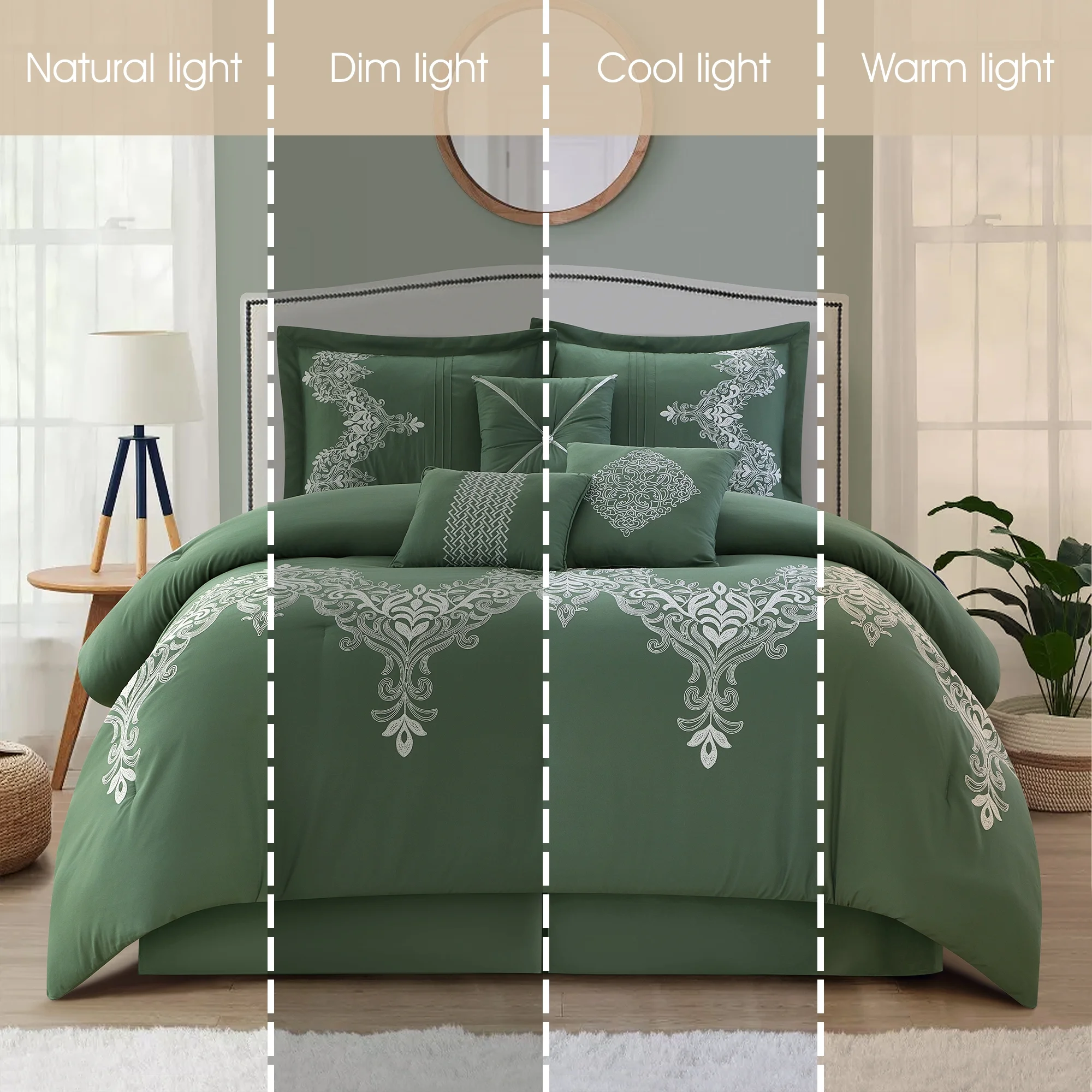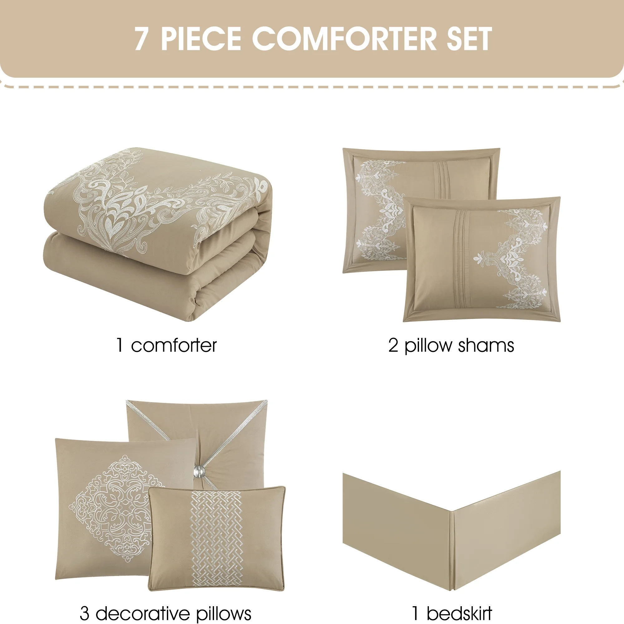 - [Exquisite and Exclusive Design] Elegant color with chain stitched embroidery makes set sophisticated and luxury looking. Color and design well match together. Shams and decorative pillows included. This comforter set is made with premium quality brush microfiber for an amazing night��s sleep.