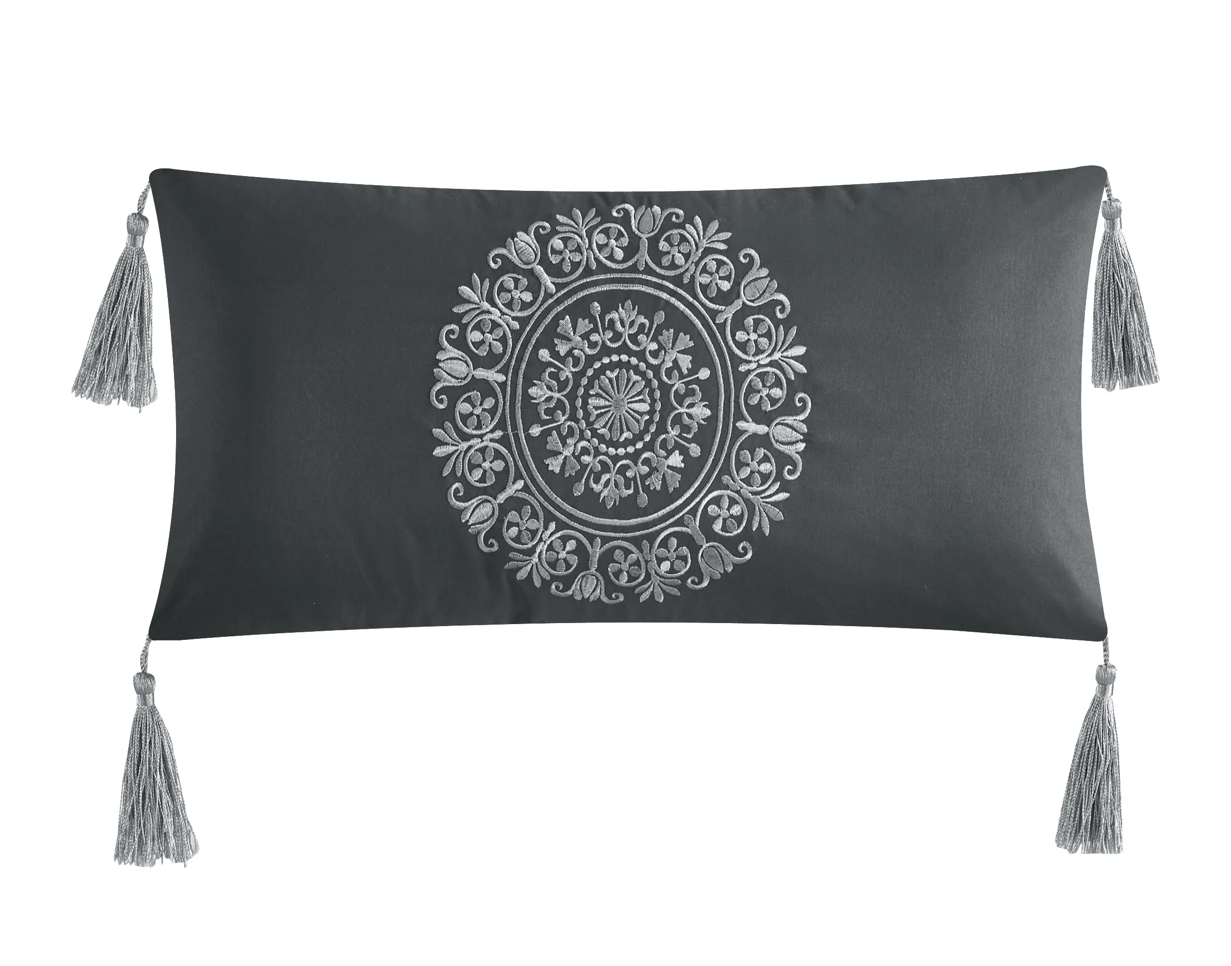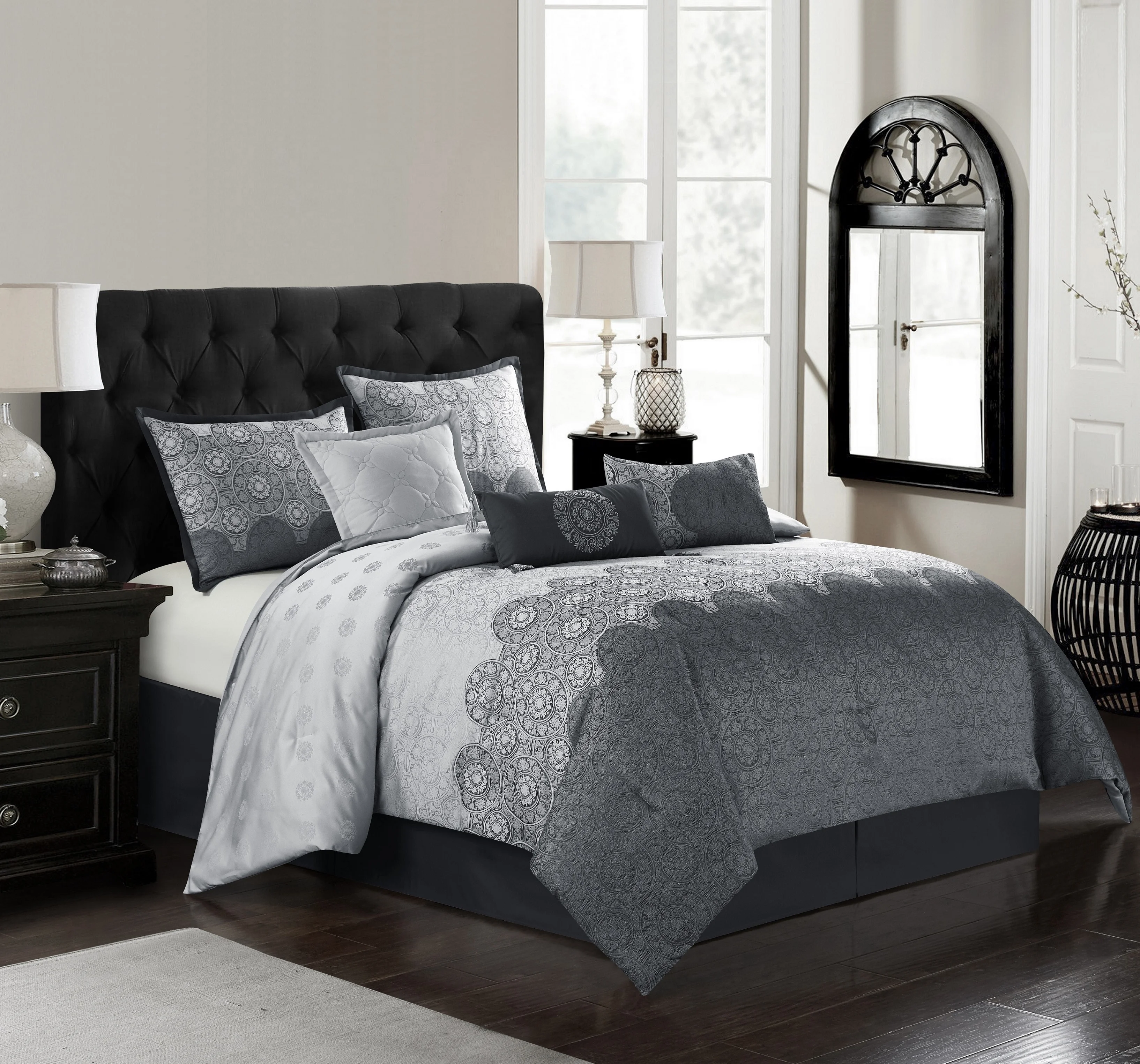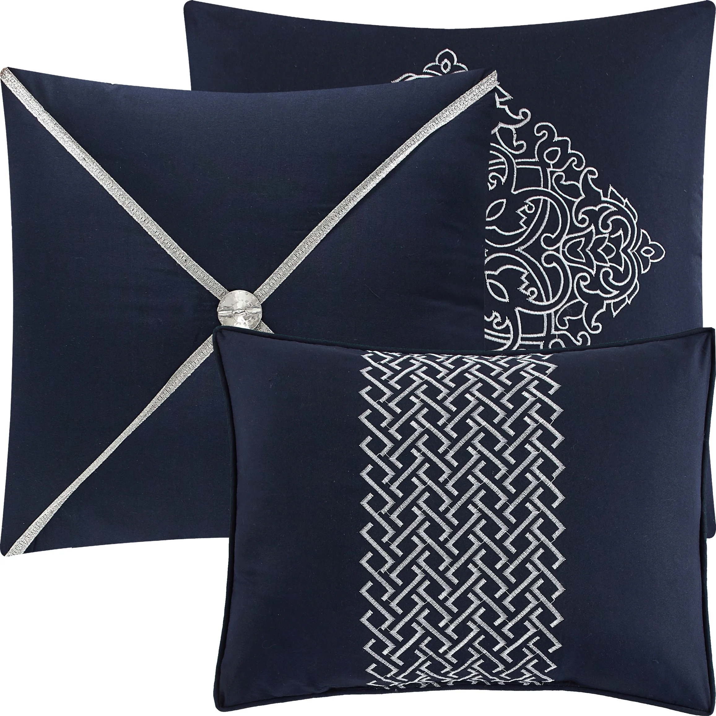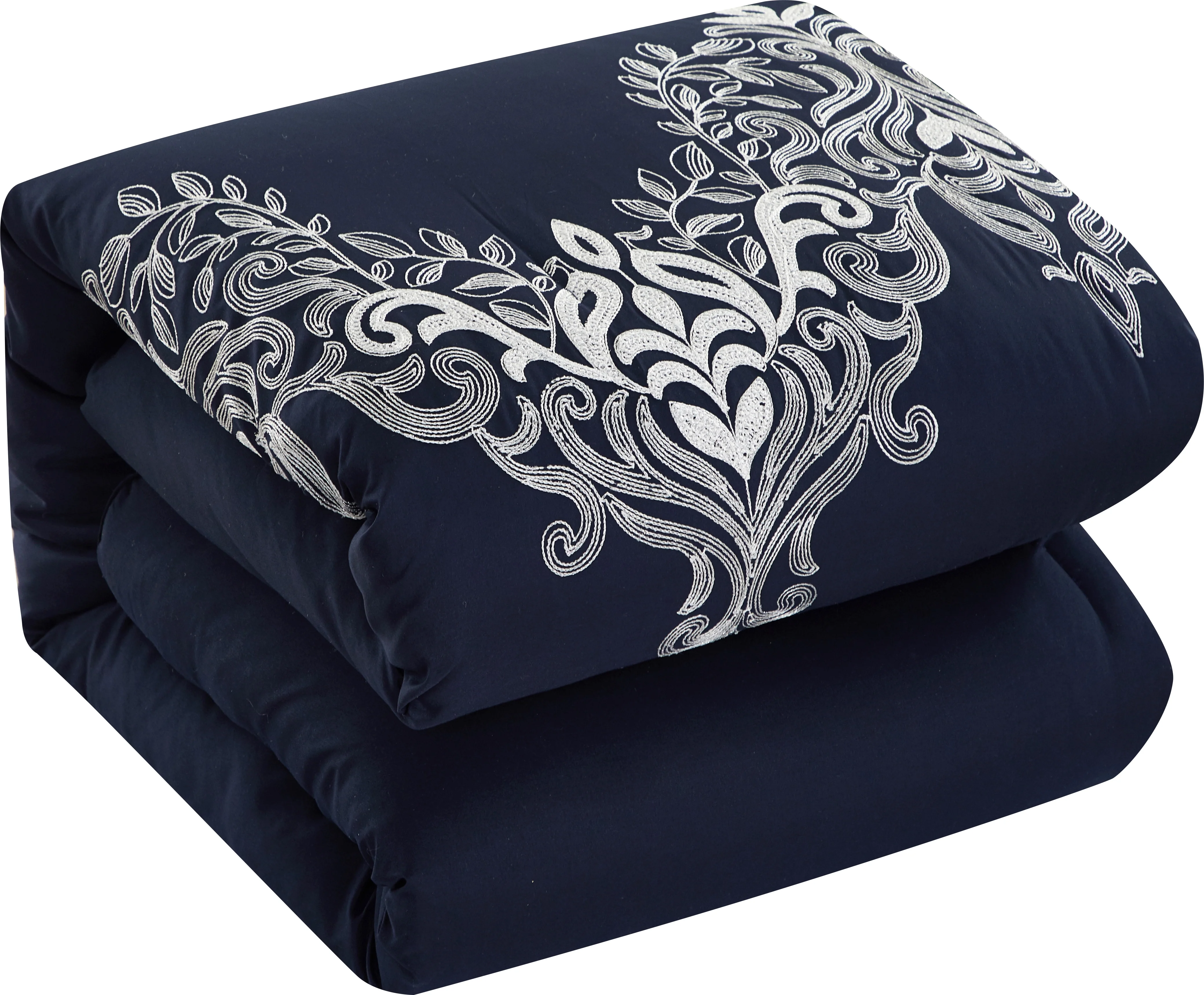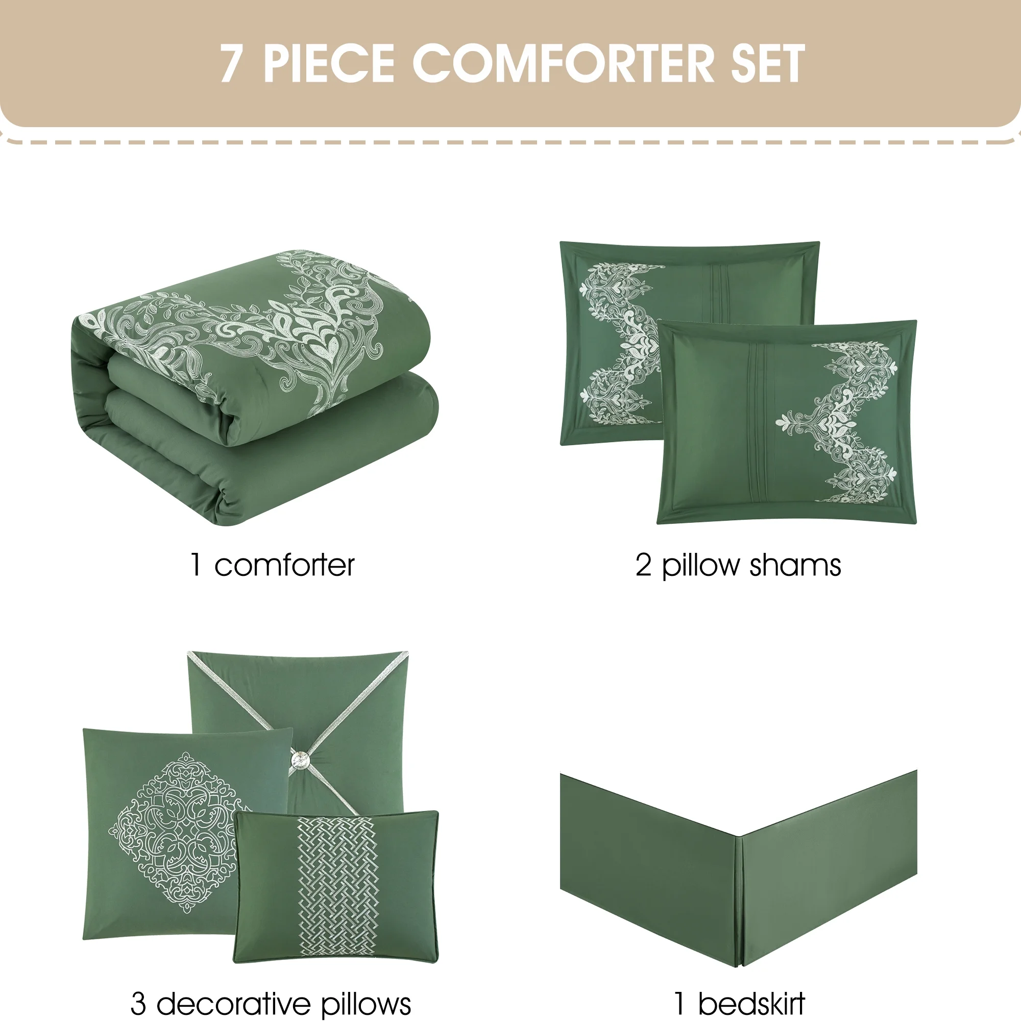 - [Exquisite and Exclusive Design] Elegant color with chain stitched embroidery makes set sophisticated and luxury looking. Color and design well match together. Shams and decorative pillows included. This comforter set is made with premium quality brush microfiber for an amazing night��s sleep.