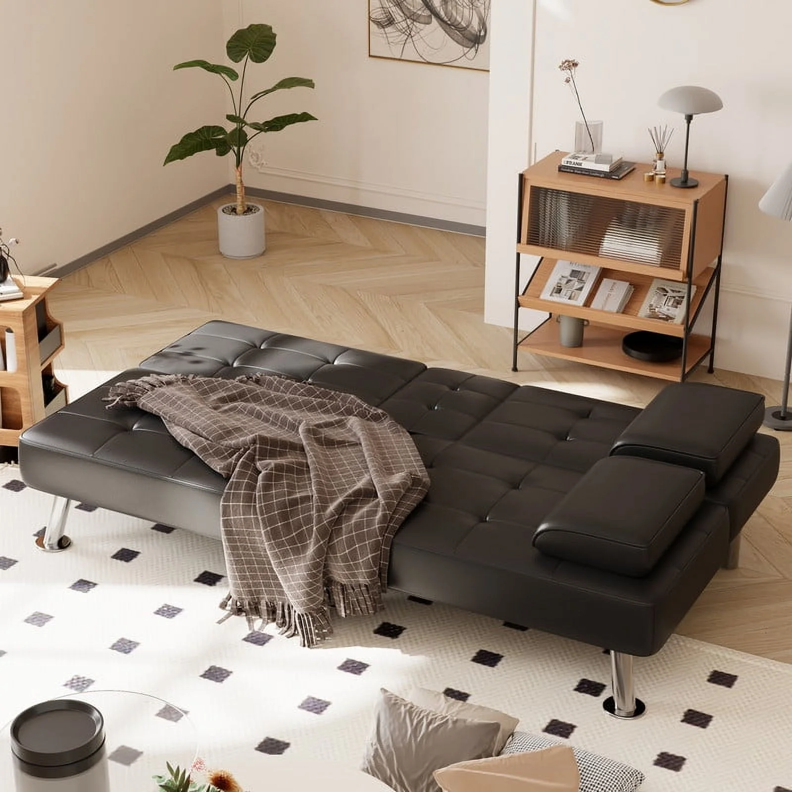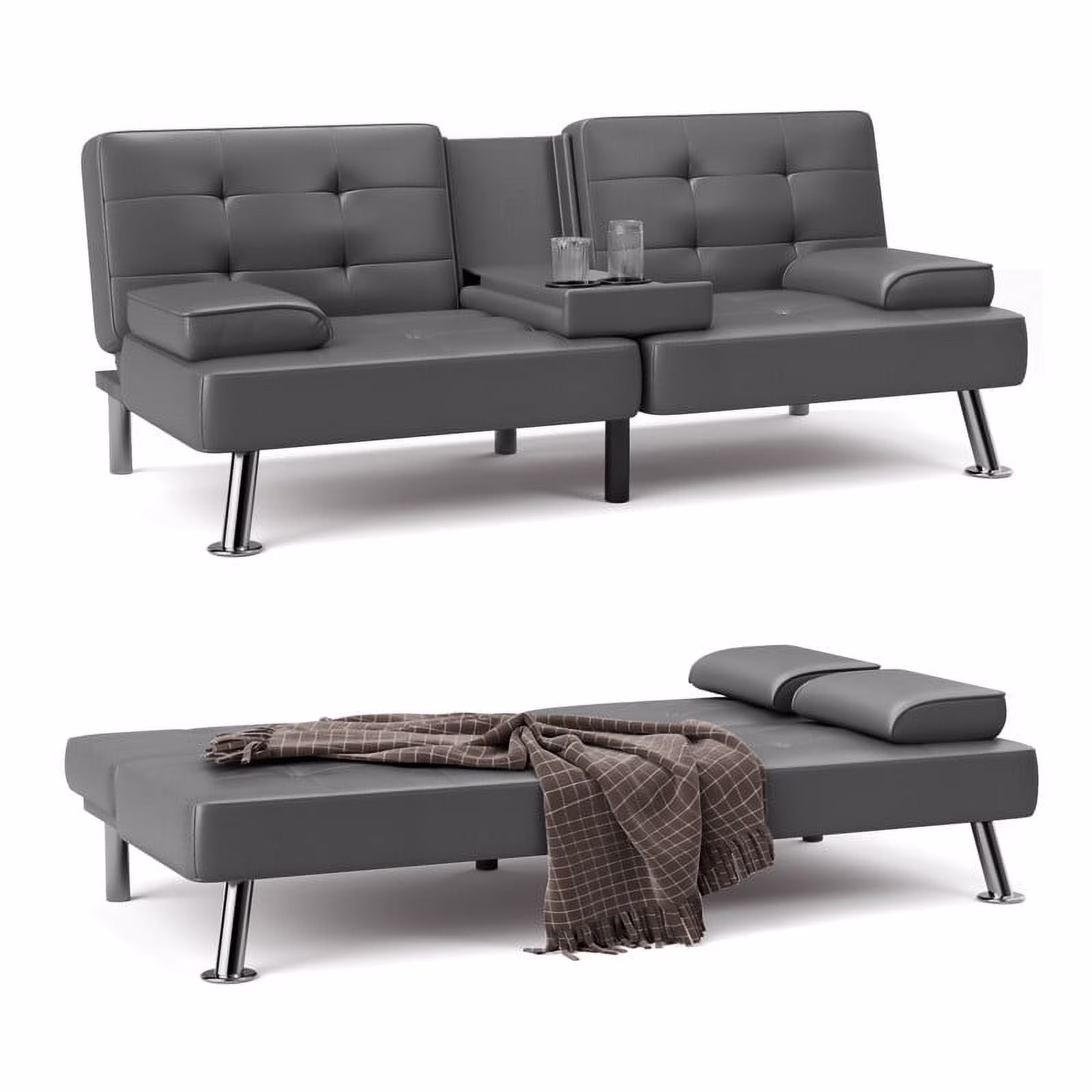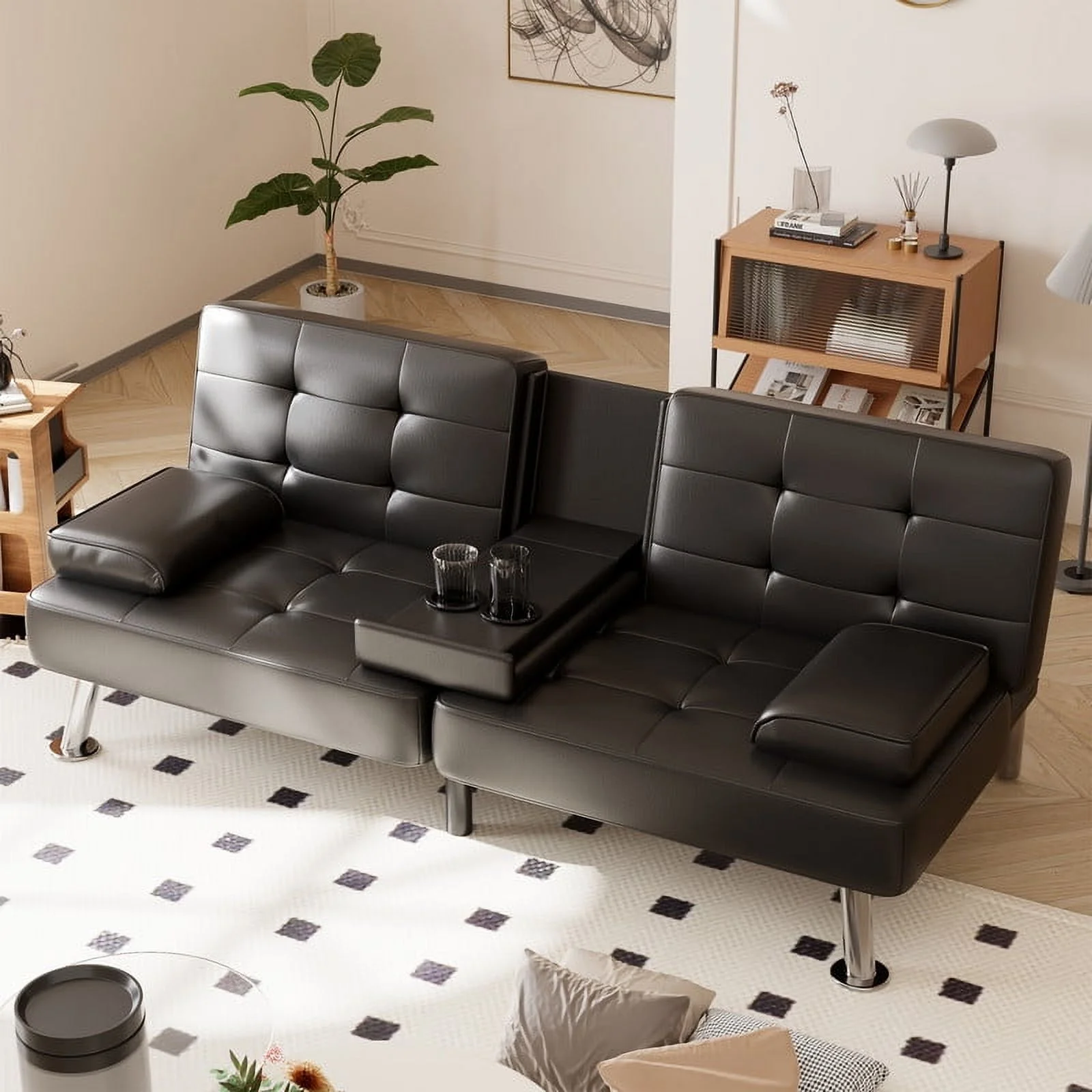 Introducing the Furmax Futon Sofa Bed, a perfect blend of function and style for any indoor setting. Meticulously crafted with premium leatherette, this sofa bed offers exceptional durability and comfort. The design features a breathable structure and high-quality leatherette, ensuring a relaxing experience. With its versatile nature, this sofa bed includes hidden cup holders and converts easily into a bed, making it ideal for space-conscious environments like apartments or studios.