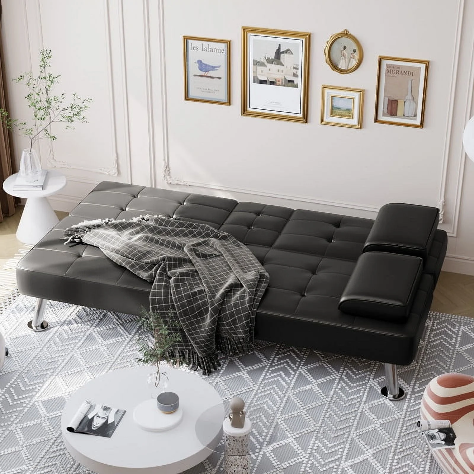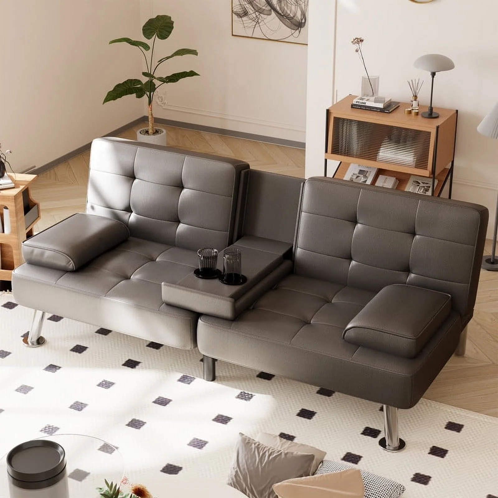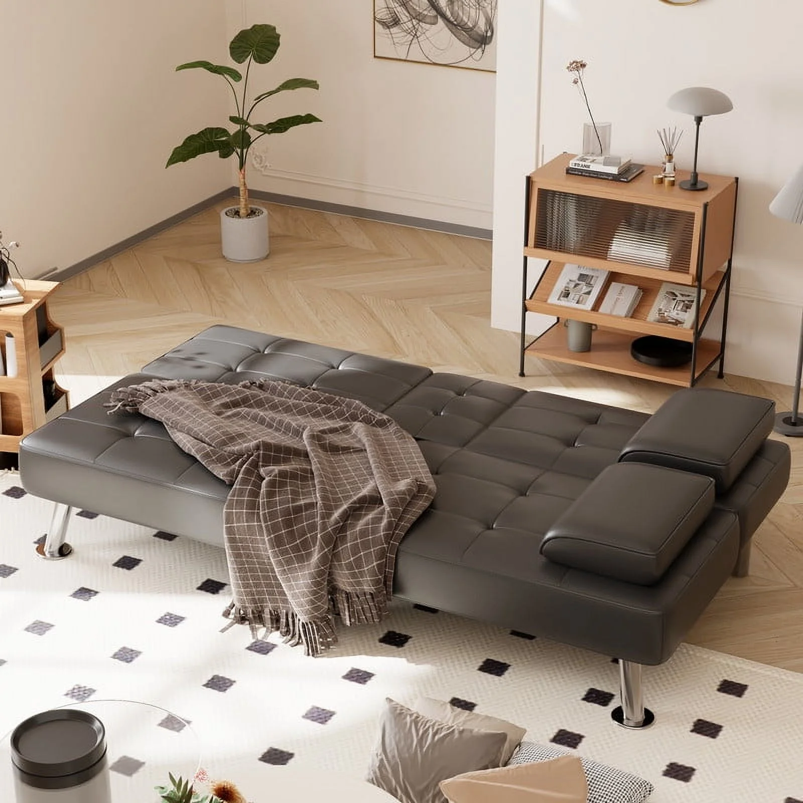 Introducing the Furmax Futon Sofa Bed, a perfect blend of function and style for any indoor setting. Meticulously crafted with premium leatherette, this sofa bed offers exceptional durability and comfort. The design features a breathable structure and high-quality leatherette, ensuring a relaxing experience. With its versatile nature, this sofa bed includes hidden cup holders and converts easily into a bed, making it ideal for space-conscious environments like apartments or studios.