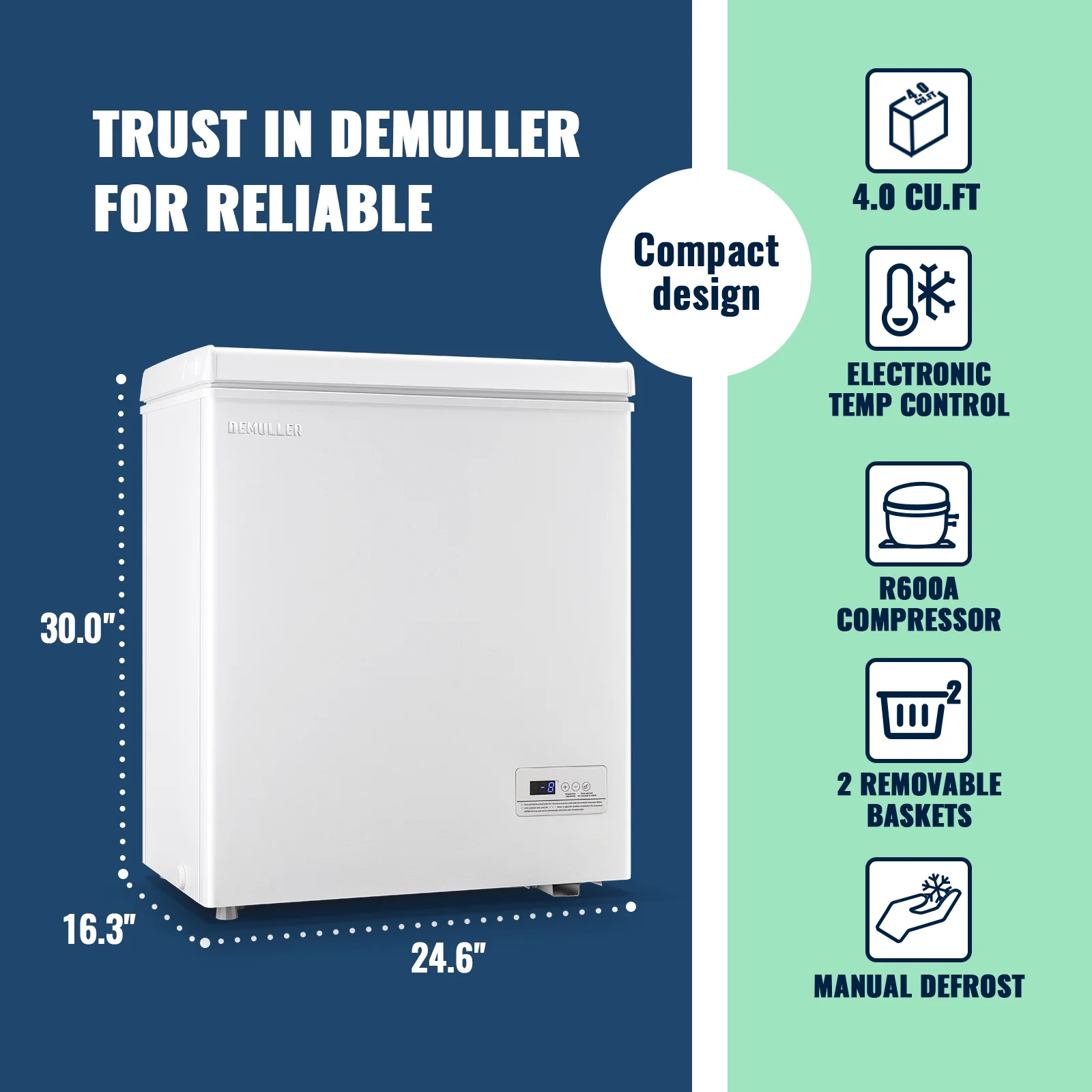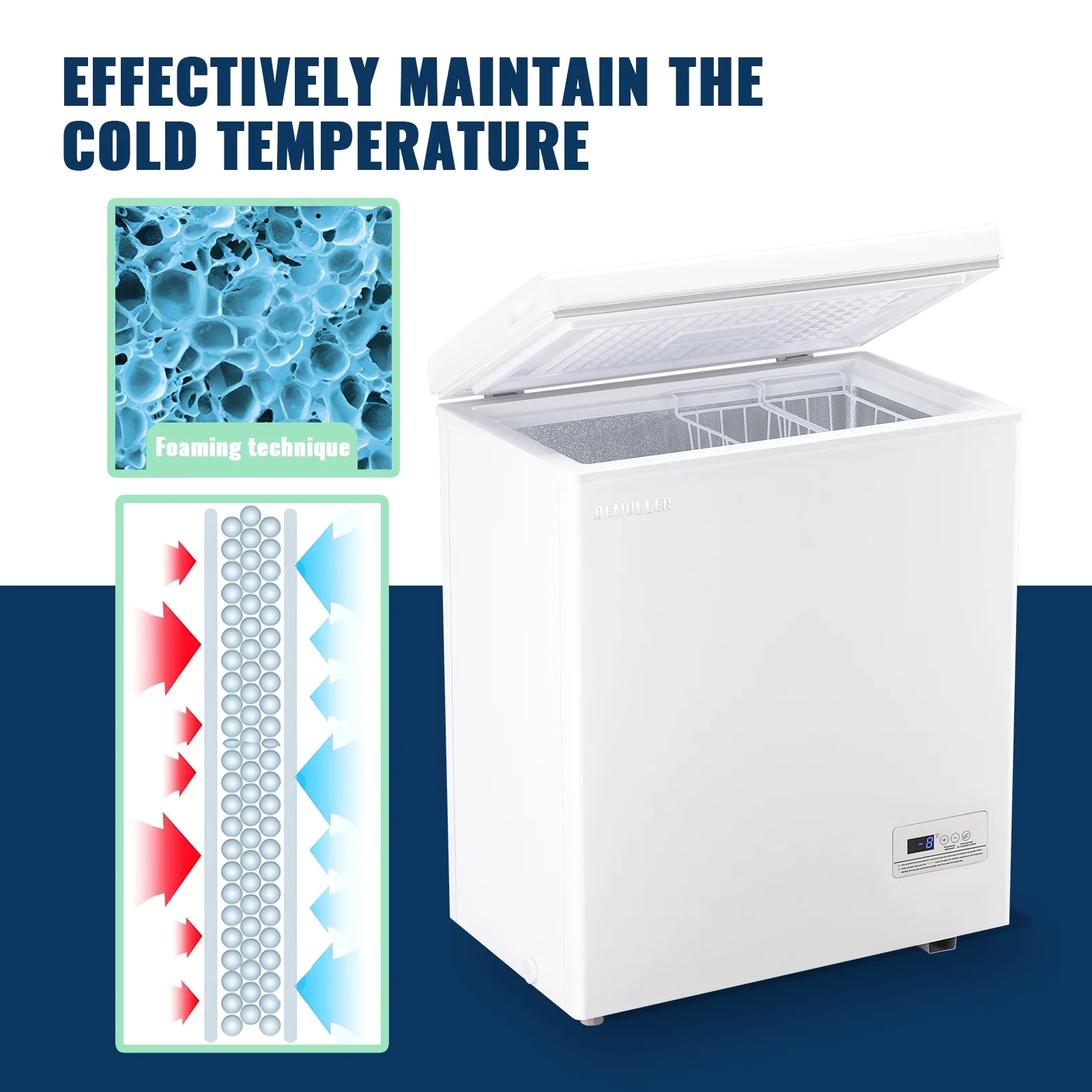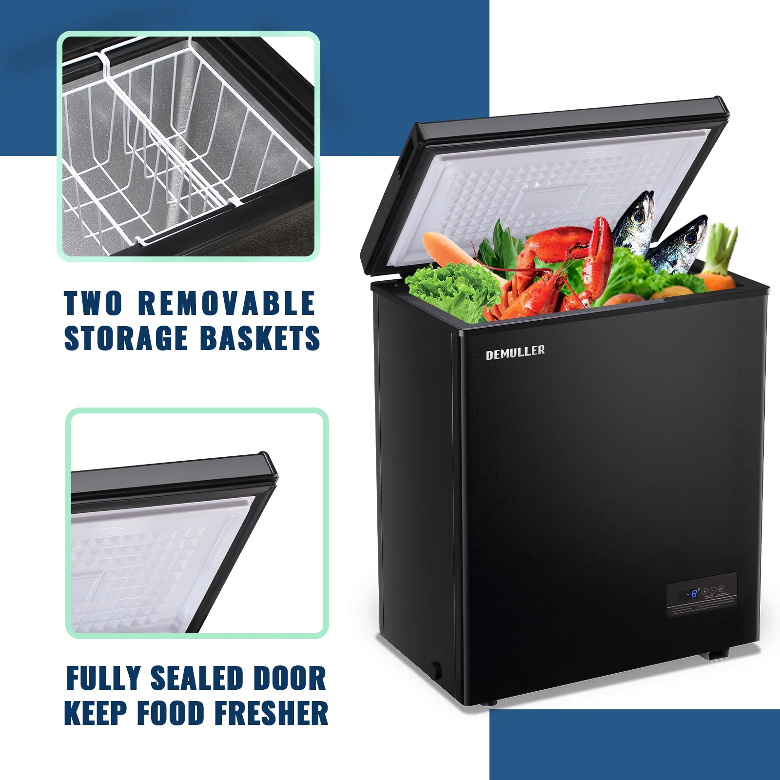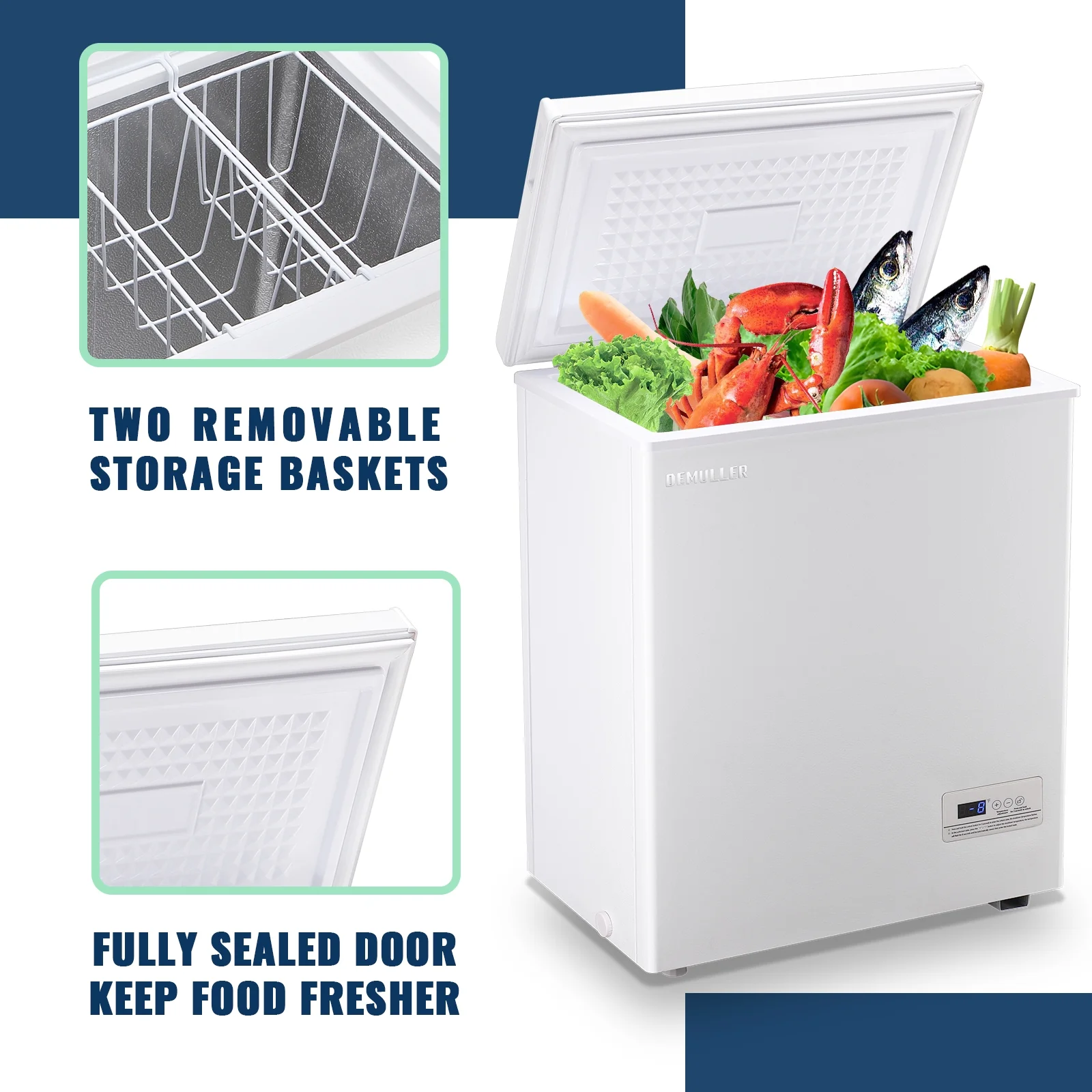 - Complete Package & Exceptional Service: In the package, you'll find the Chest Freezer, two Stainless Steel Baskets, and a User Manual. Our commitment to excellent customer service ensures you have all the support you need. Tips: Please place the freezer upright for 24 hours because the oil in the compressor needs time to settle to the bottom.