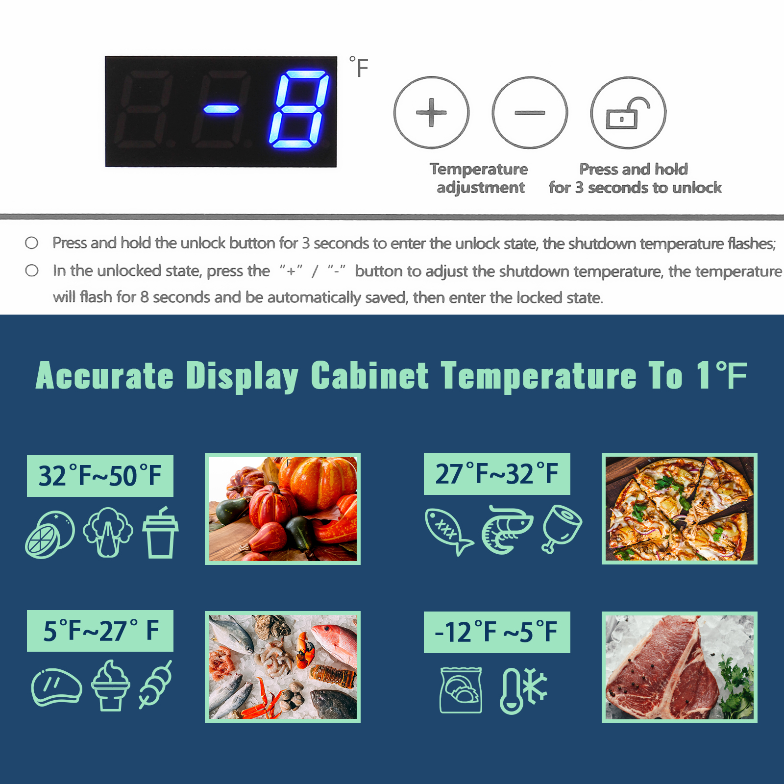 - Precision Temperature Control: Take command with intelligent digital display and precise temperature control accurate to 1�H. With a temperature range from -12�H to 41�H, you have full control over your frozen goods.