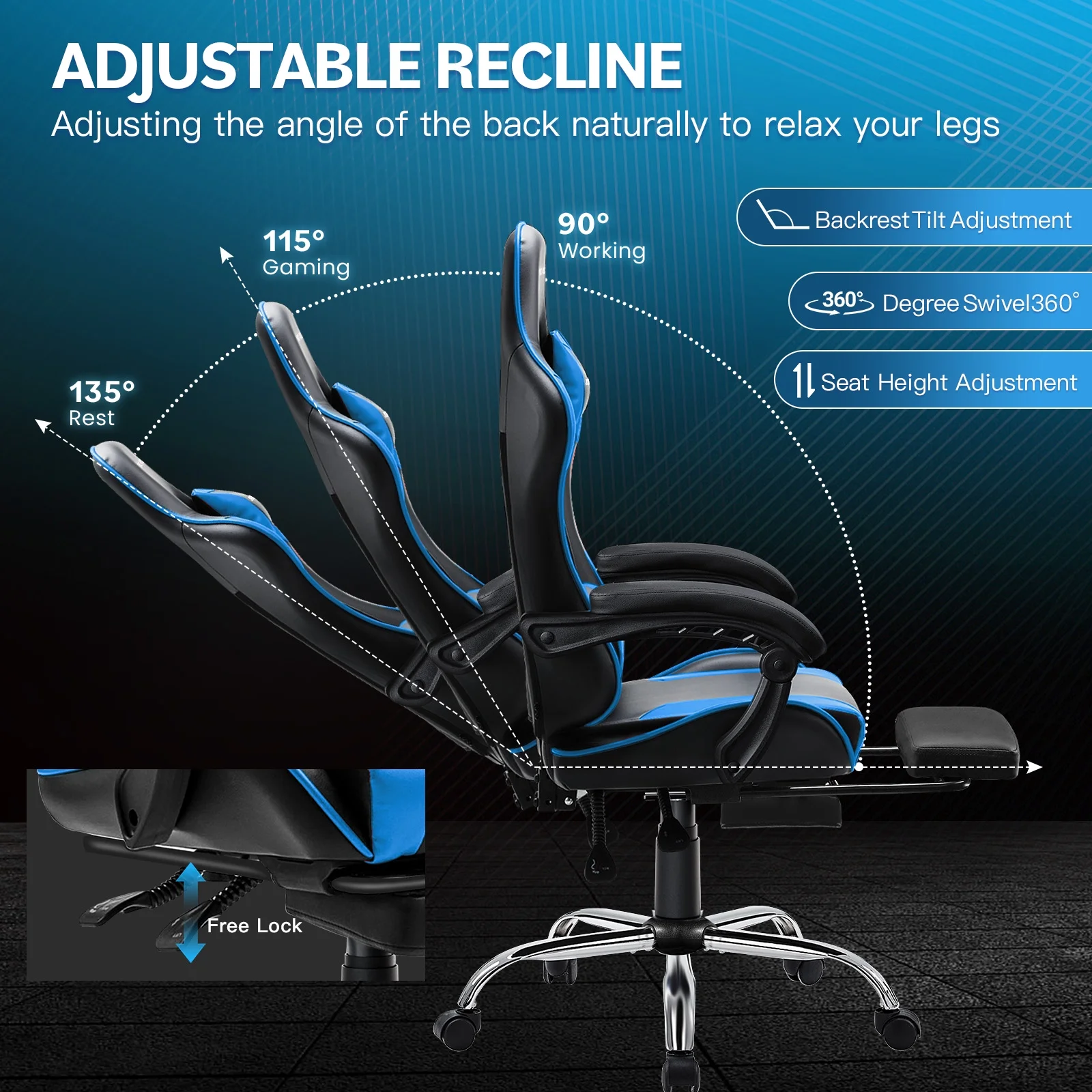 - ��Spacious and Luxurious Gaming Chair��- Designed especially for those who feel fatigued after prolonged sitting, this spacious gaming chair comes with a footrest. Just pull out the footrest, rest your feet, play some music, and instantly indulge in a cozy ambiance. Crafted from high-quality PU leather, it's breeze to clean��just give it a wipe with a soft cloth for a revitalized look.