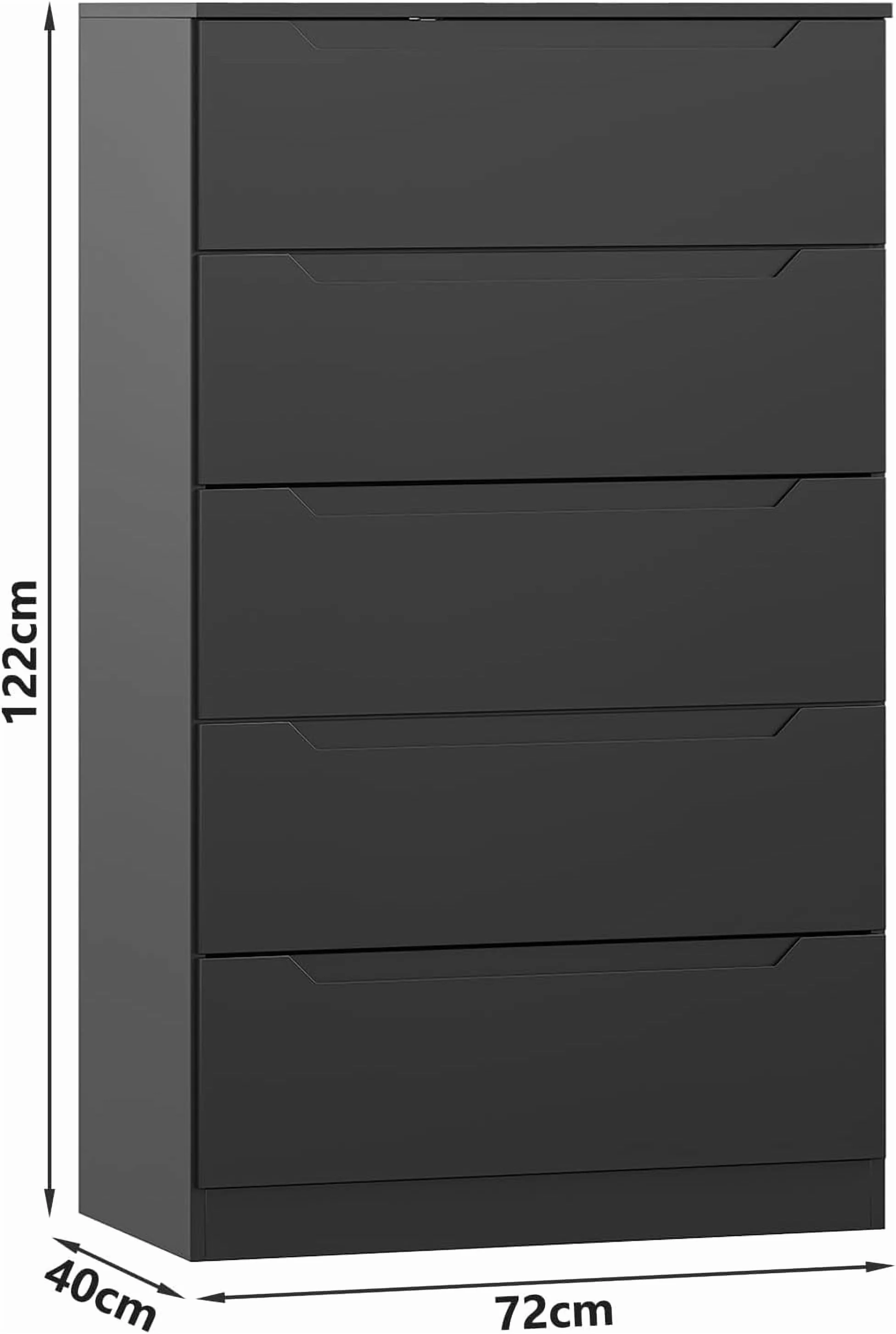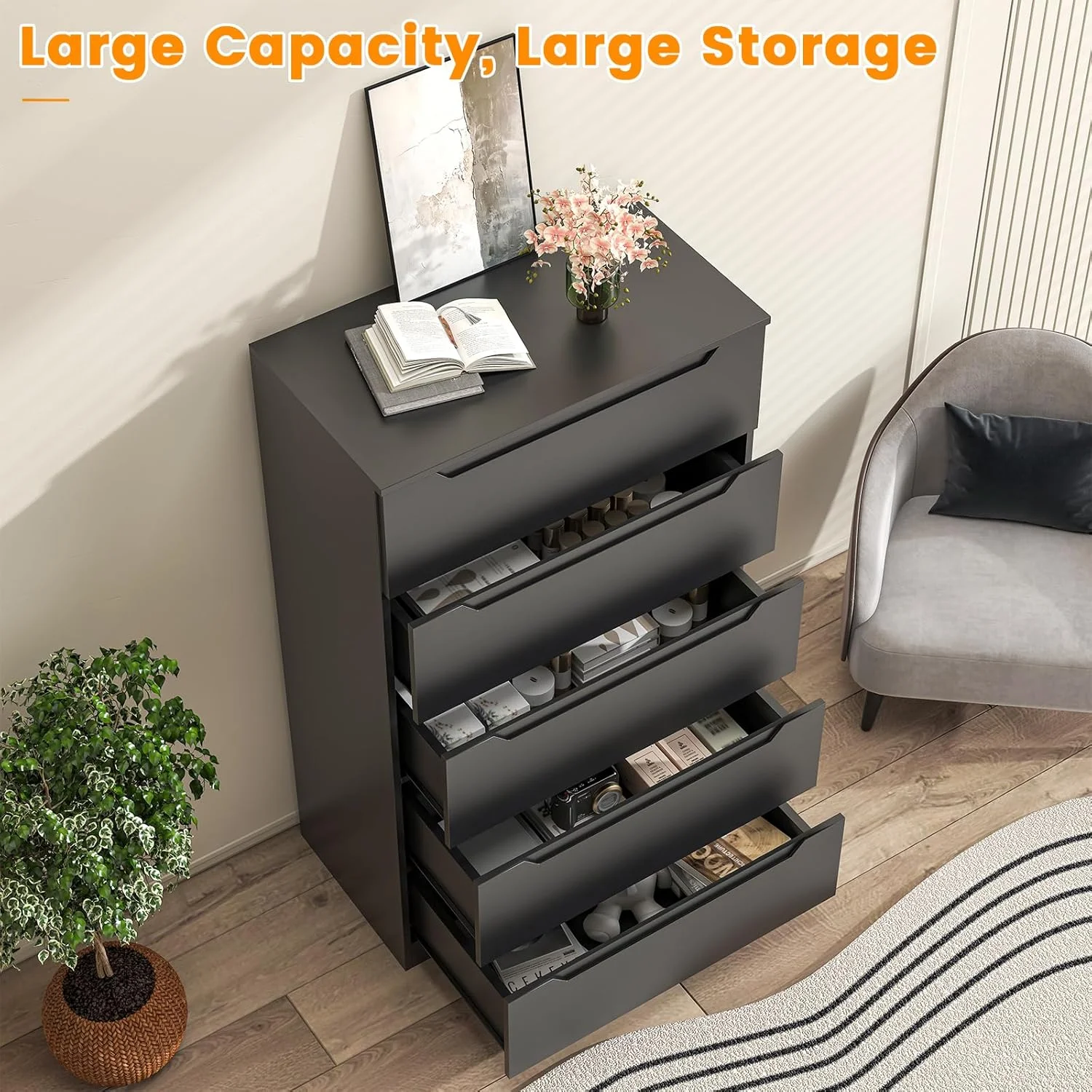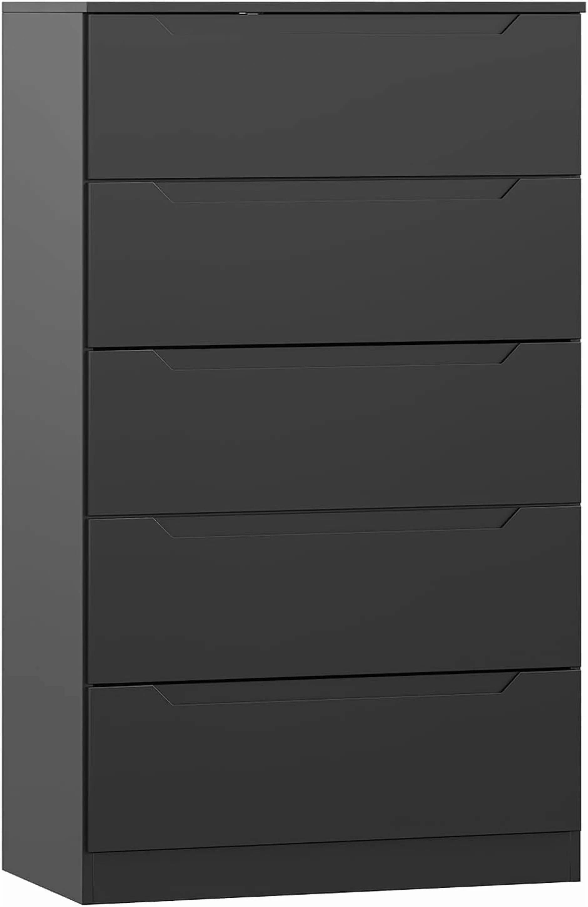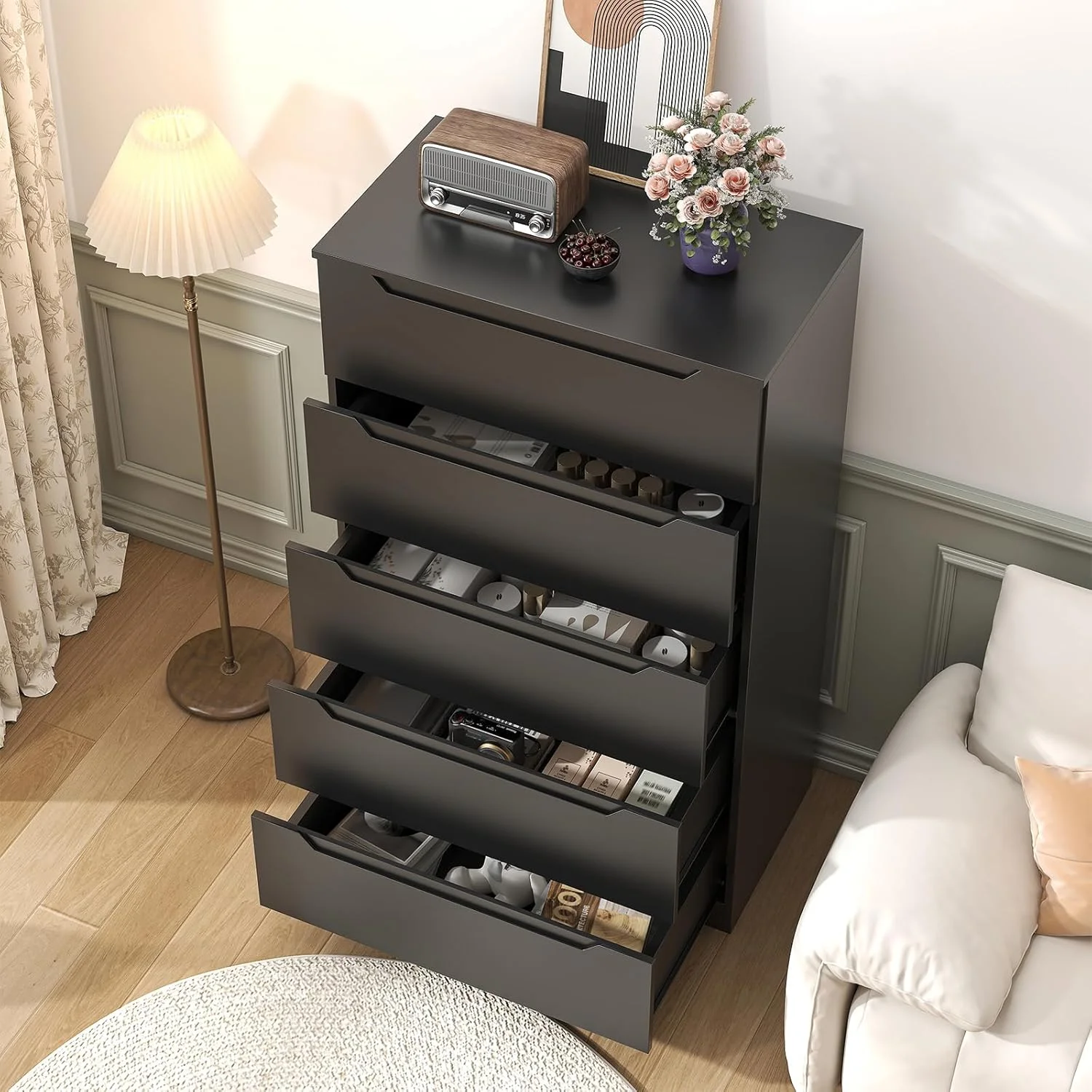 This wooden 5-drawer dresser has clean lines and is made of high-quality MDF with an upgraded base to make it more sturdy and stable. In addition, it ditches the traditional drawers with handles to incorporate the minimalist trendy style into your bedroom and living room!Winkalon chest of 5 drawers has spacious drawers that provide plenty of space for storing and categorizing your daily necessities, and the grooved design of the drawers with smooth guides makes it easier for you to pull it open and close it.