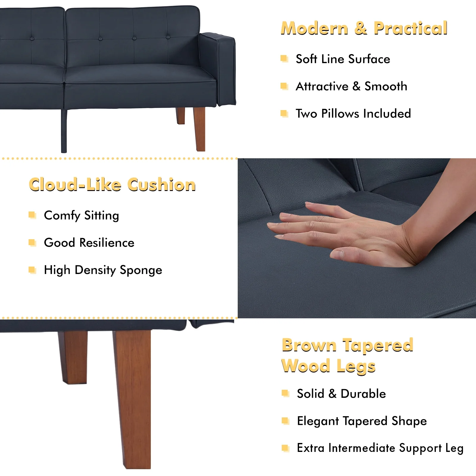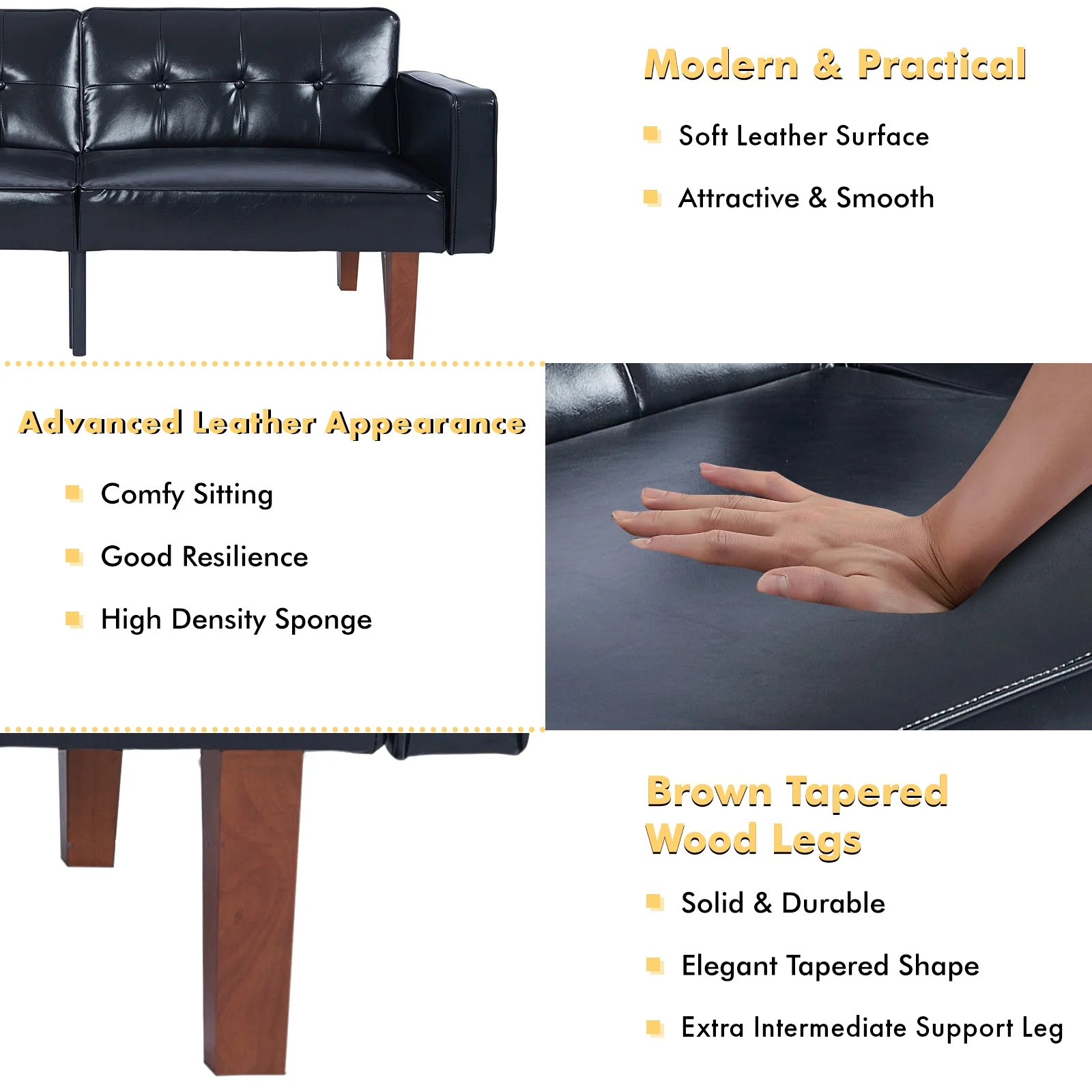 - ��Stability Comfortable��This convertible futon sofa bed is crafted with tufted faux leather and 6 chrome metal legs with a protective cover, to ensure long-lasting usage, which can provide you with maximum comfort and support.
