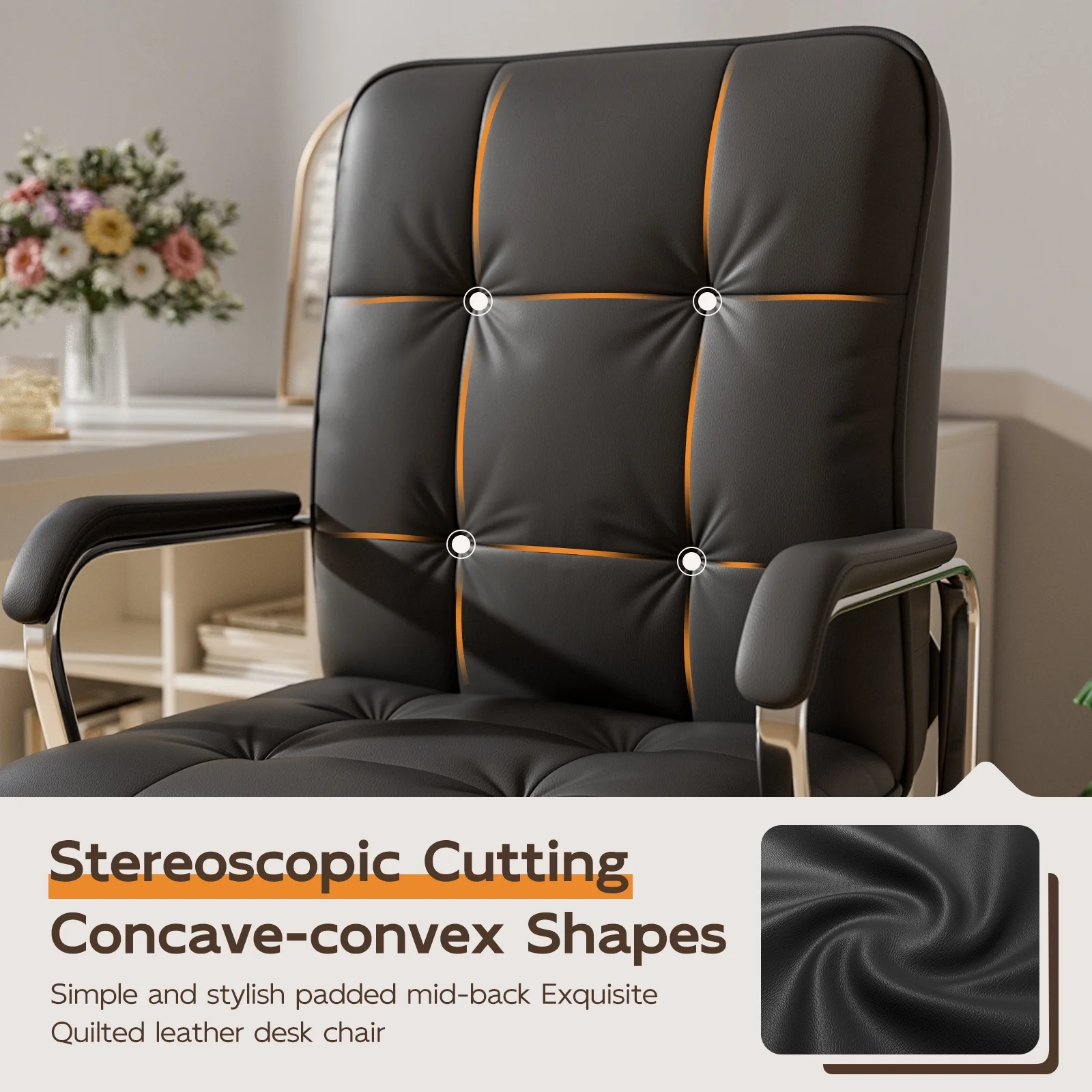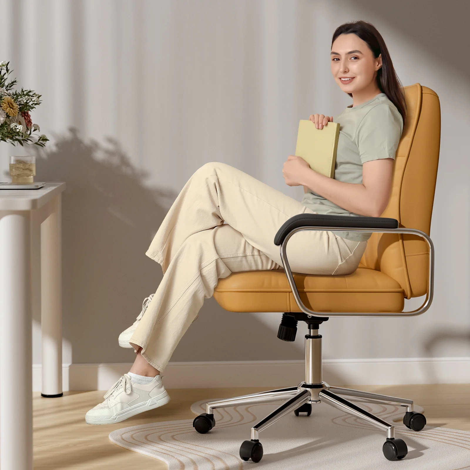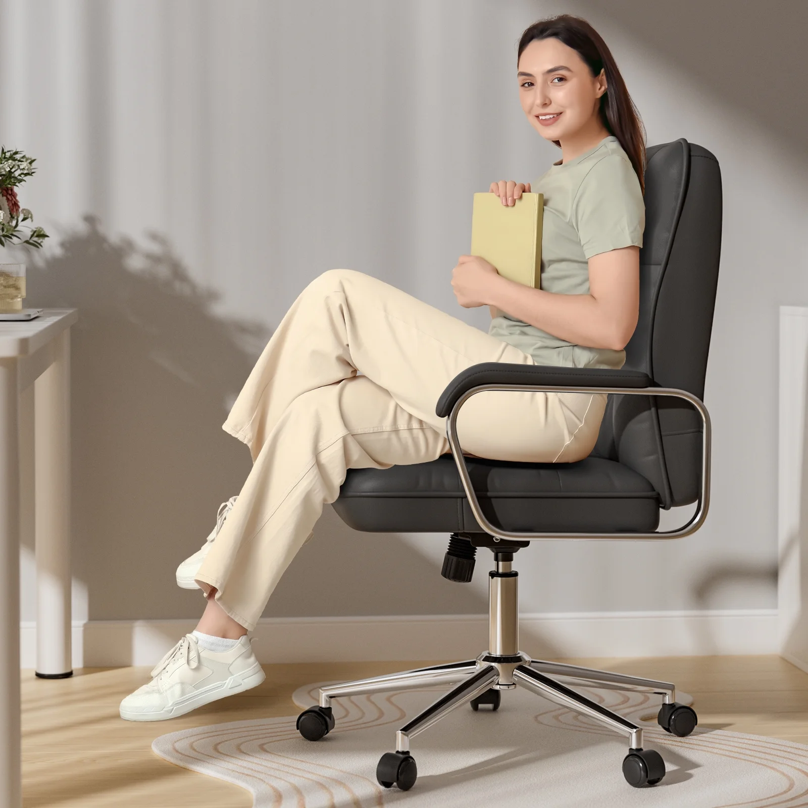 - ??Mid Back Support: Designed to promote proper posture, this leather white office chair offers excellent support for the lower and mid-back, helping reduce fatigue during long hours of sitting.