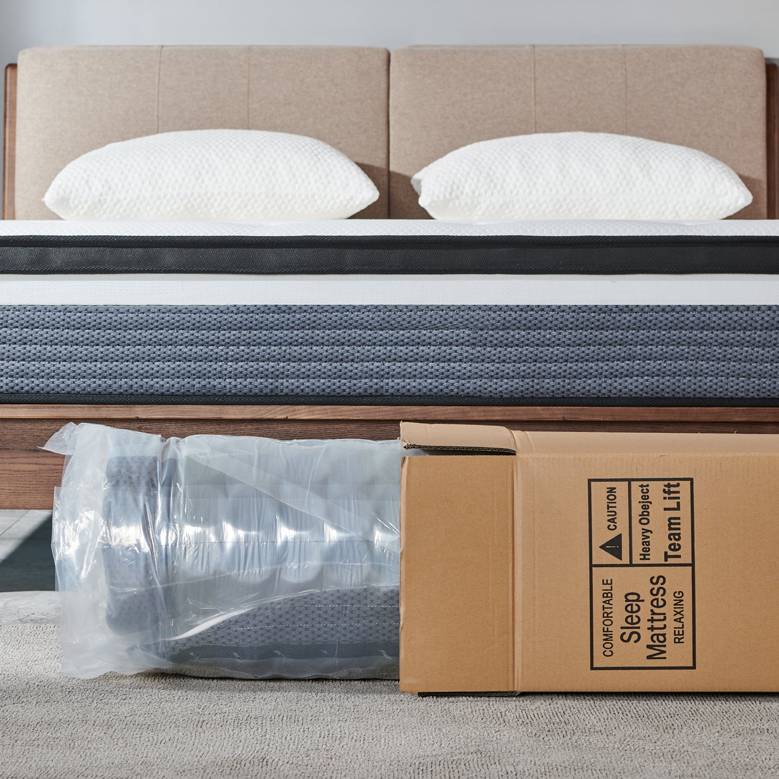 - Easy Setup: Professionally machine-compressed and boxed, our hybrid mattress is easy to handle and ship directly to your bedroom. Open the vacuum-sealed bag and allow 48-72 hours for the mattress to fully expand (initial expansion may happen quickly; please keep a safe distance).